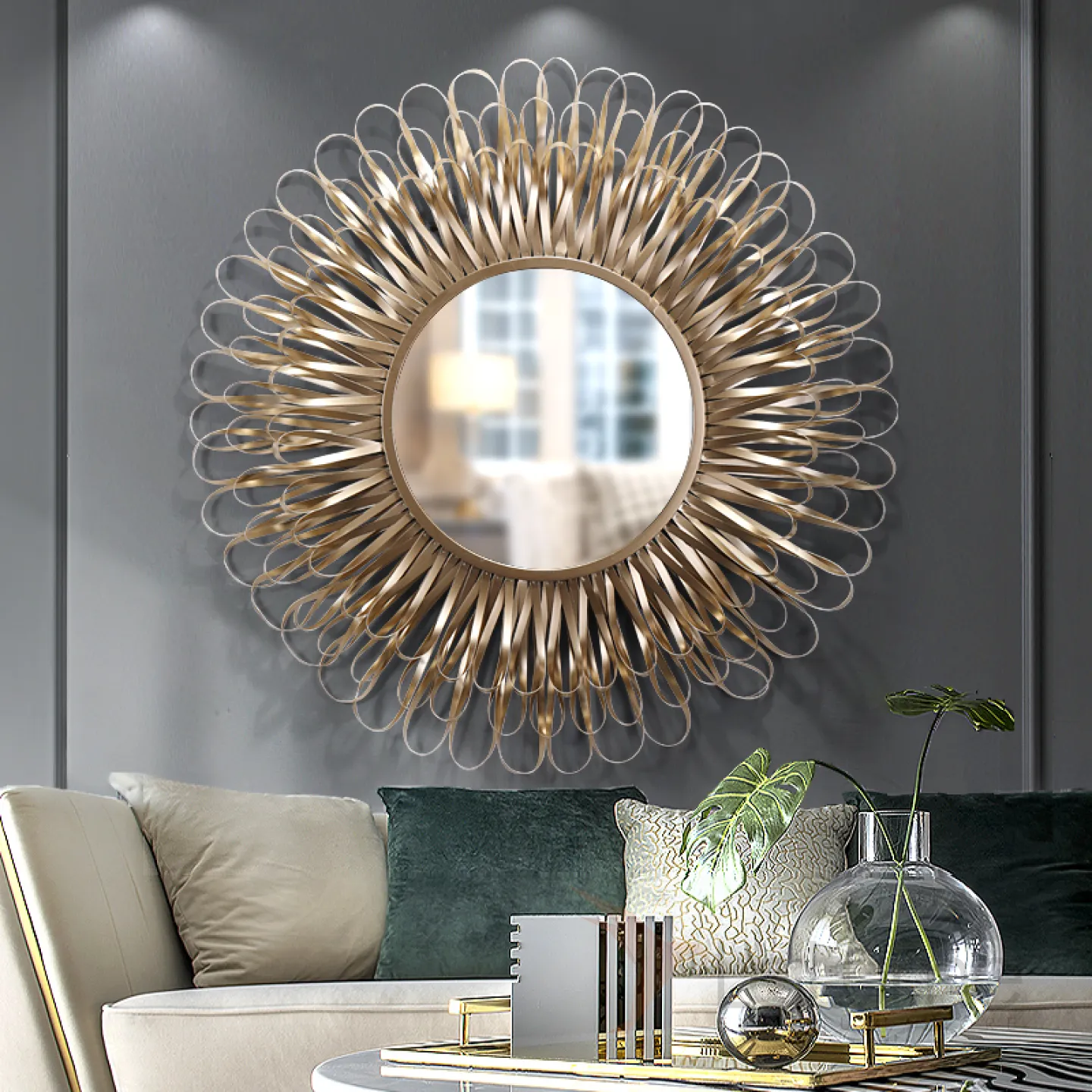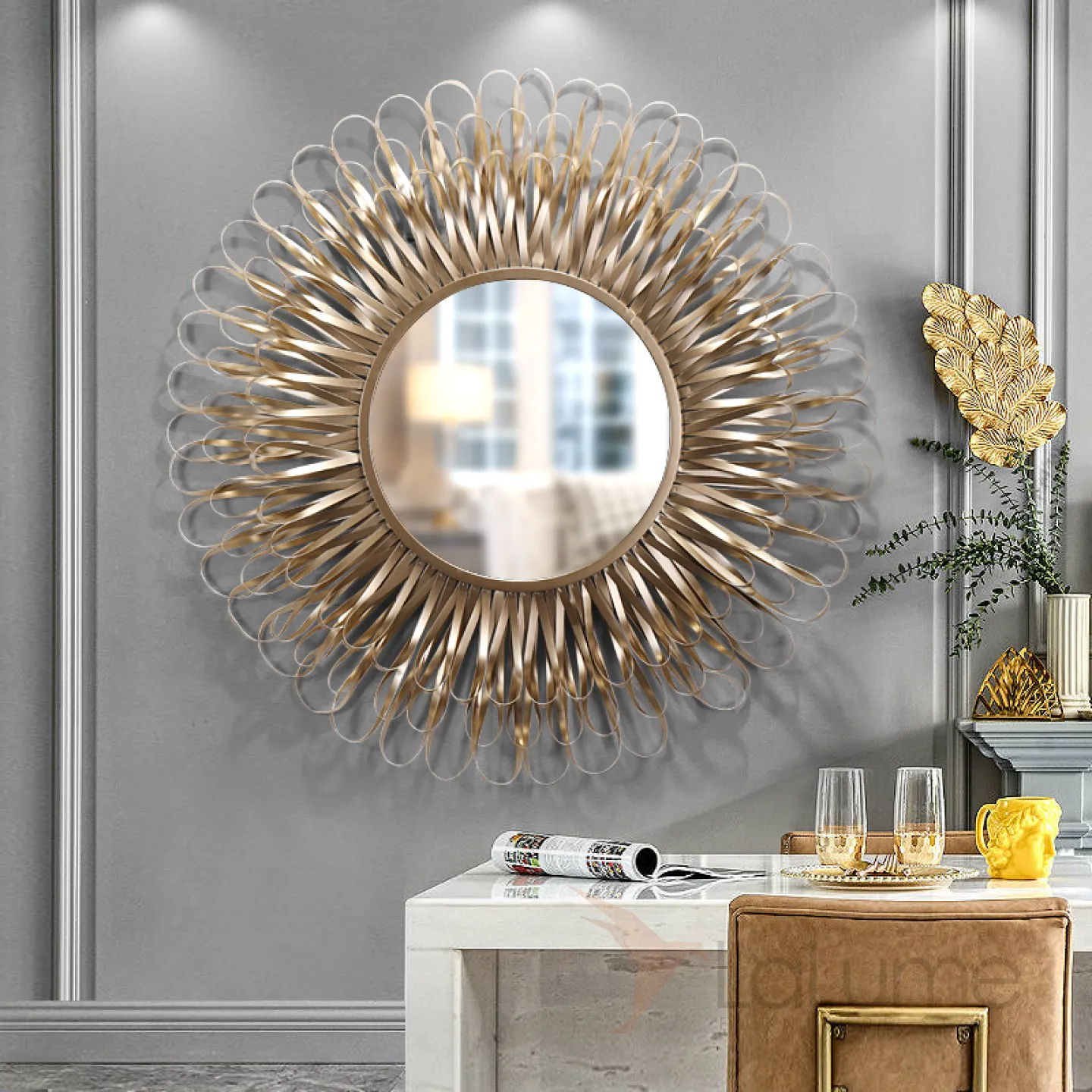Современное настенное круглое зеркало для гостиной LaLume DK20344-27