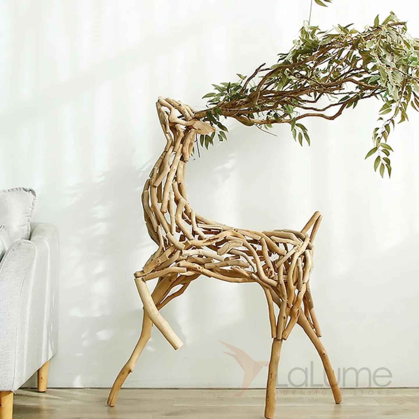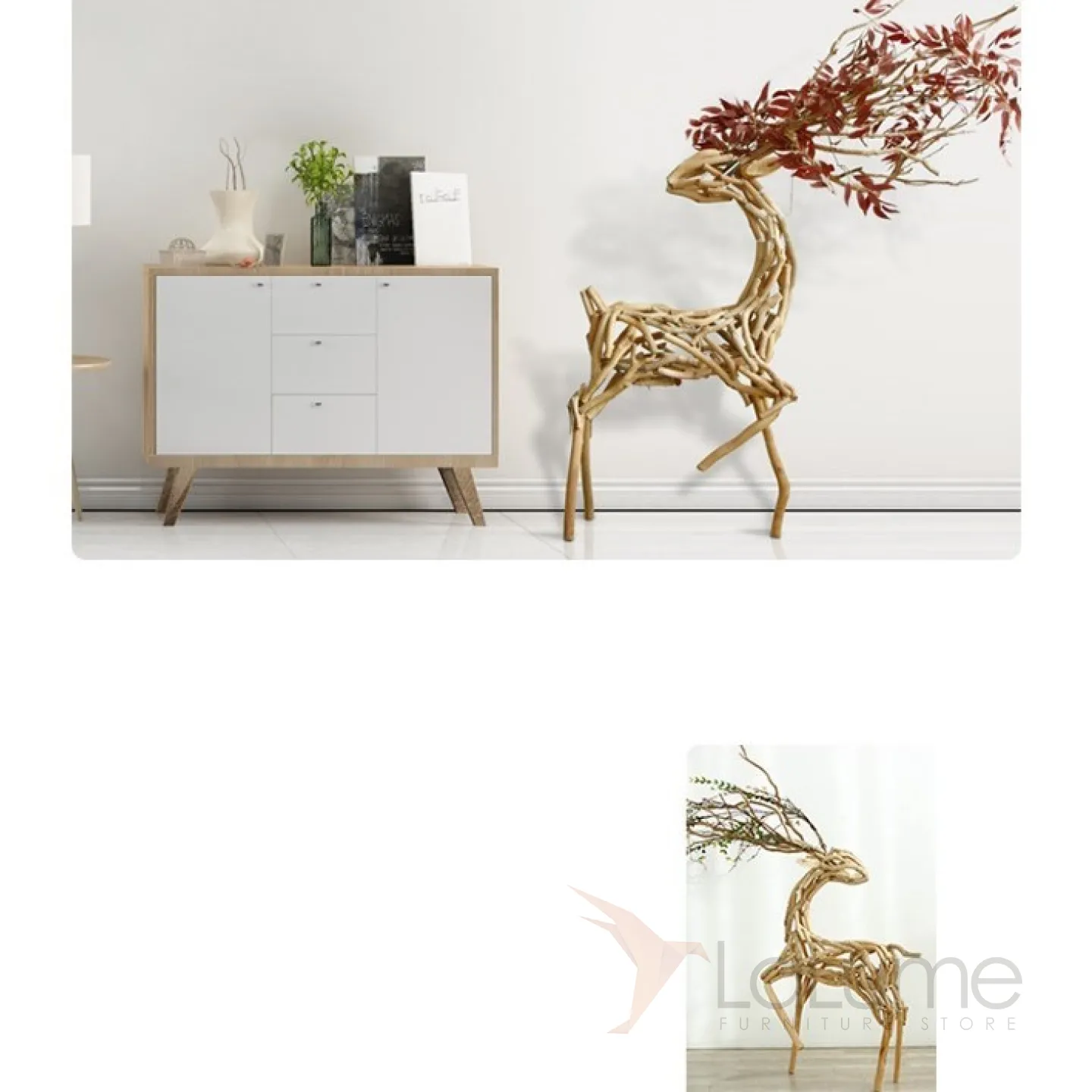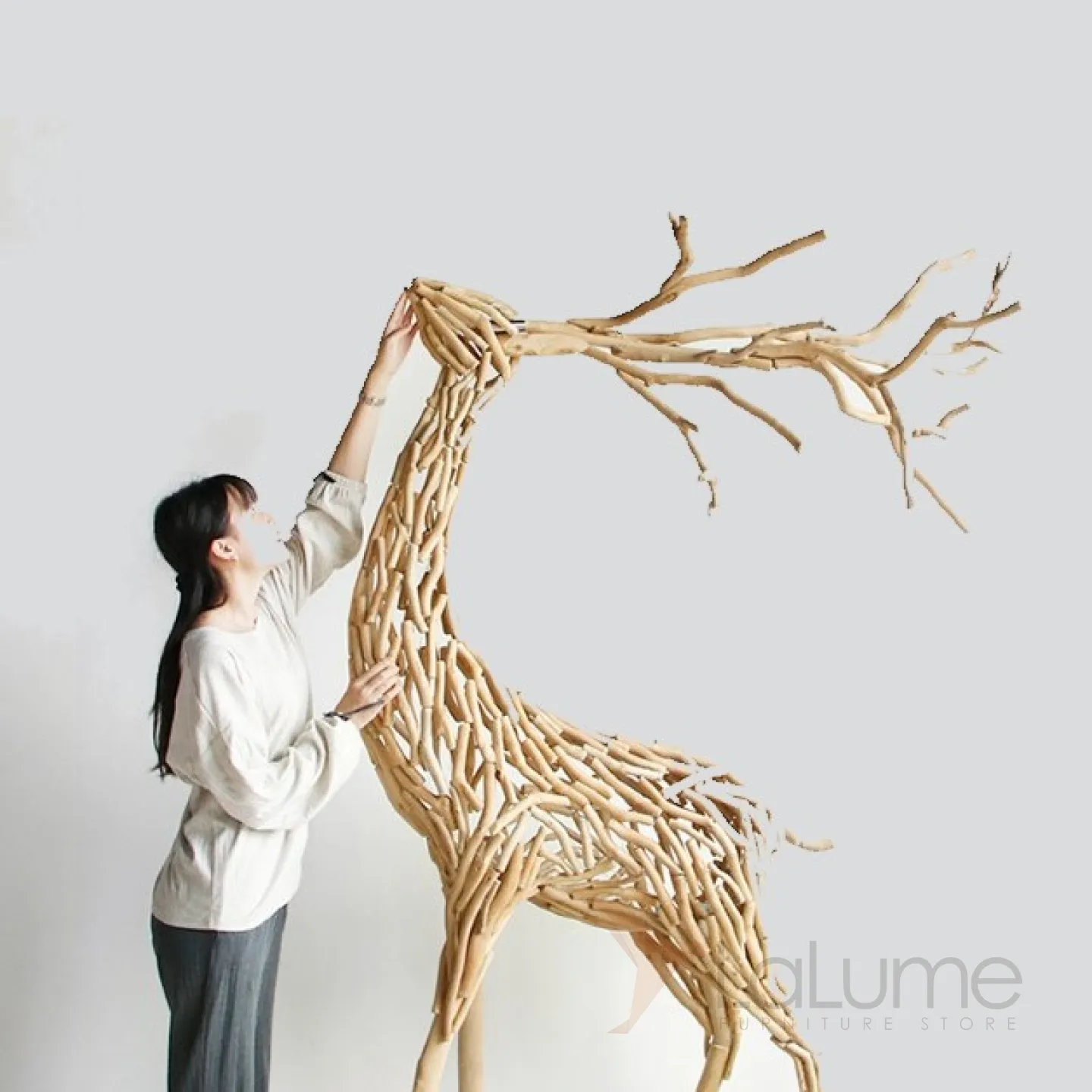 Дизайнерская скульптура деревянного оленя DK20429-23 ручной работы в скандинавском стиле