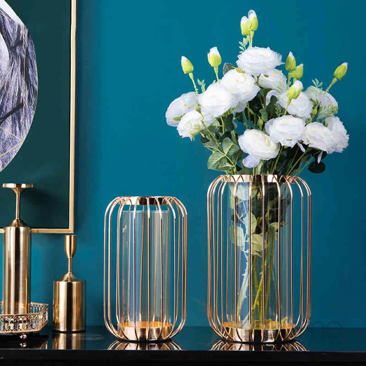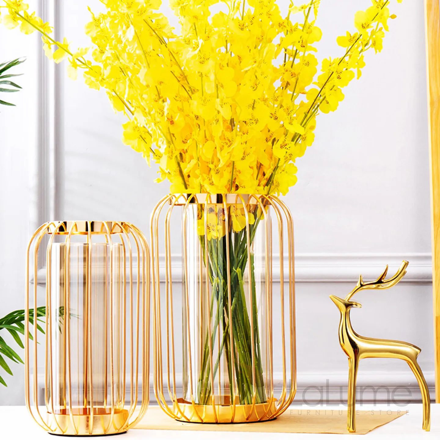 Роскошная стеклянная ваза с металлическим каркасом для гостиной в Американском стиле LaLume DK20675-23