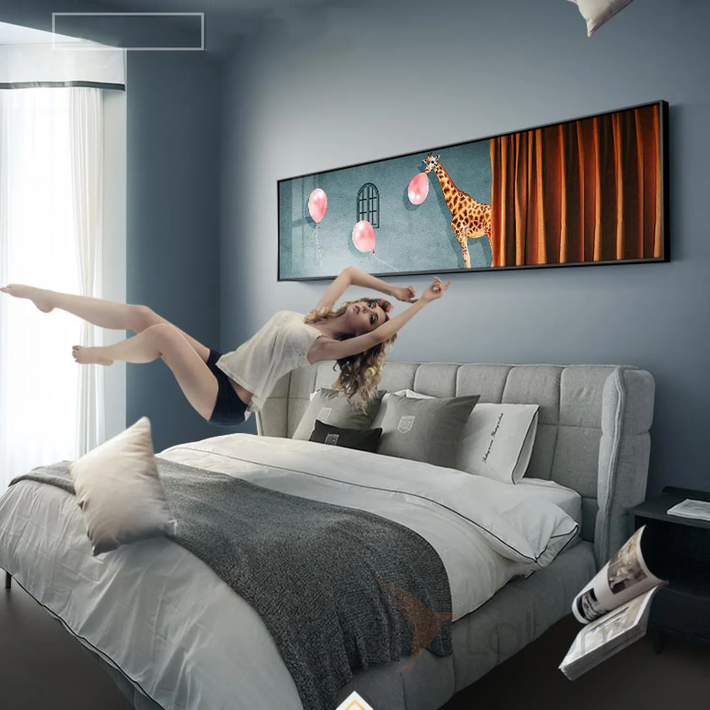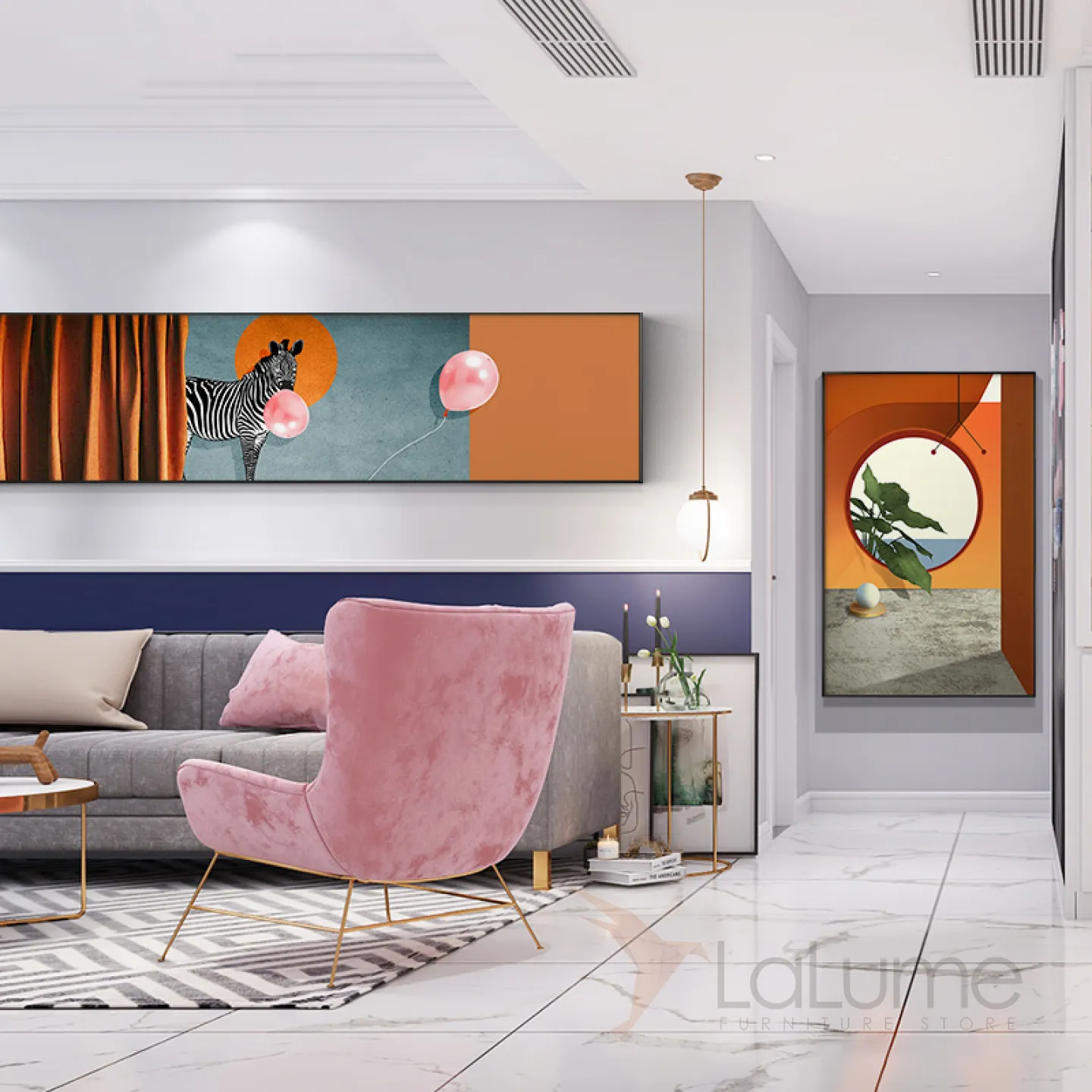 Современная настенная картина с животными в металлической раме для гостиной LaLume DK20683-23