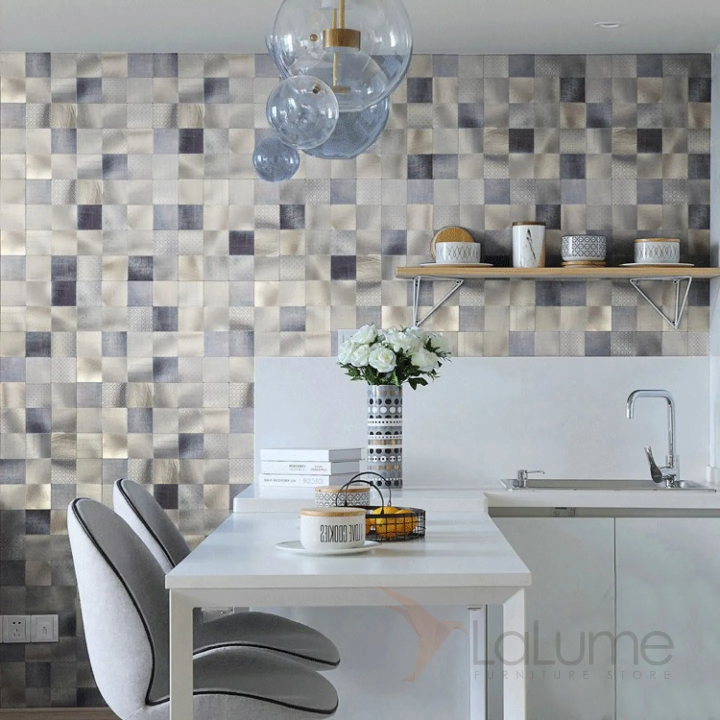 Металлическая 3д плитка на самоклеящаяся основе с узорами LaLume MB20805-23