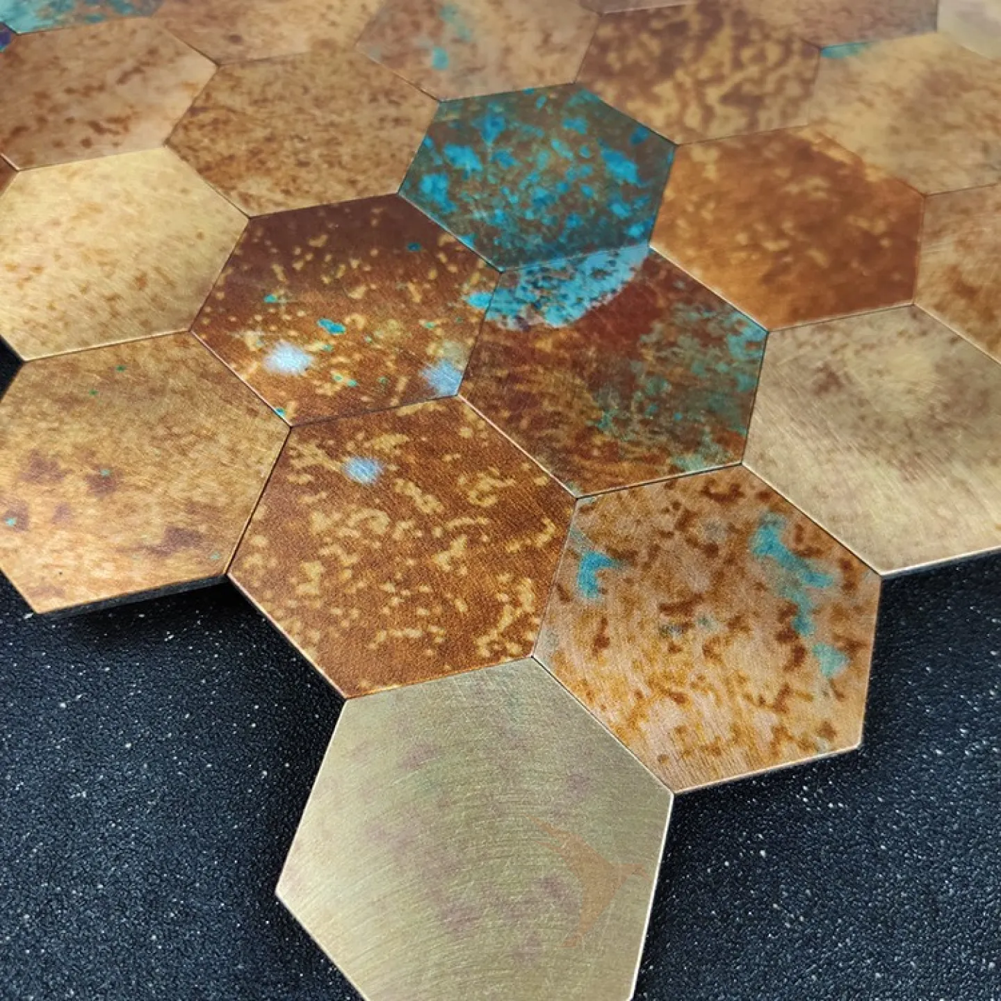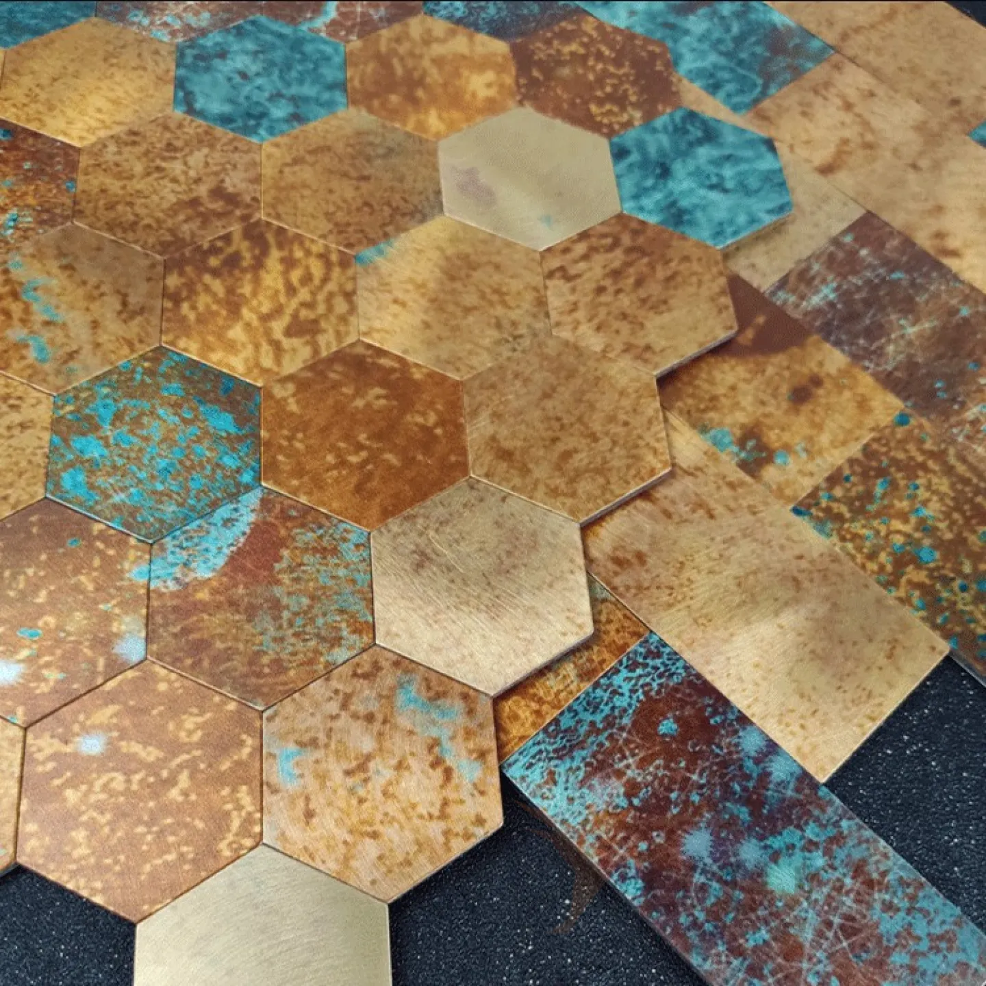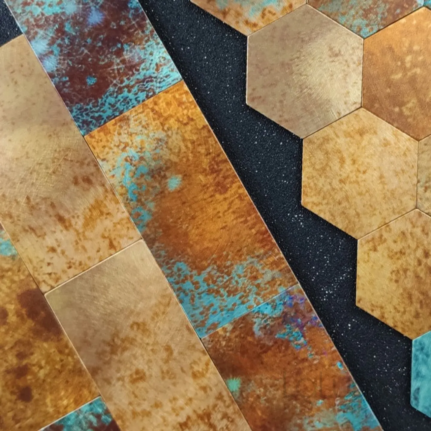 Яркая металлическая 3д плитка на самоклеящаяся основе с имитацией ржавчины LaLume MB20820-23