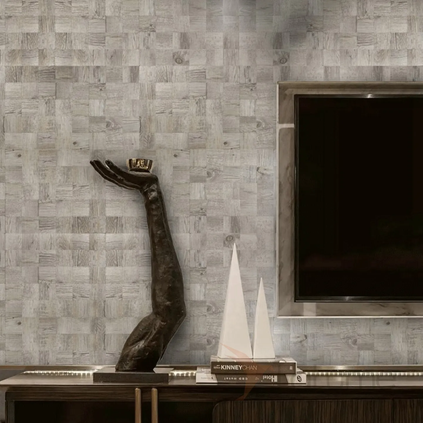 Современная металлическая 3д плитка на самоклеящаяся основе с имитацией древесины LaLume MB20822-23