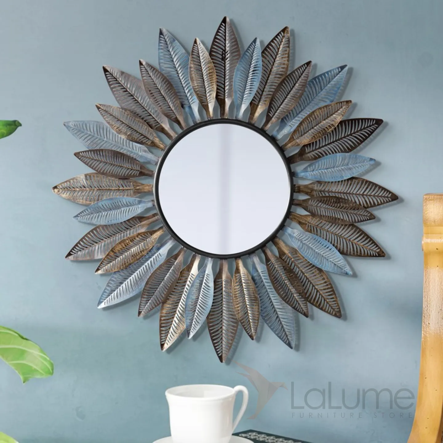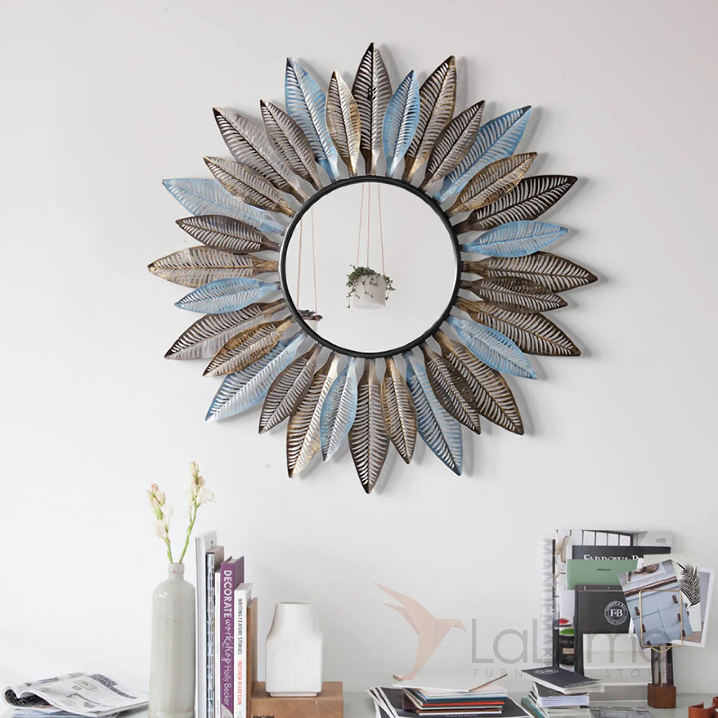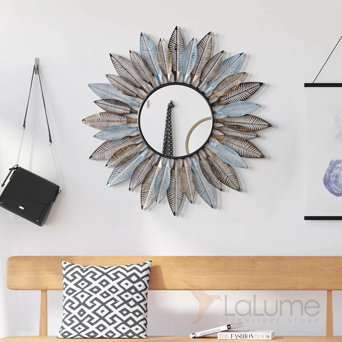 Креативное зеркало с перьями для гостиной LaLume DK20922-23