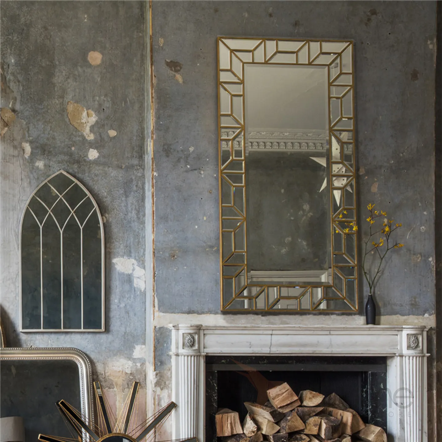 Роскошное напольное зеркало для гостиной в Ретро стиле LaLume DK21209-23