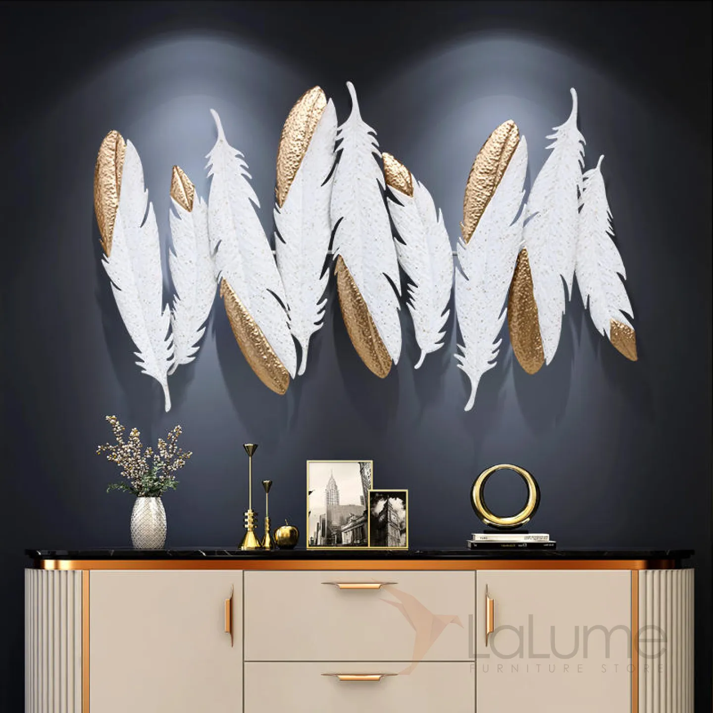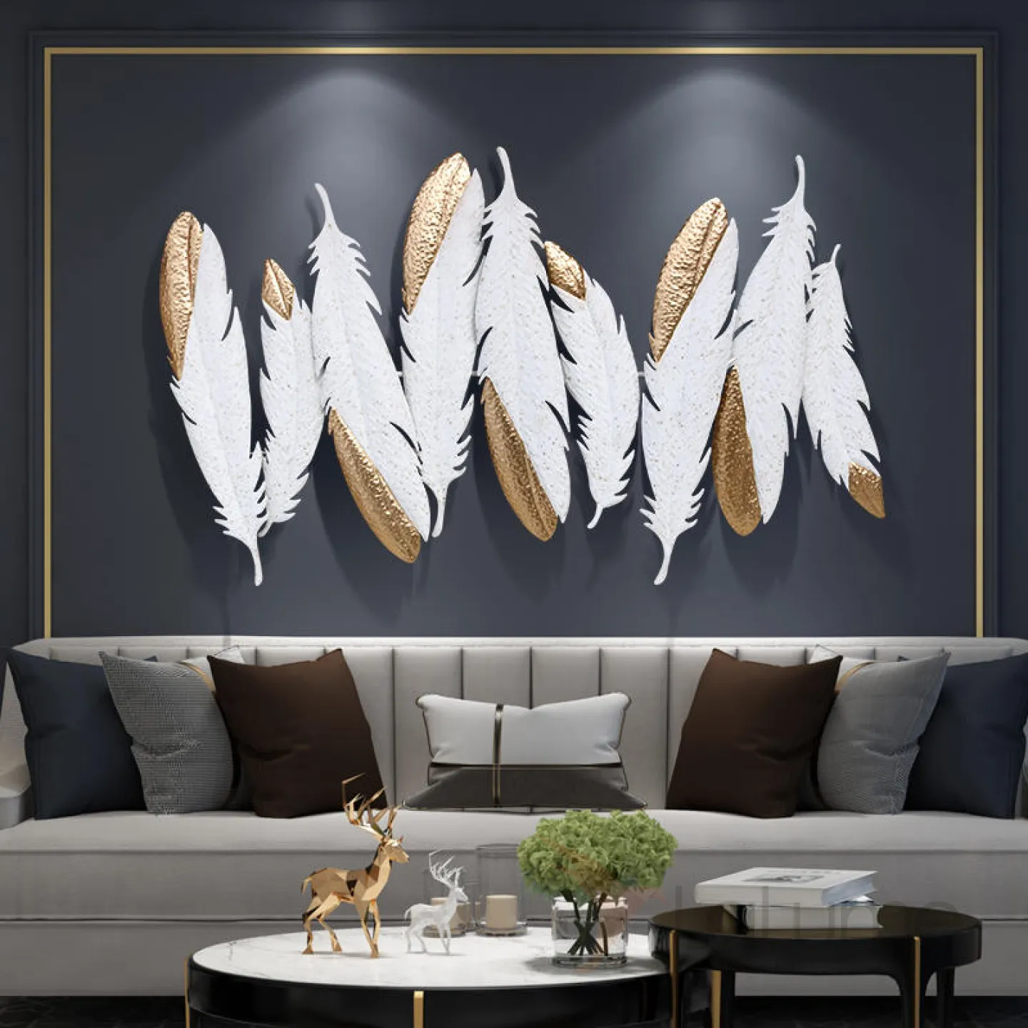 Дизайнерский настенный декор перья LaLume-KKK00358