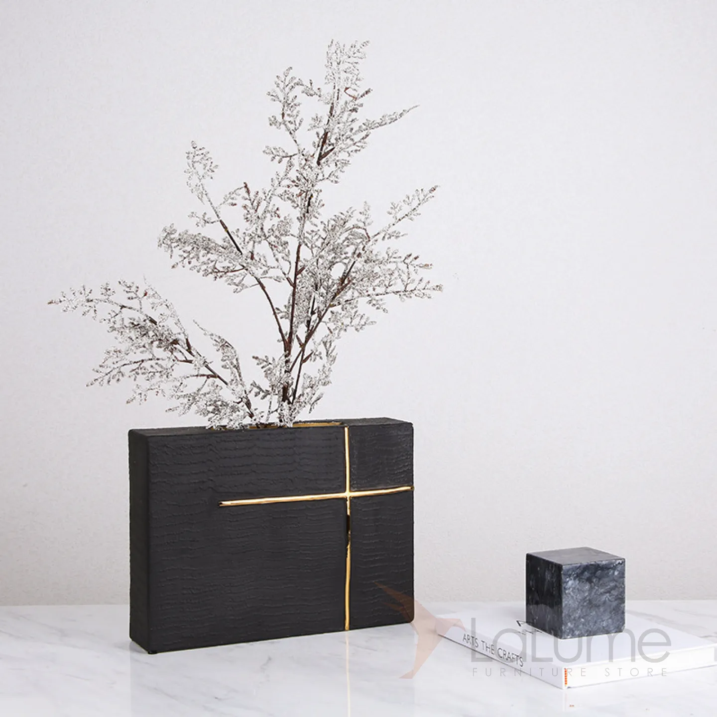 Чёрная ваза в форме креста LaLume DK_FA-D2111B H23.5