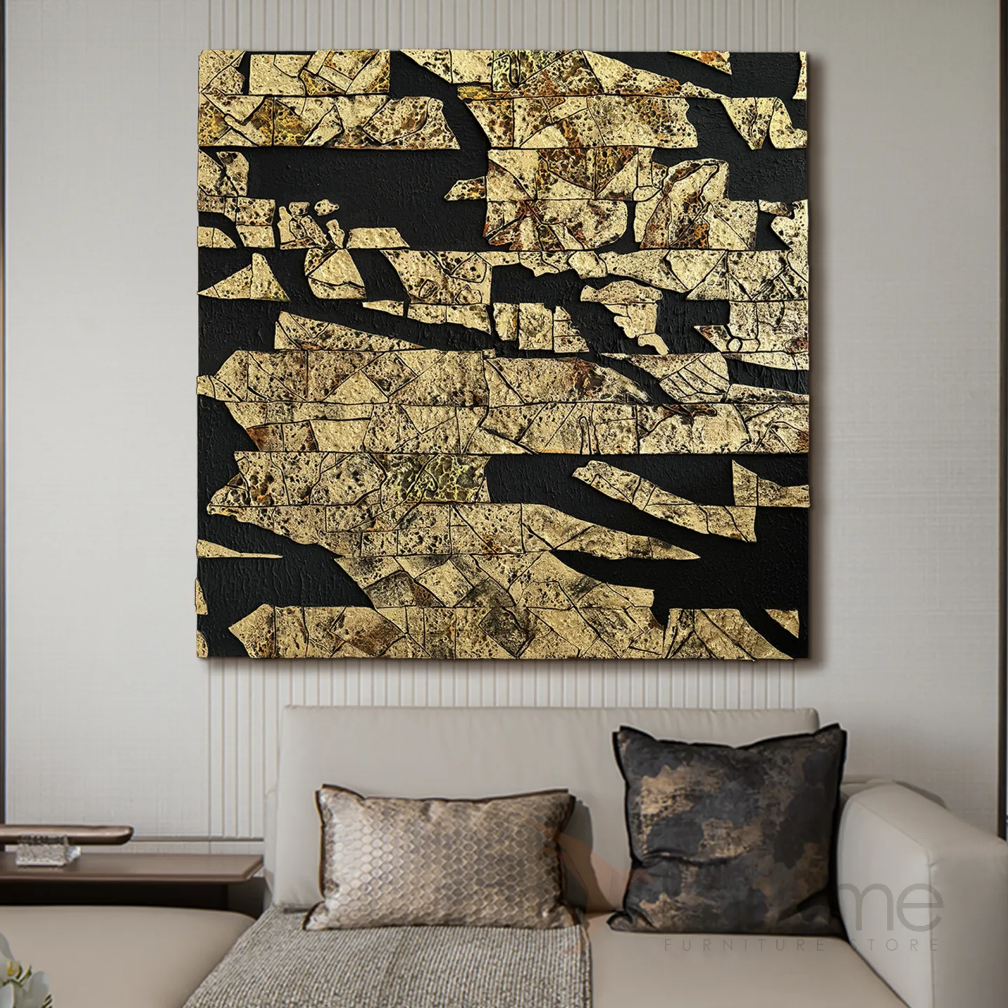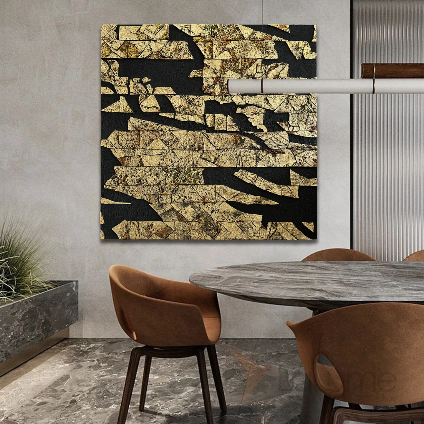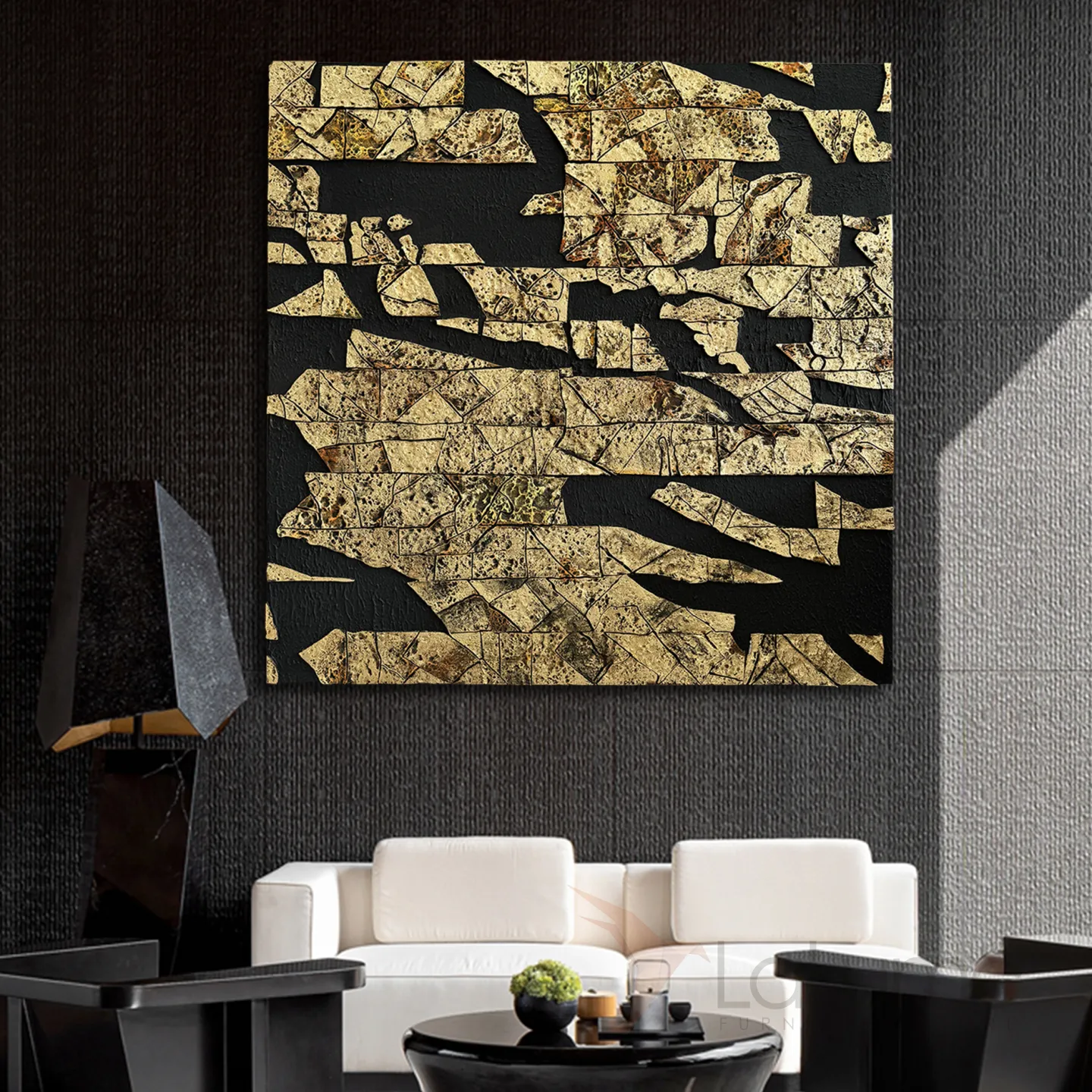 Это изысканное произведение абстрактного искусства, выполненное в золотисто-чёрной гамме, станет выразительным акцентом в любом интерьере вашего офиса или дома. Вы можете выбрать необходимый размер, в зависимости от нюансов интерьера.