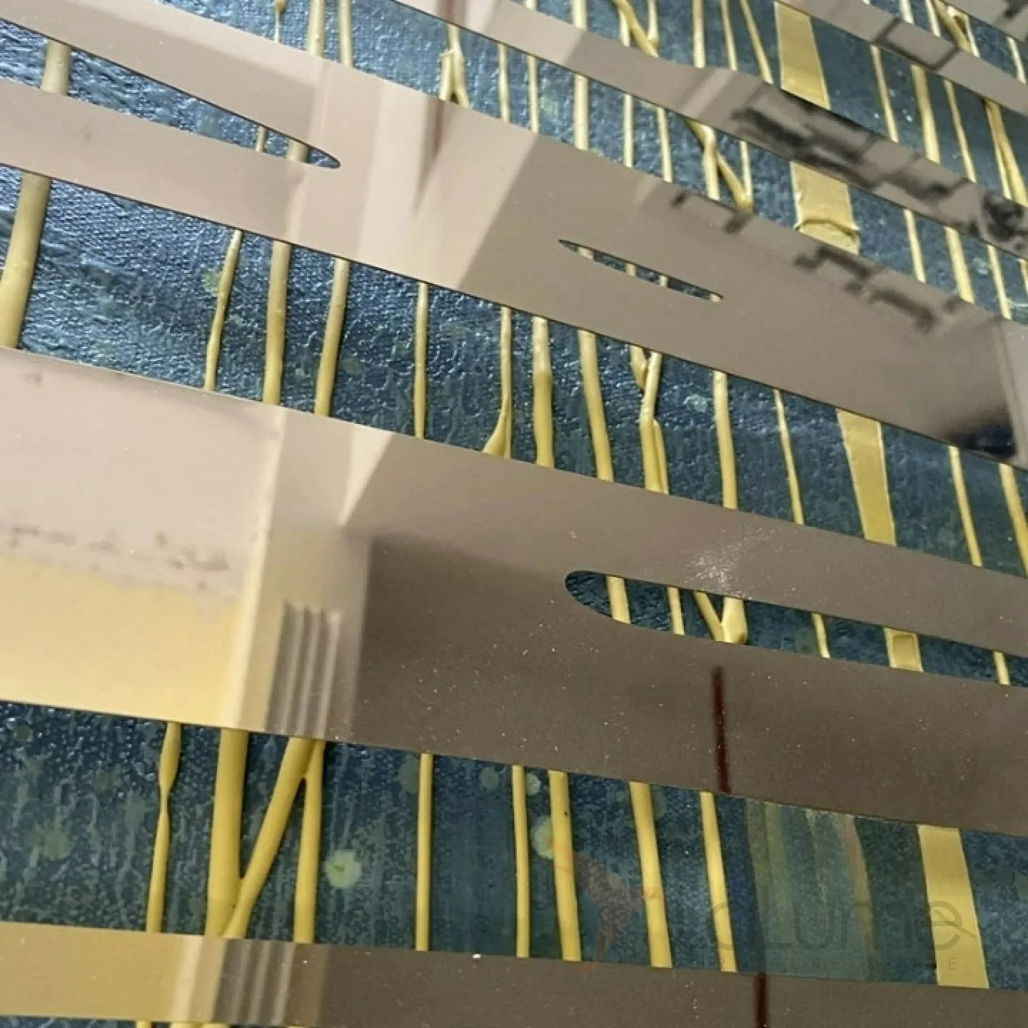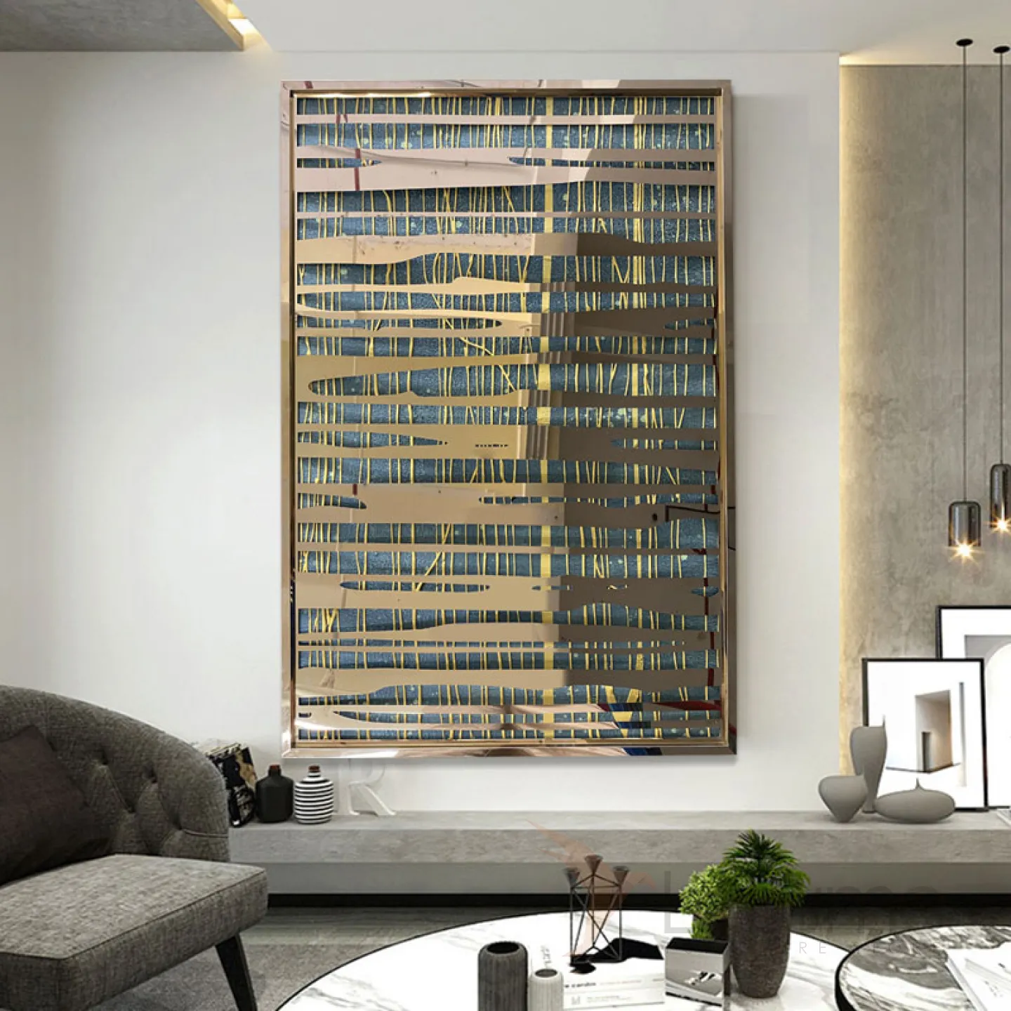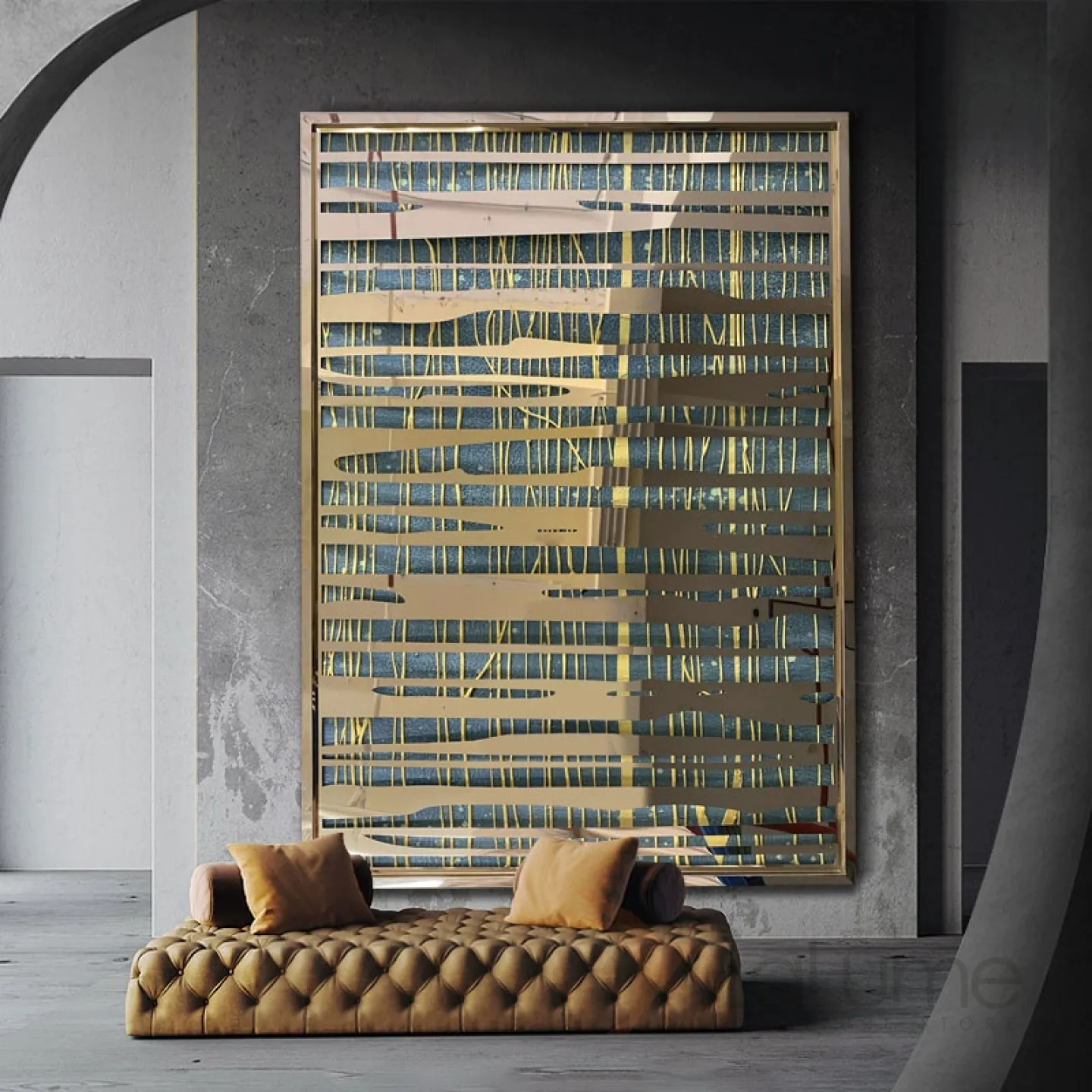 Абстрактная картина с ручной росписью и декоративными элементами из золотистого металла создаёт удивительные образы в любом интерьере. Её эффектность зависит от освещения и может меняться в зависимости от расположения источников света. Алюминиевая рама не только облегчает конструкцию, но и придаёт картине особый шарм и гармонию. Это произведение станет настоящим украшением любого дома.