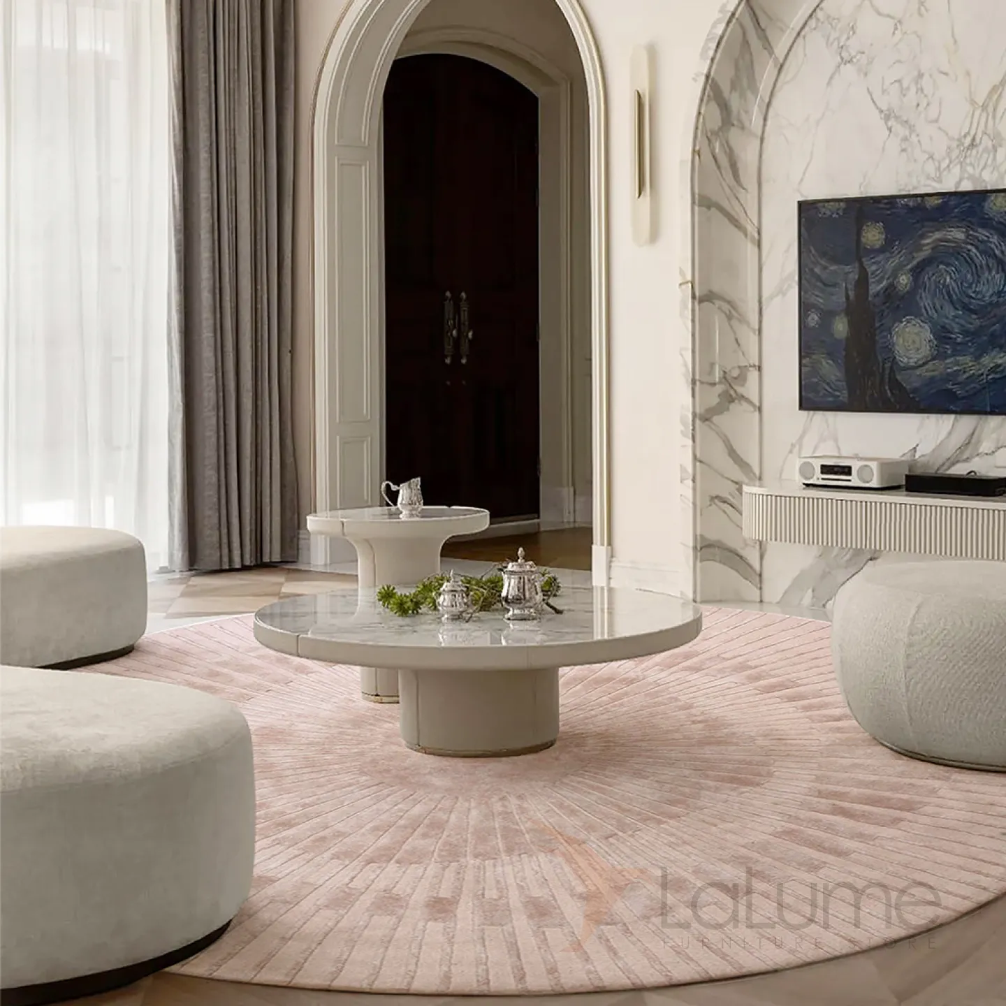 Элегантный круглый ковёр из новозеландской шерсти с шёлком. Доступны разные диаметры и цветовые решения.