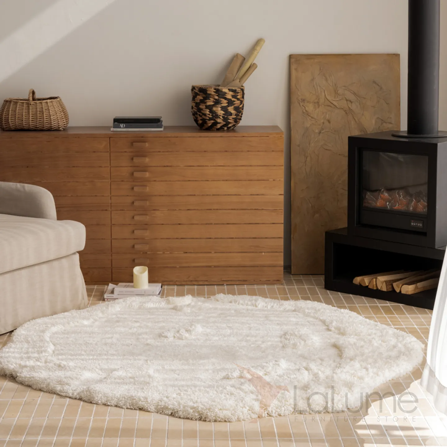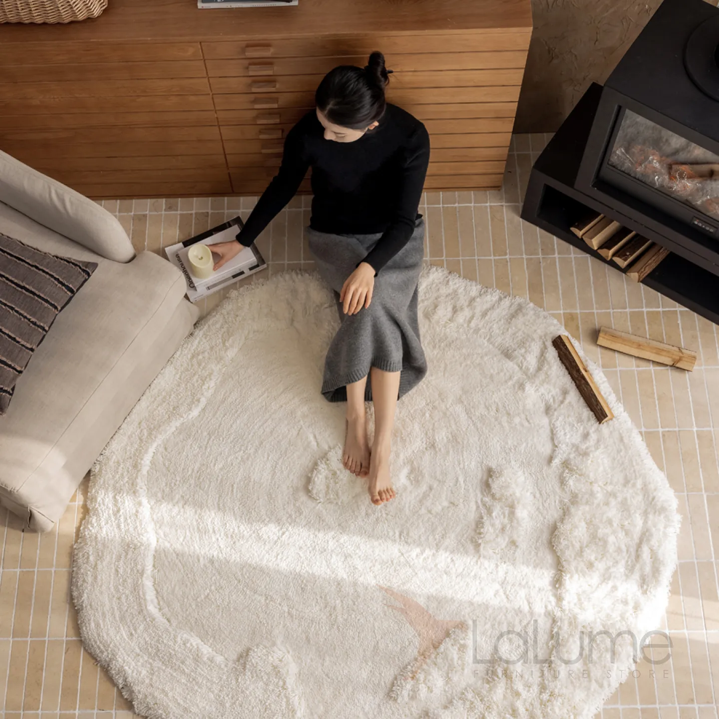 Элегантный круглый ковёр из молочного шёлка с мягкими ворсинками разной фактуры. Толщина ворса 50 мм создаёт ощущение уюта и комфорта.