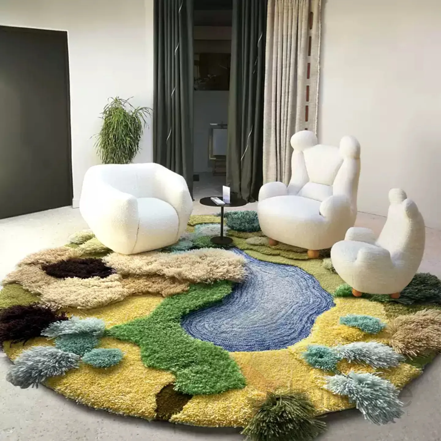 Оригинальный ковёр из молочного шёлка с разной длиной ворса, имитирующего мох. Разные формы и размеры ковра позволят подобрать оптимальный размер.