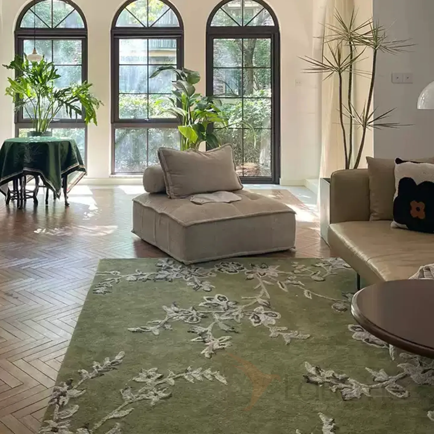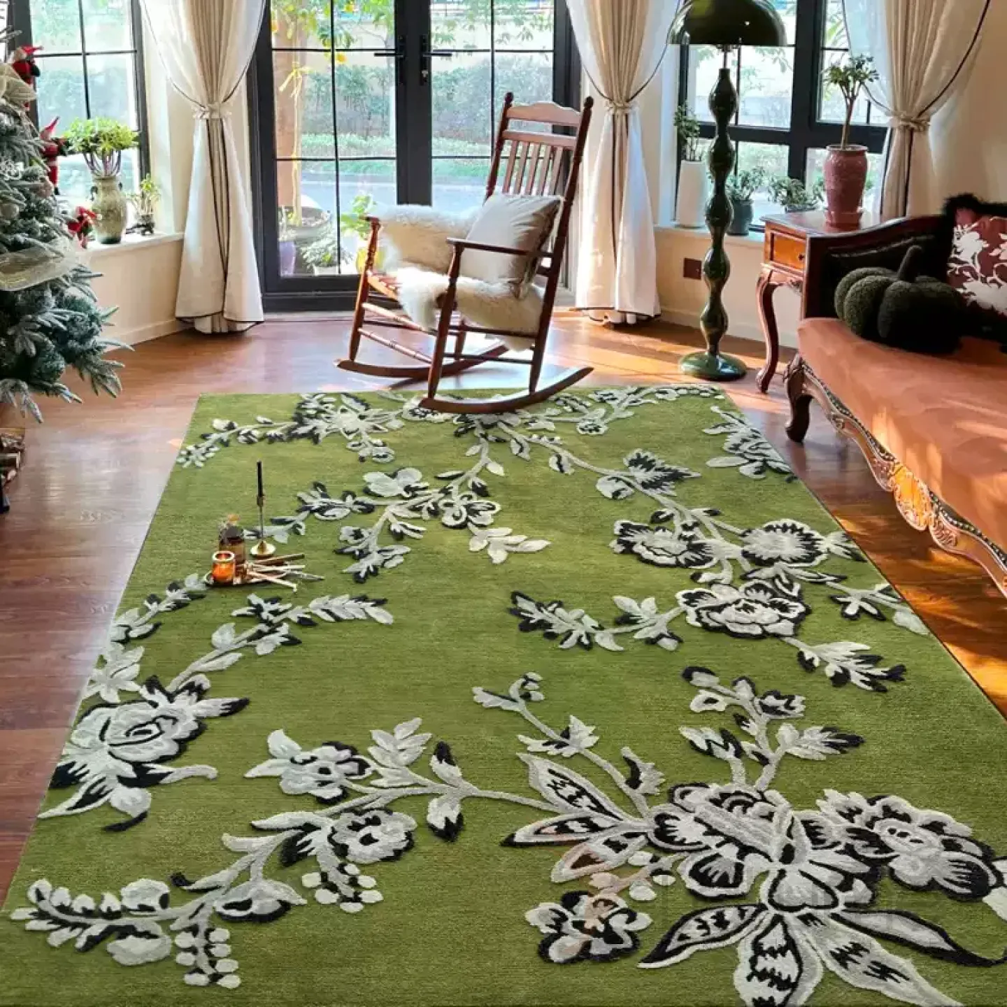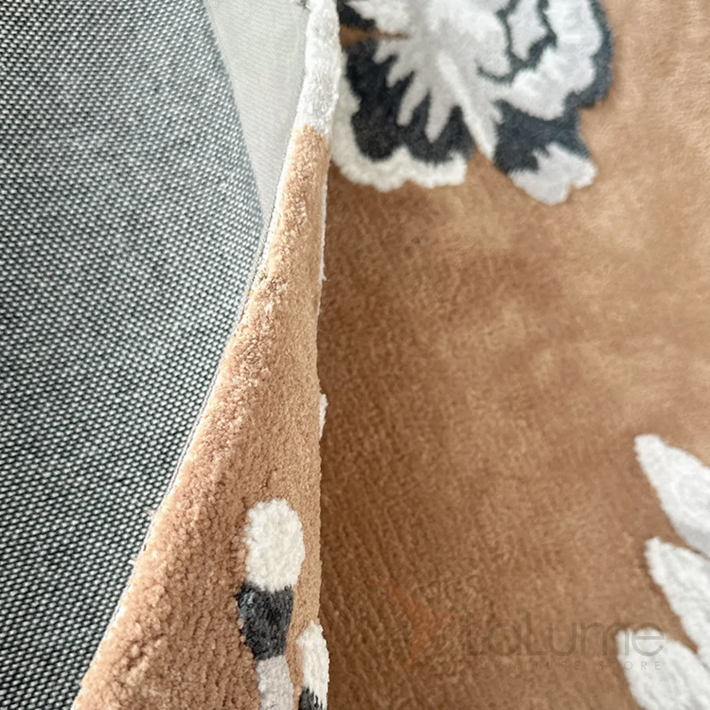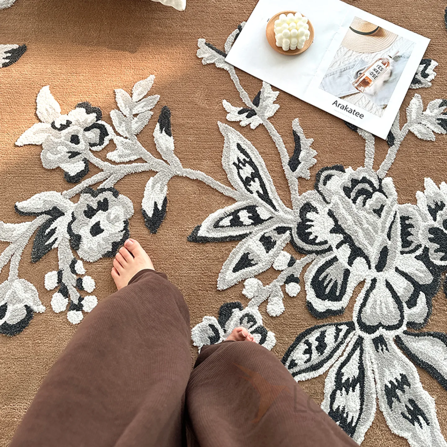 Прямоугольный или круглый ковёр из молочного шёлка с цветочными узорами. Доступны разные размеры и расцветки.
