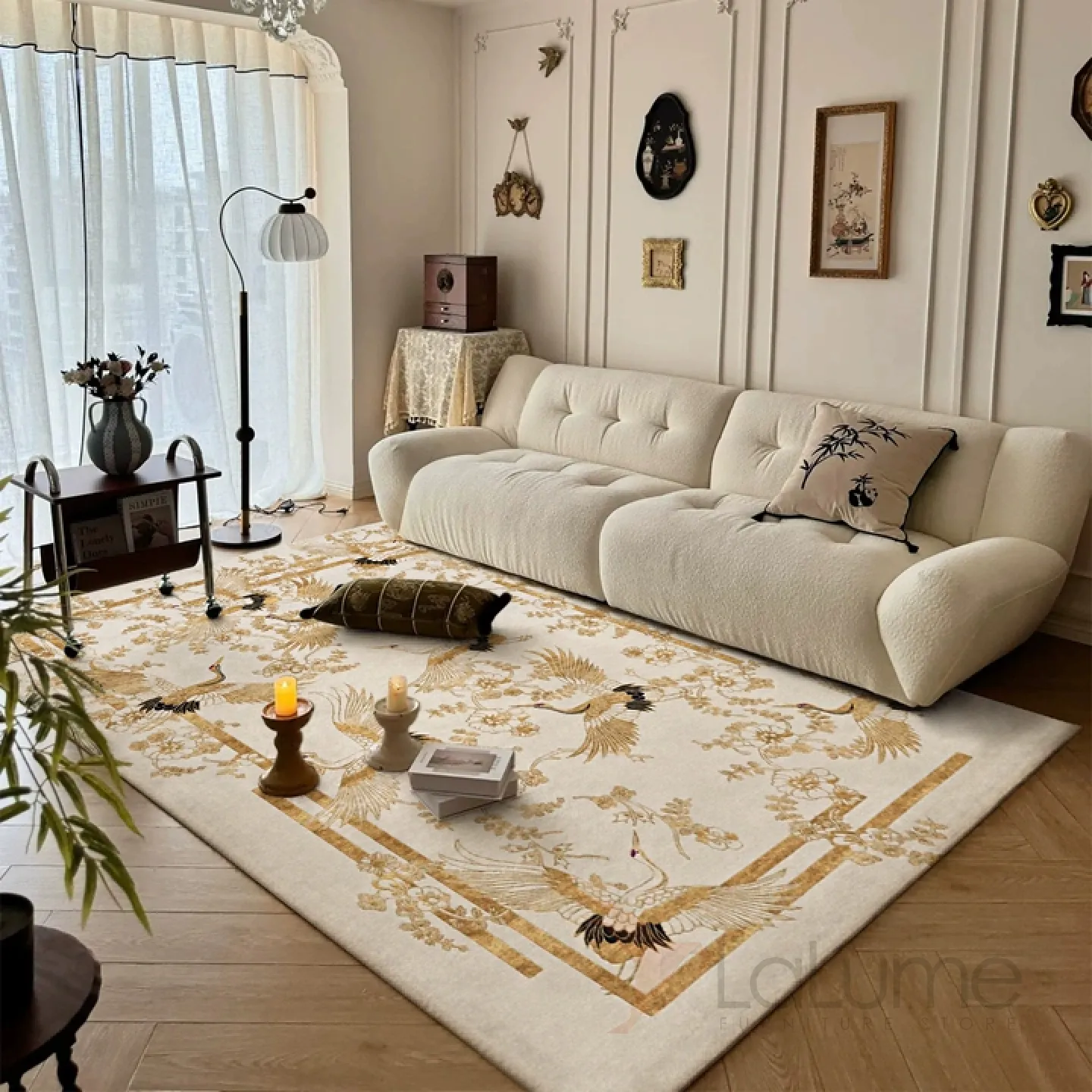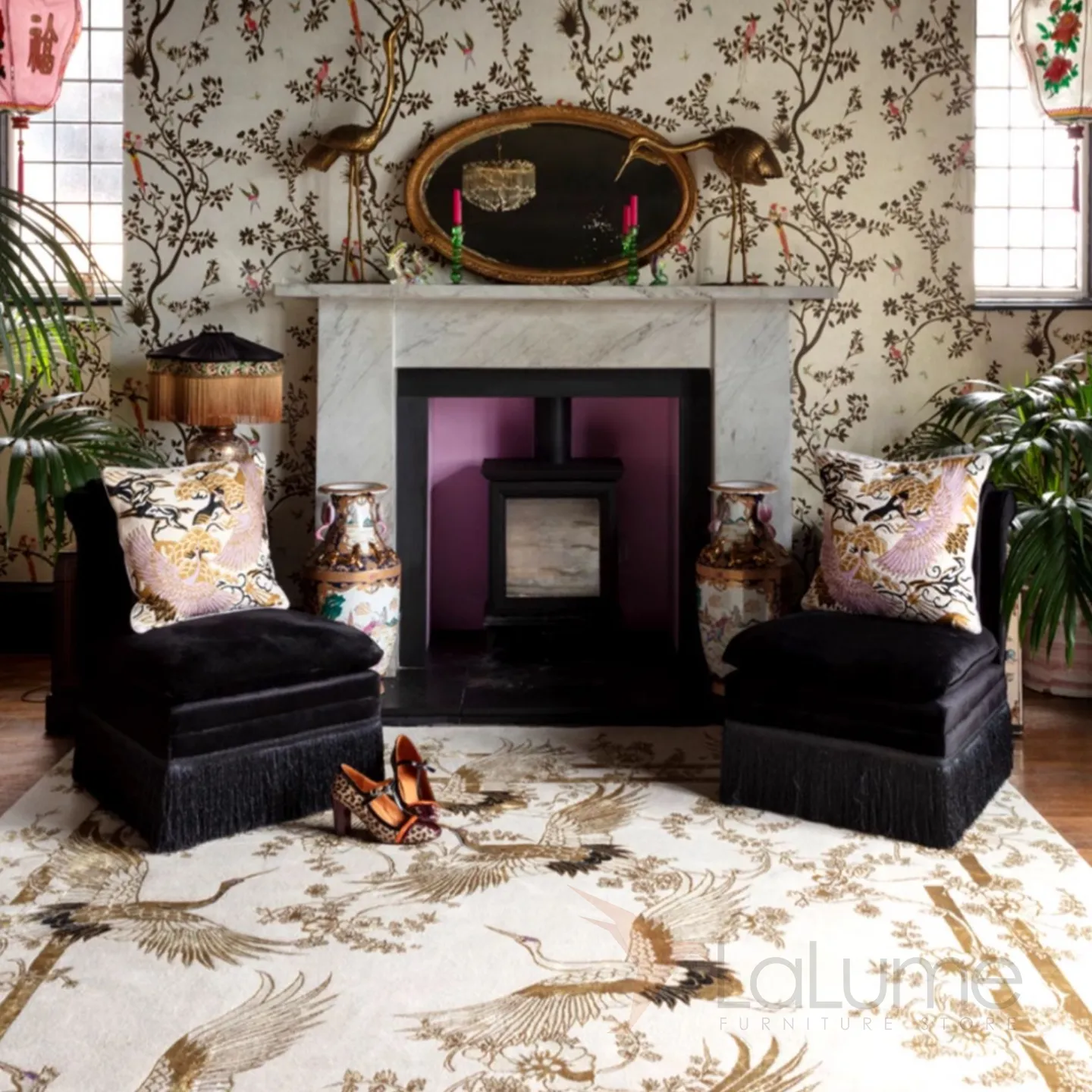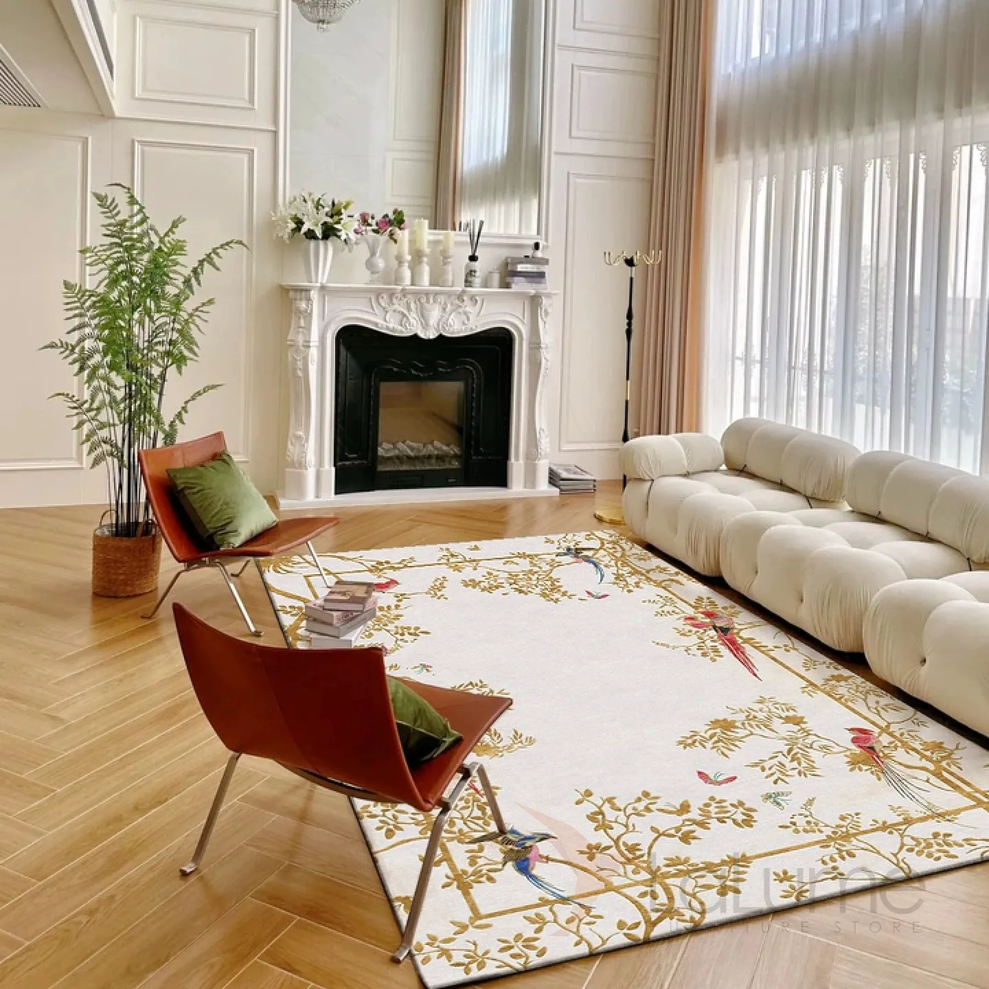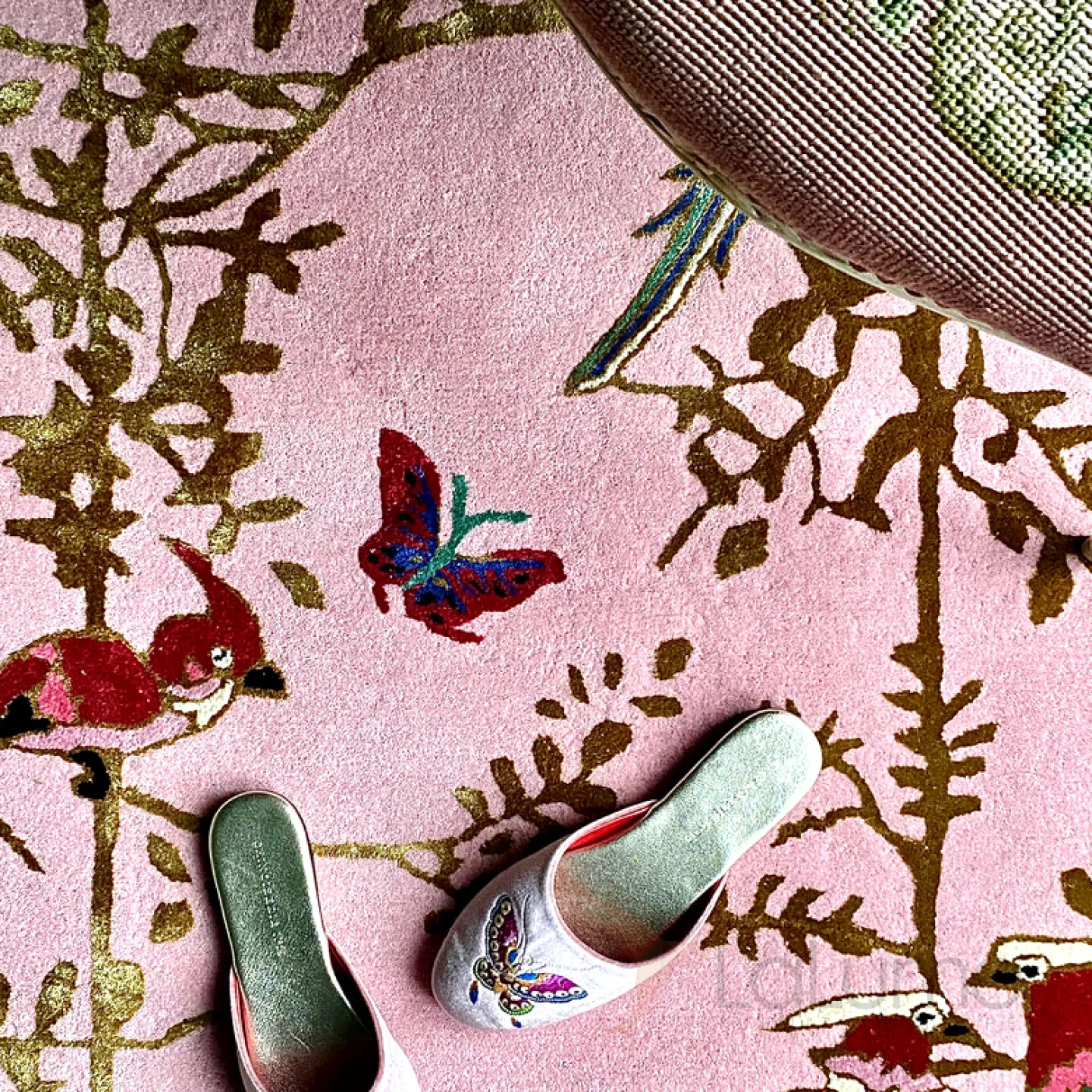 Ковёр из шерсти новозеландских овец и шёлка станет изысканным акцентом в любом интерьере. Утончённые узоры с изображением птиц придают ему особый шарм. В ассортименте представлены ковры разных размеров и оттенков.