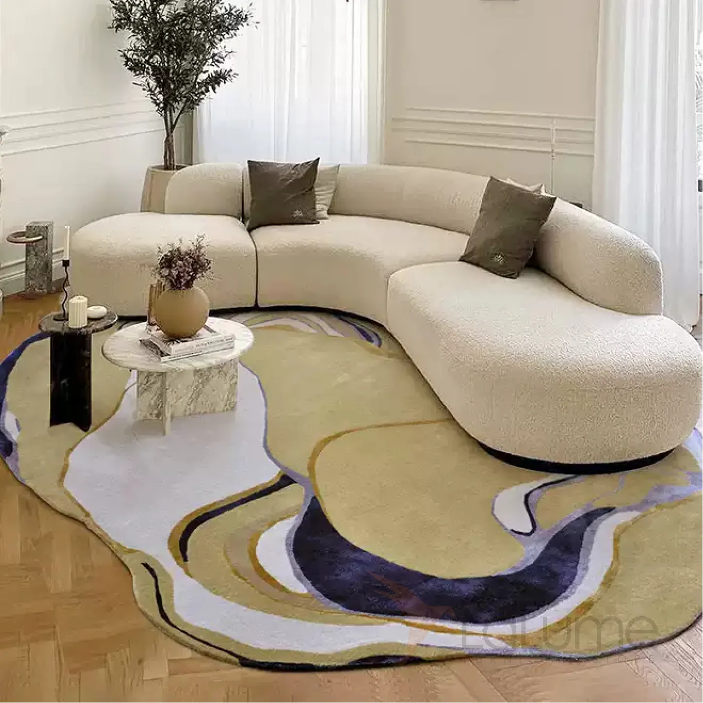 Ковёр из новозеландской шерсти и шёлка с оригинальным абстрактным узором. Выберите идеальный размер для вашего интерьера.