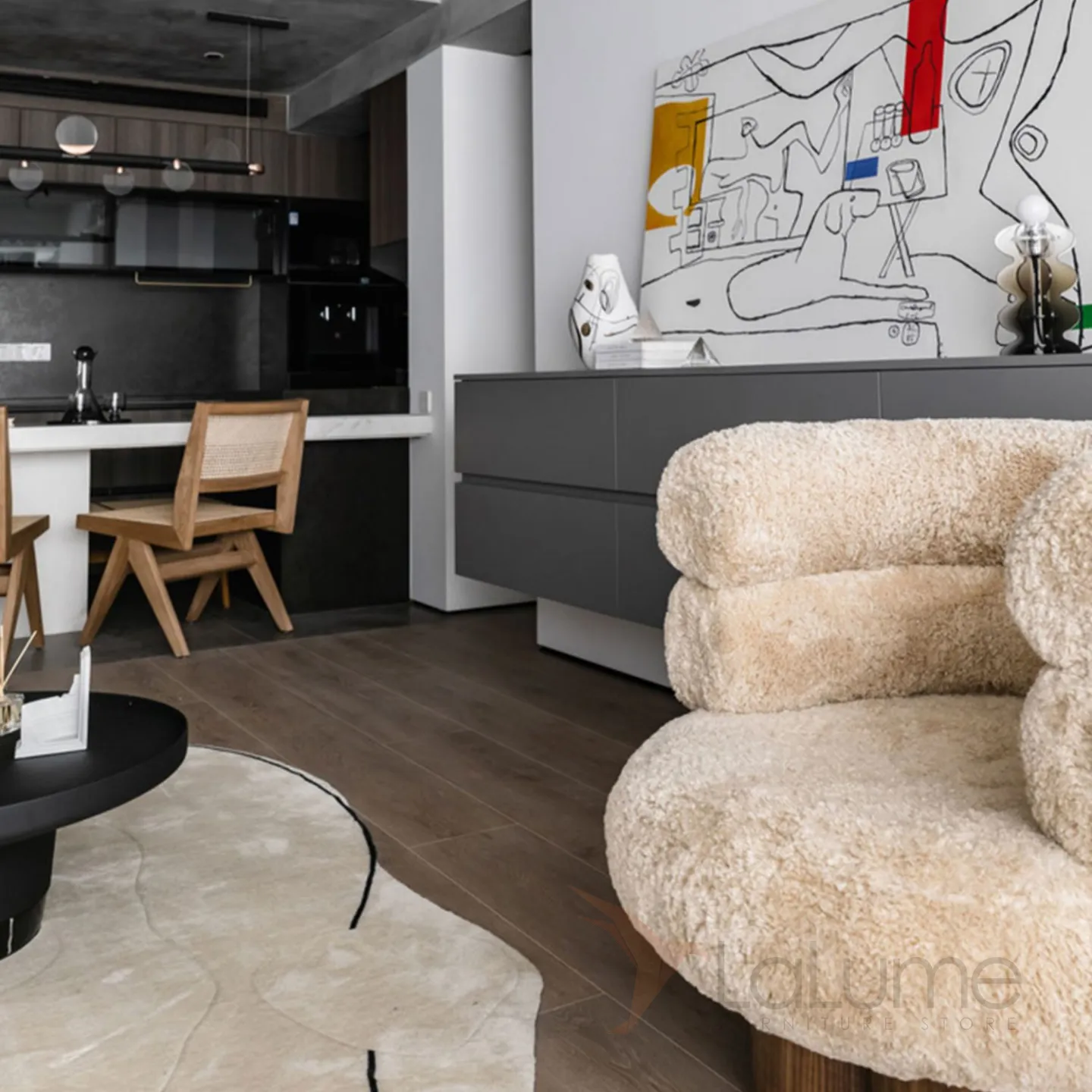 Светлый ковёр из натуральной шерсти уникальной формы. Он гармонично впишется в интерьер вашего дома. Выбирайте один из двух вариантов или подберите нужный размер.