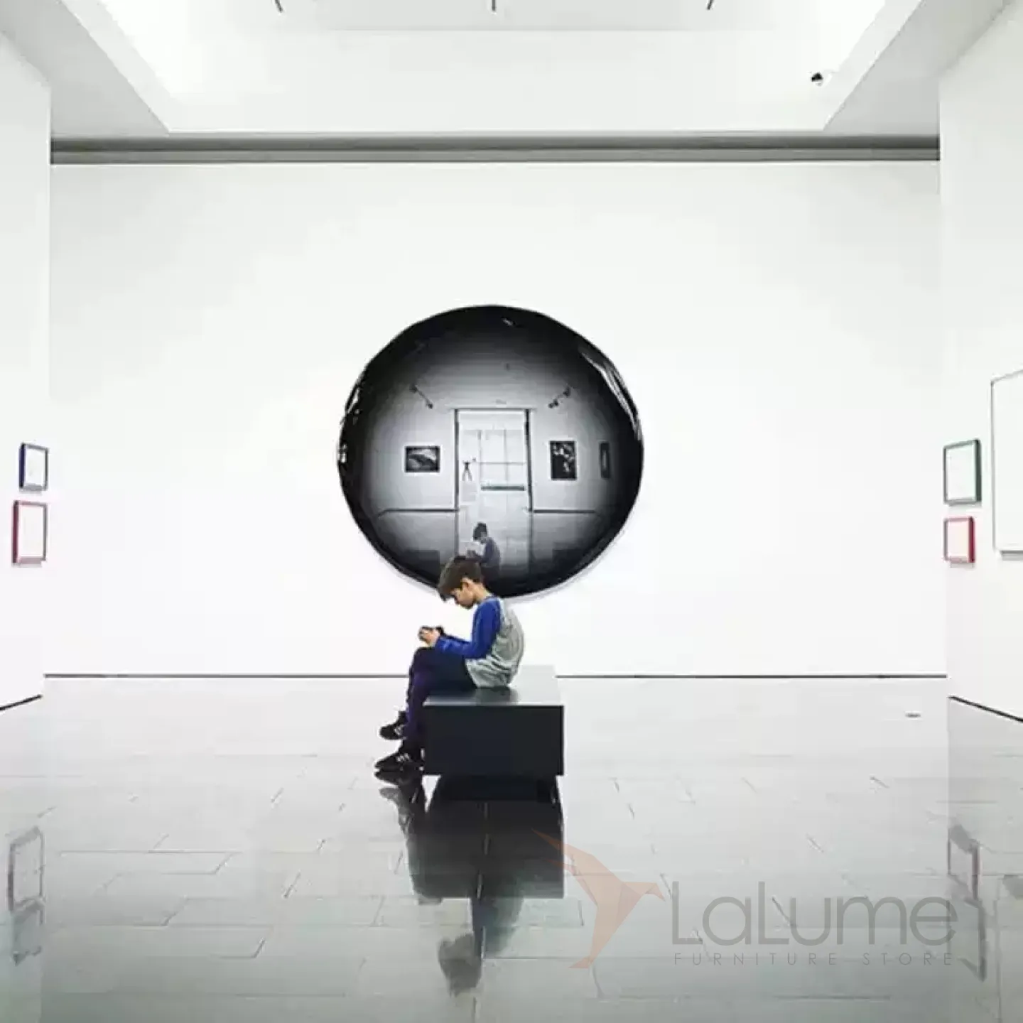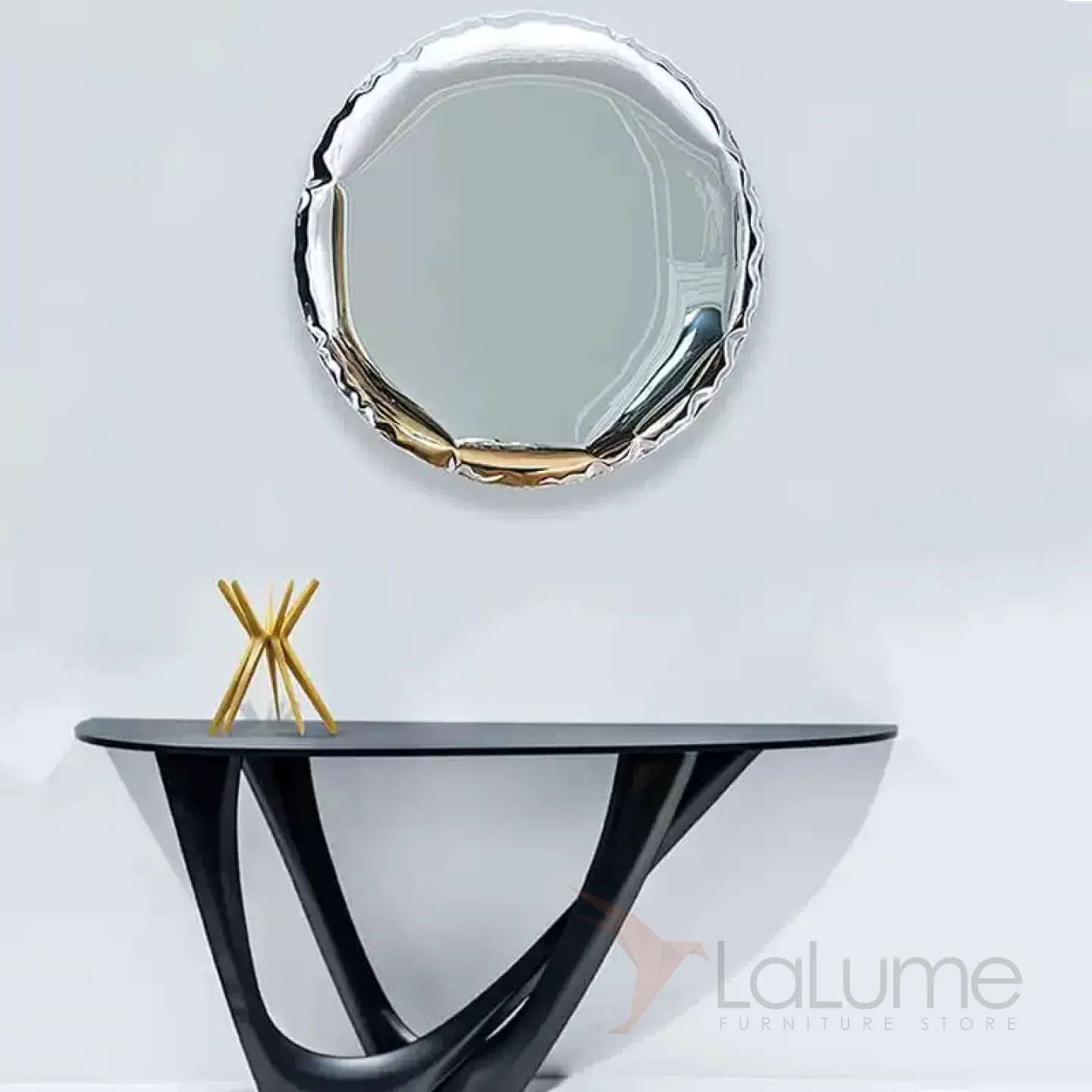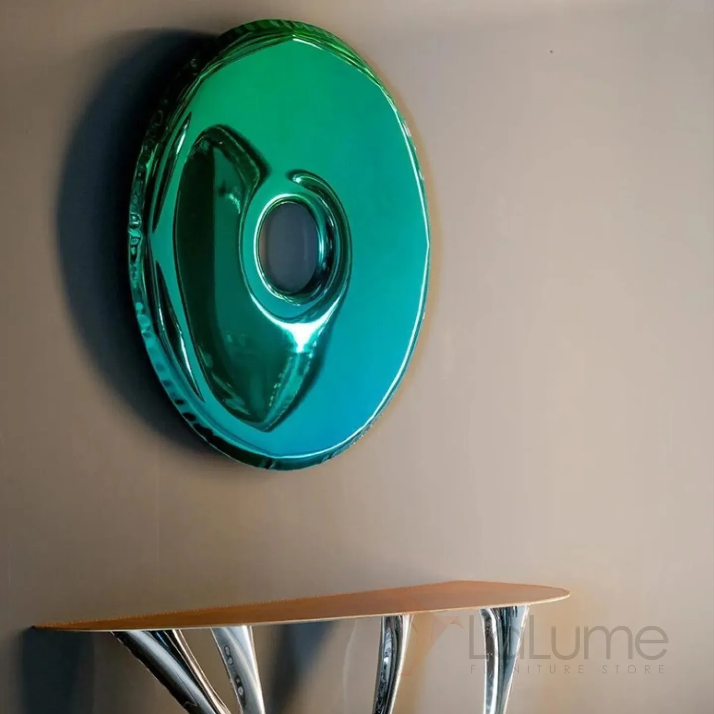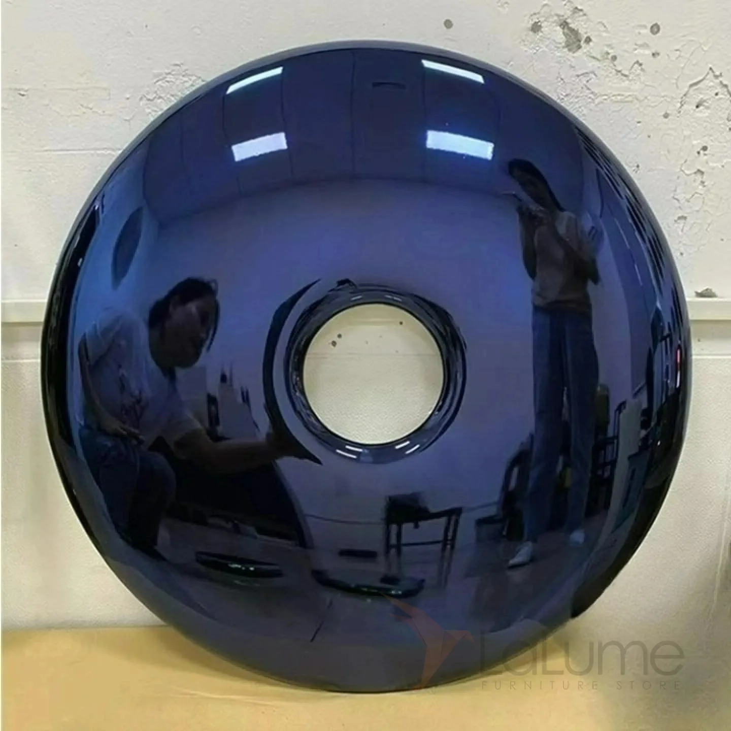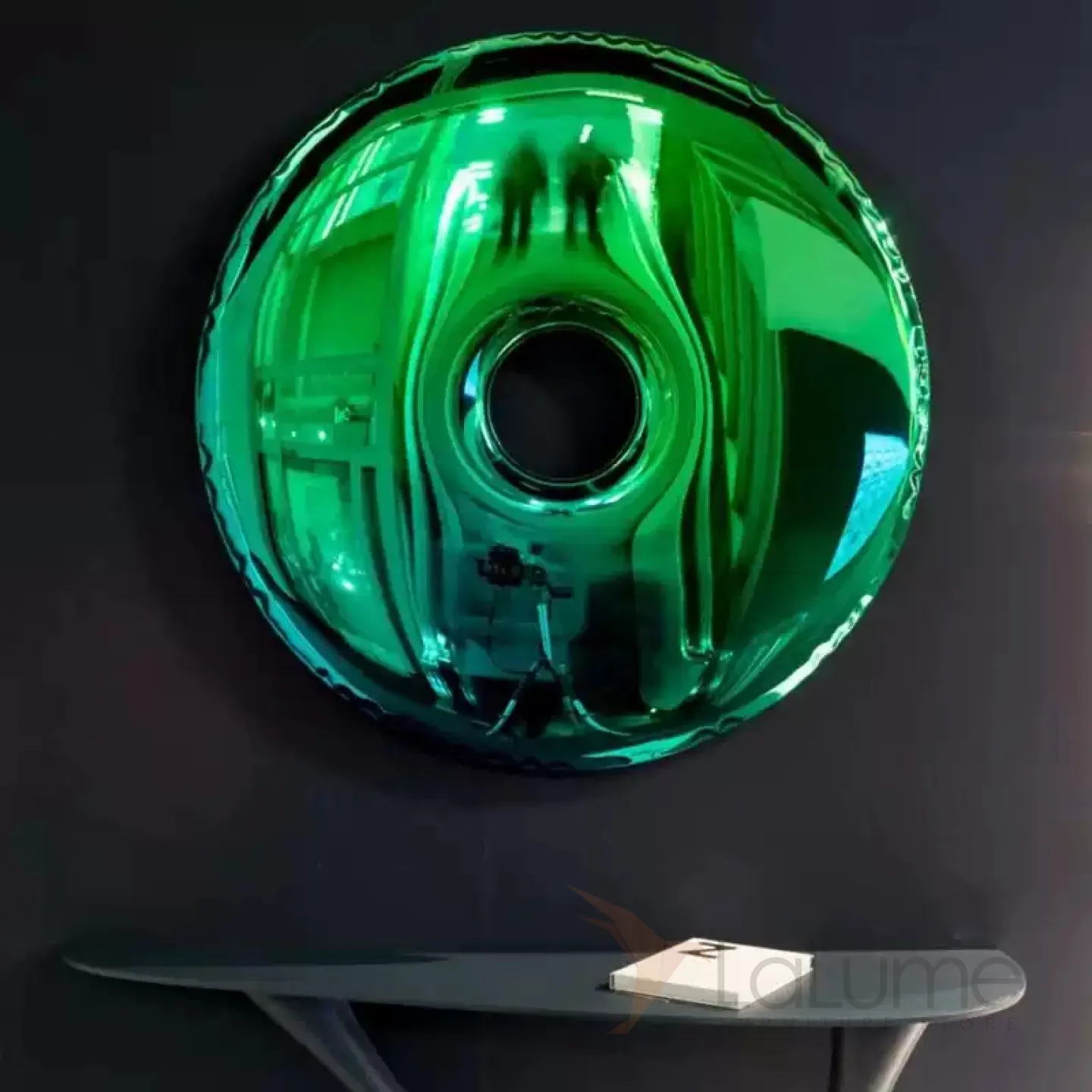 Круглое панно, выполненное из нержавеющей стали с зеркальным эффектом, может быть сплошным или в виде пончика. Оно словно воздушный фольгированный шар, и обязательно привлечёт внимание, где бы вы его ни разместили.