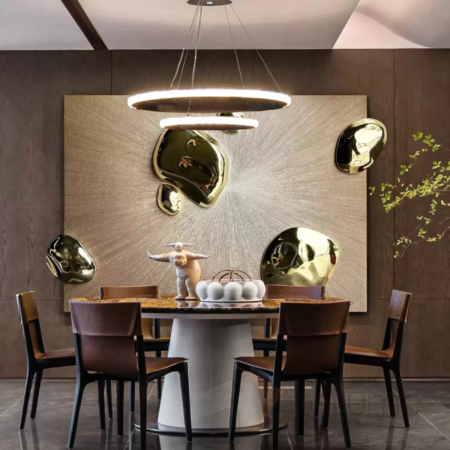 Панно из дерева с золотым покрытием оригинального дизайна. Это панно прекрасно впишется в интерьер как жилого, так и рабочего пространства.