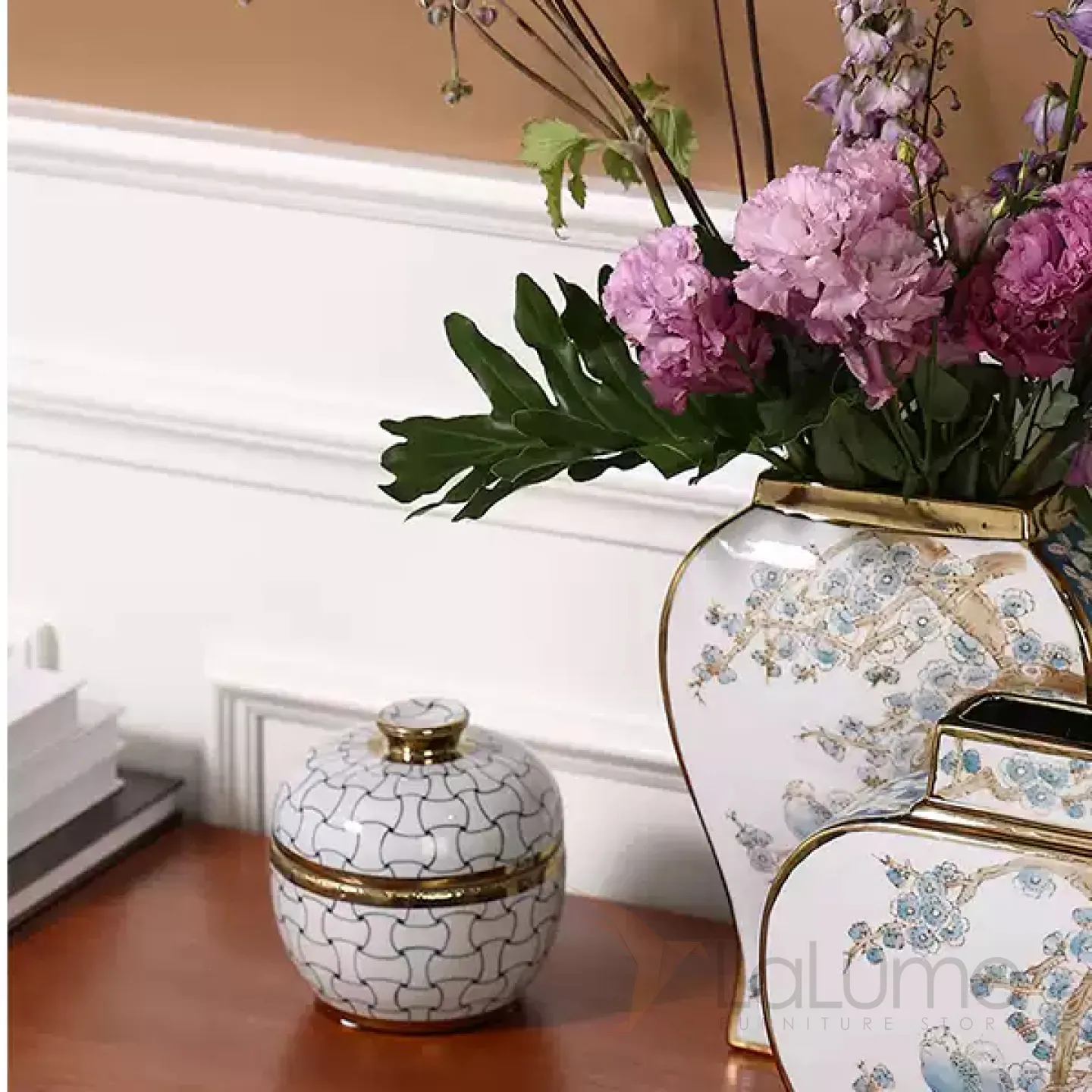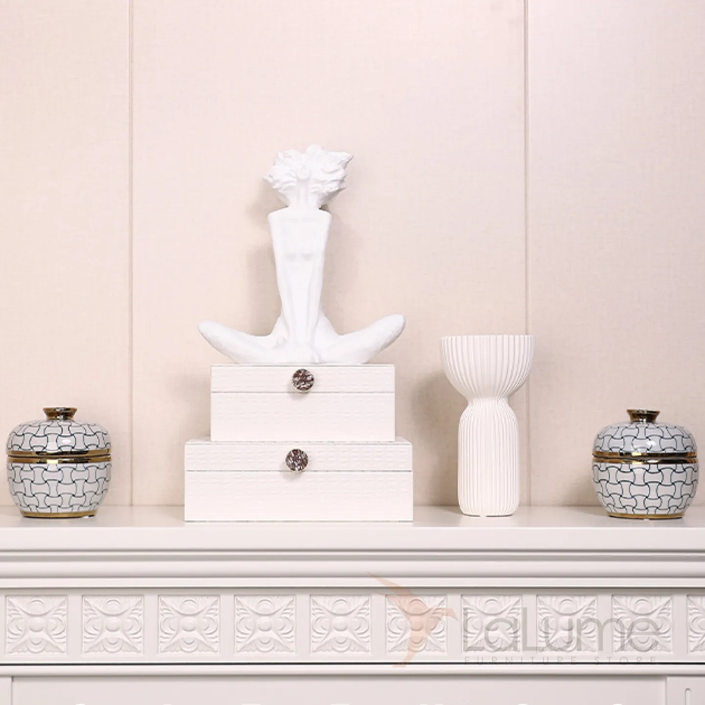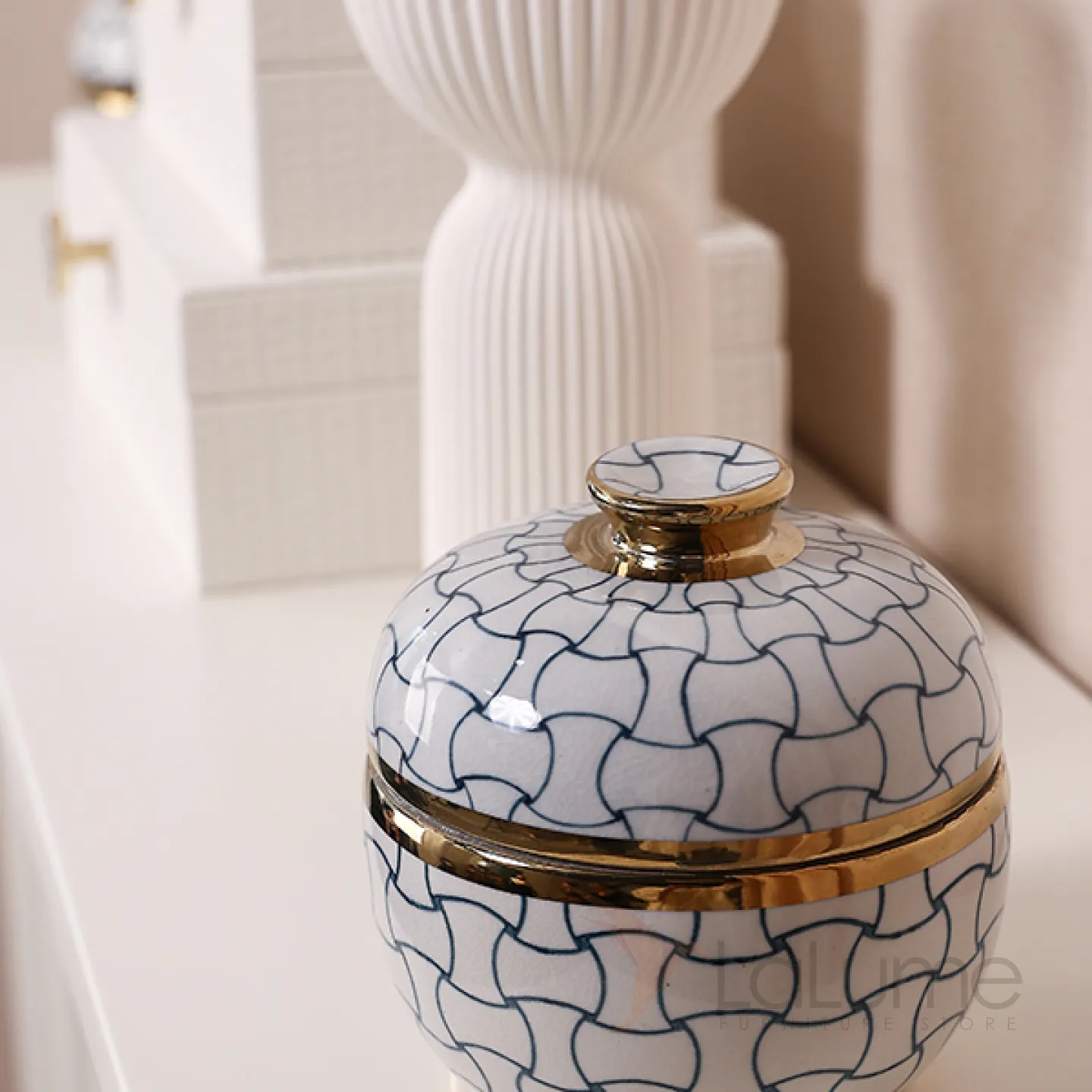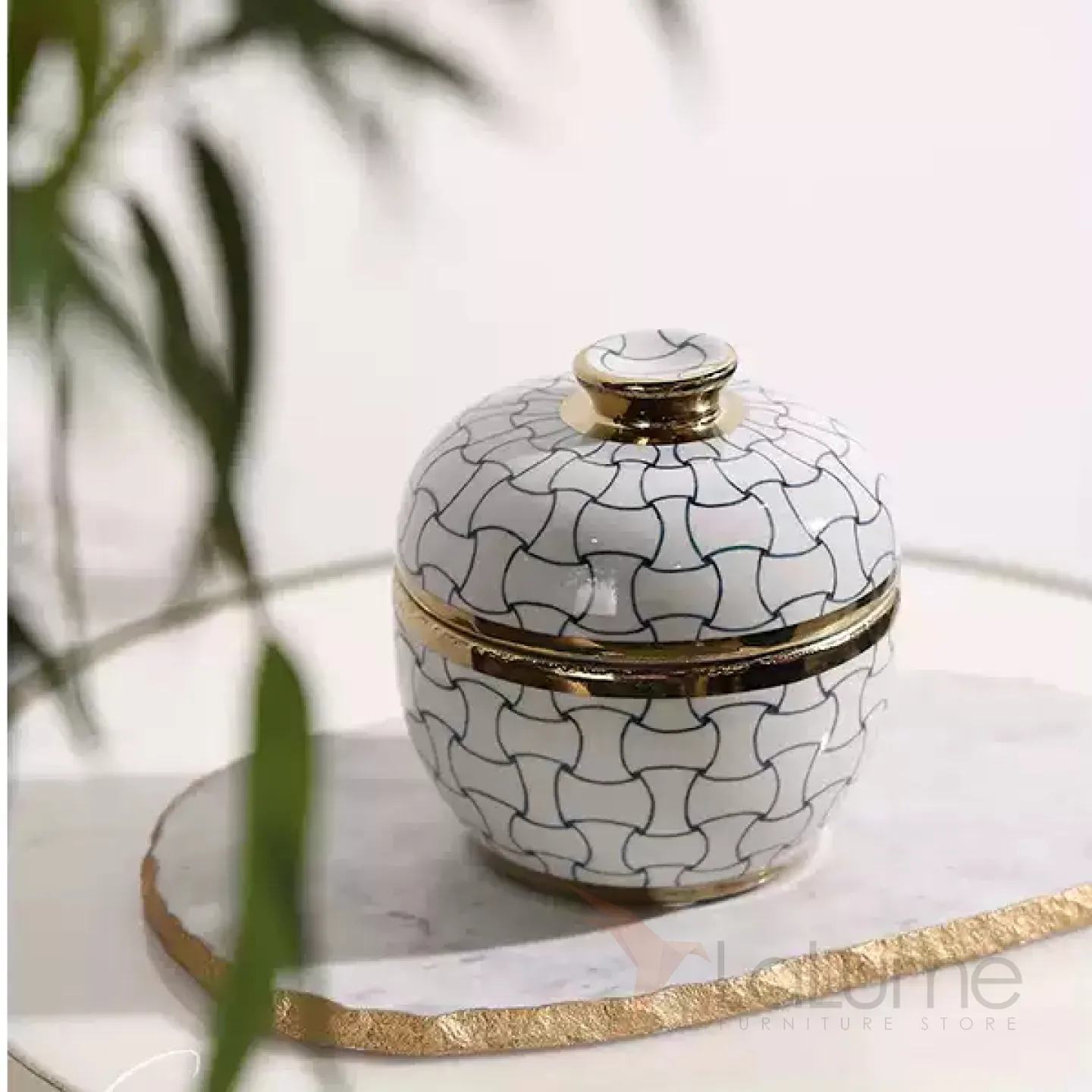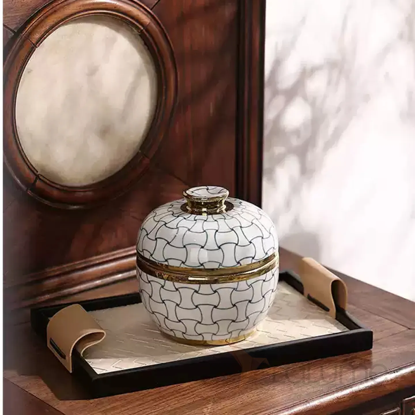 Изящная керамическая шкатулка с крышкой в классическом стиле.