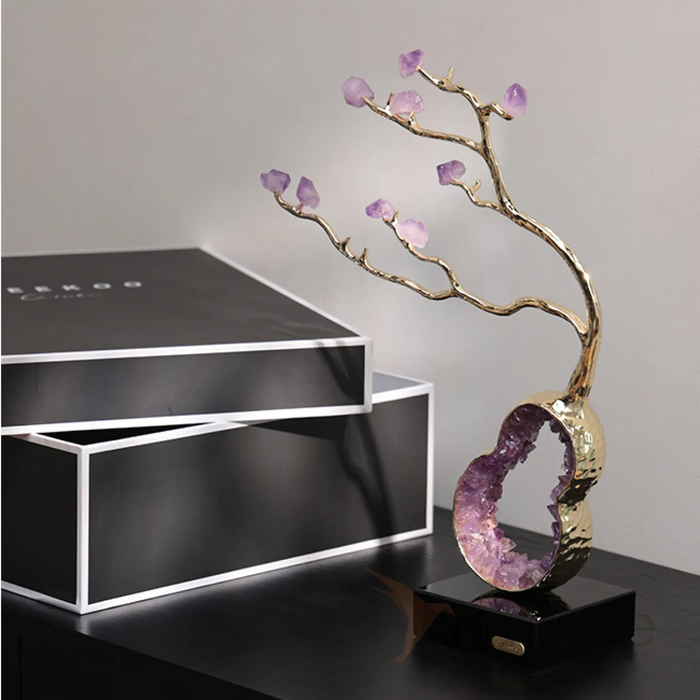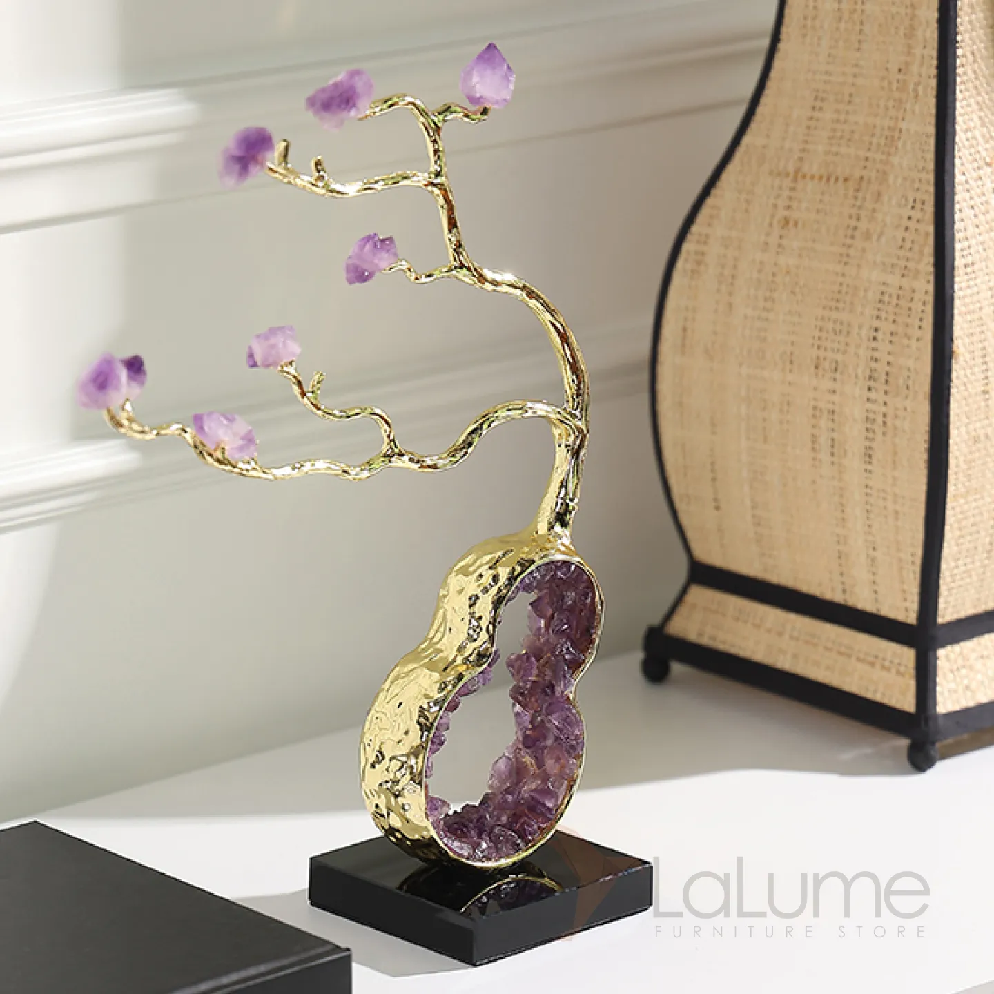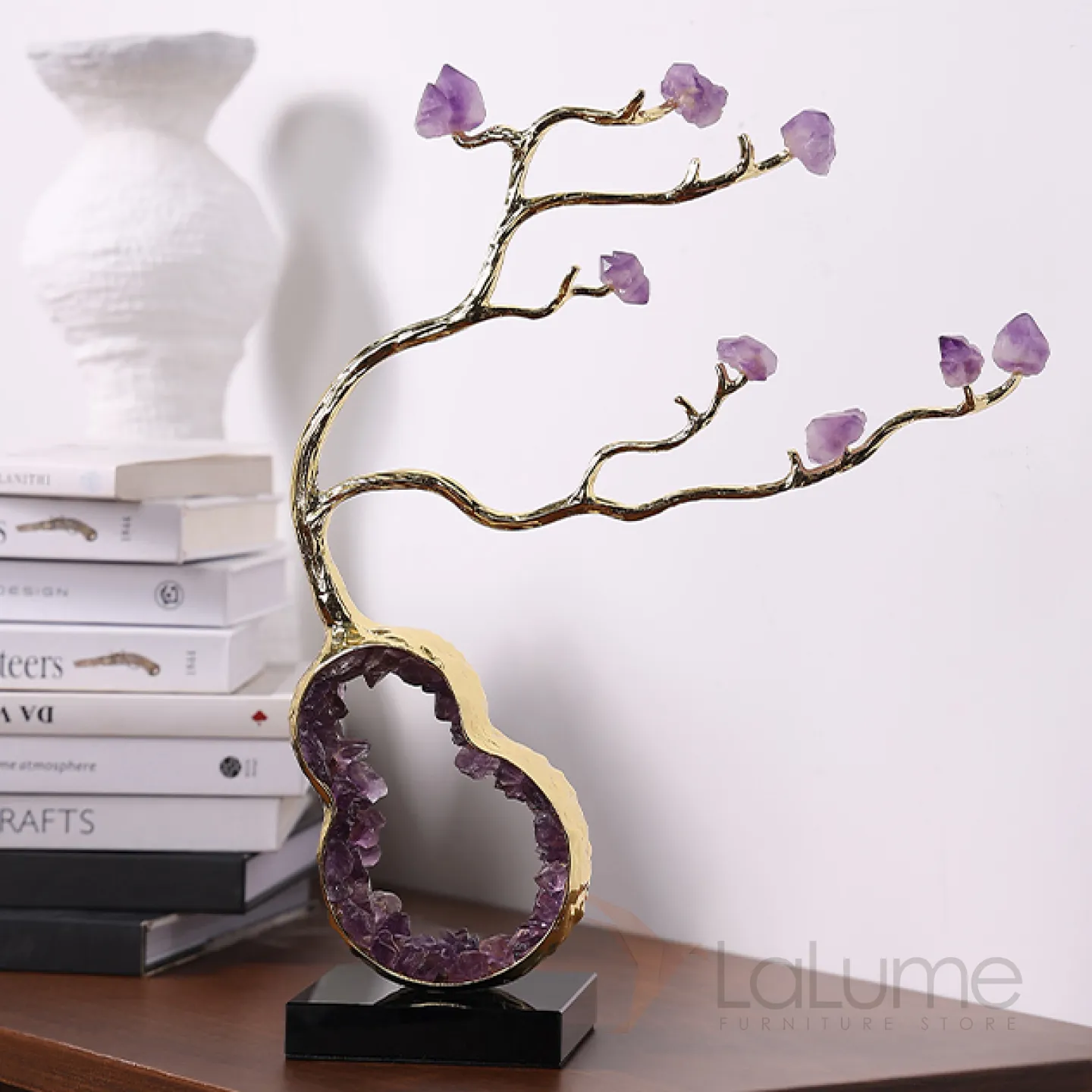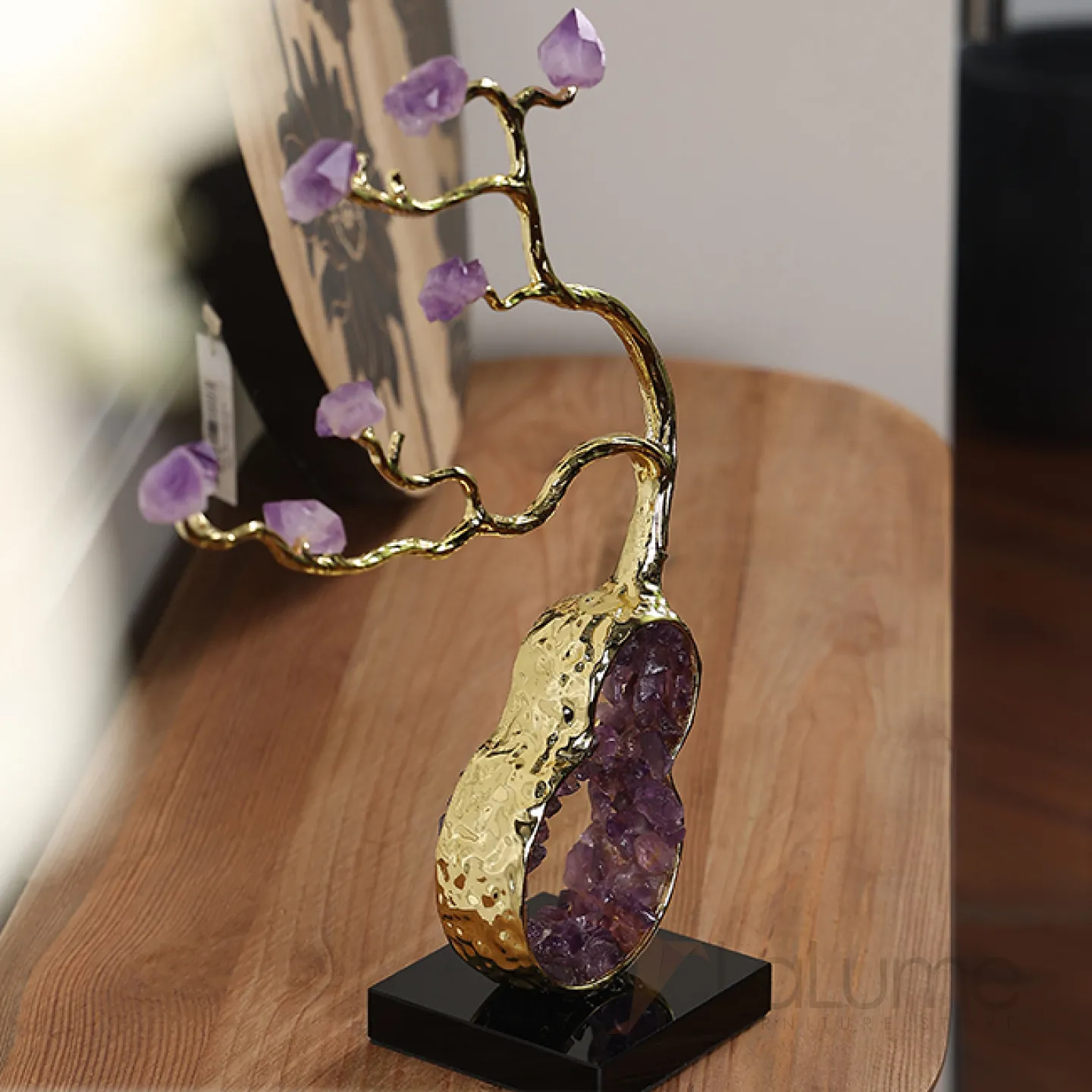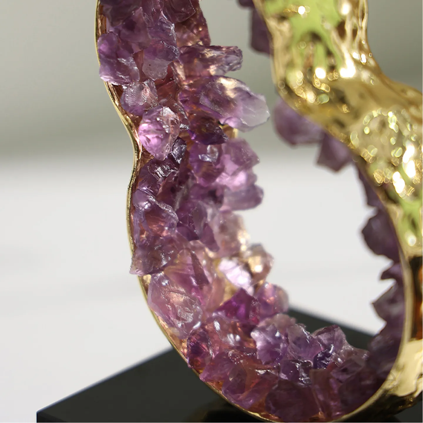 Превратите ваш интерьер в произведение искусства с элегантным настольным украшением, сочетающим благородство мрамора, блеск металла и природную красоту аметиста. Это стильное и символичное изделие добавит уюта и роскоши в любом пространстве — будь то рабочий стол, каминная полка или сервант.