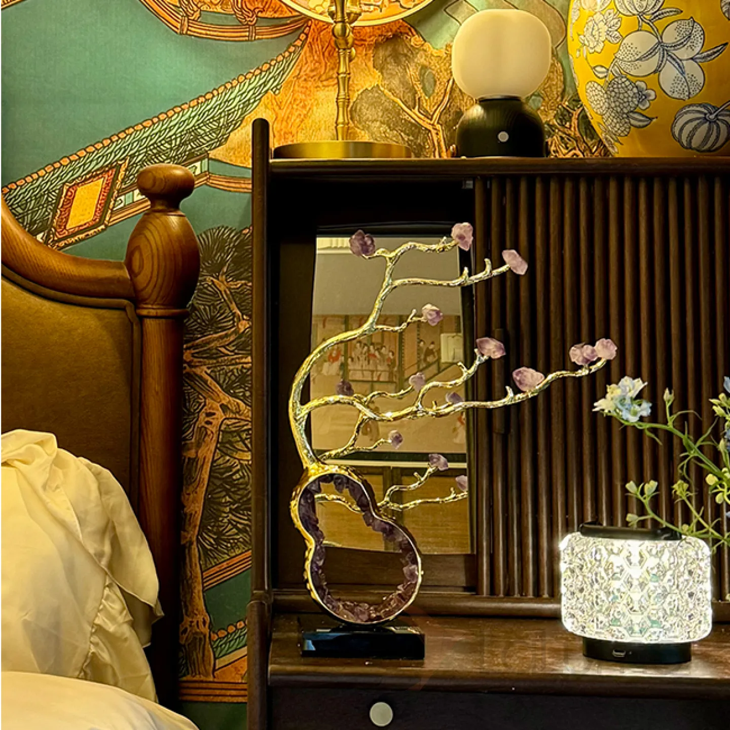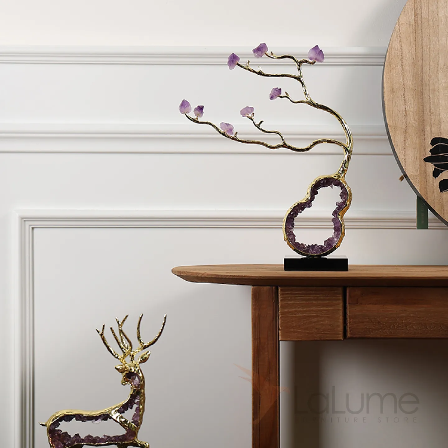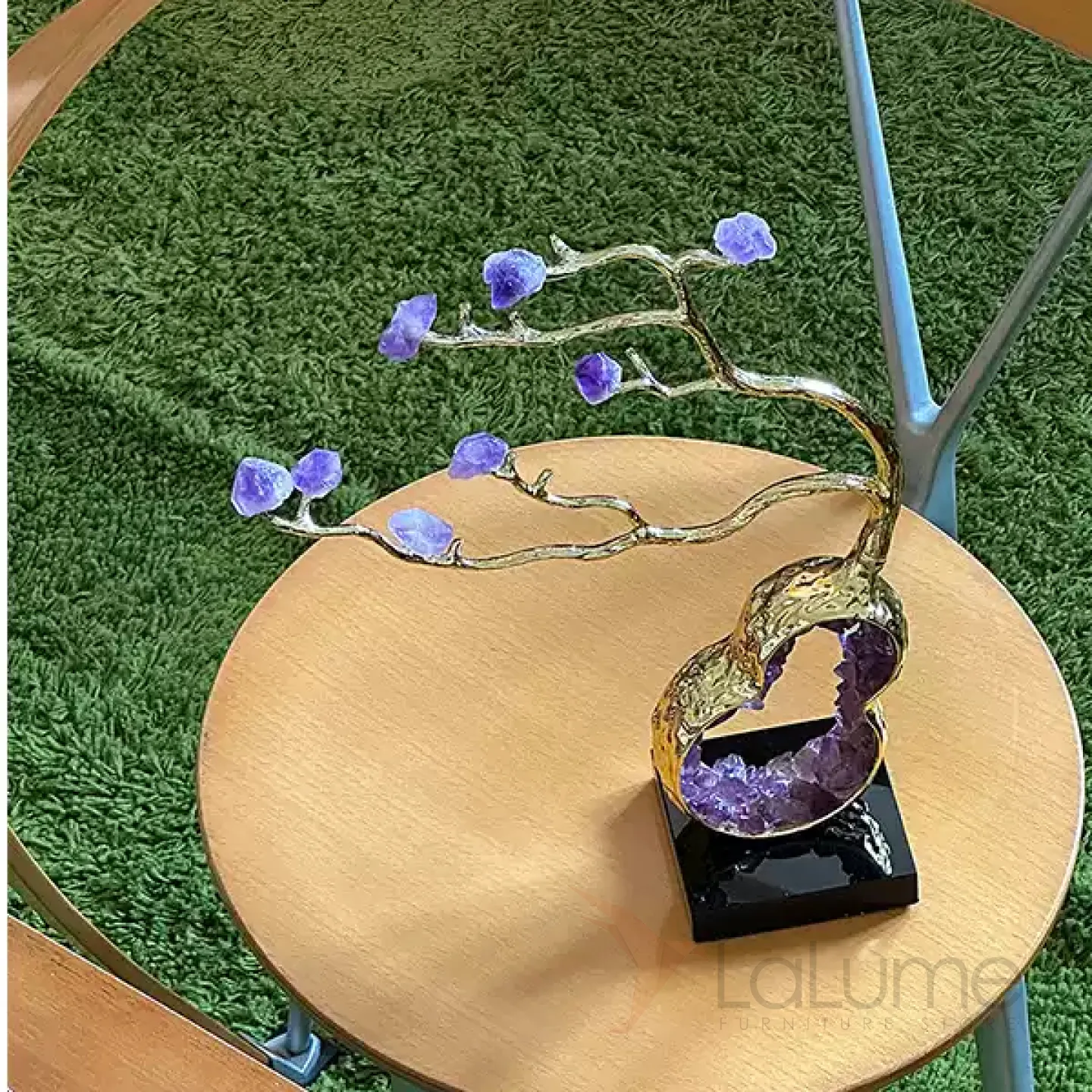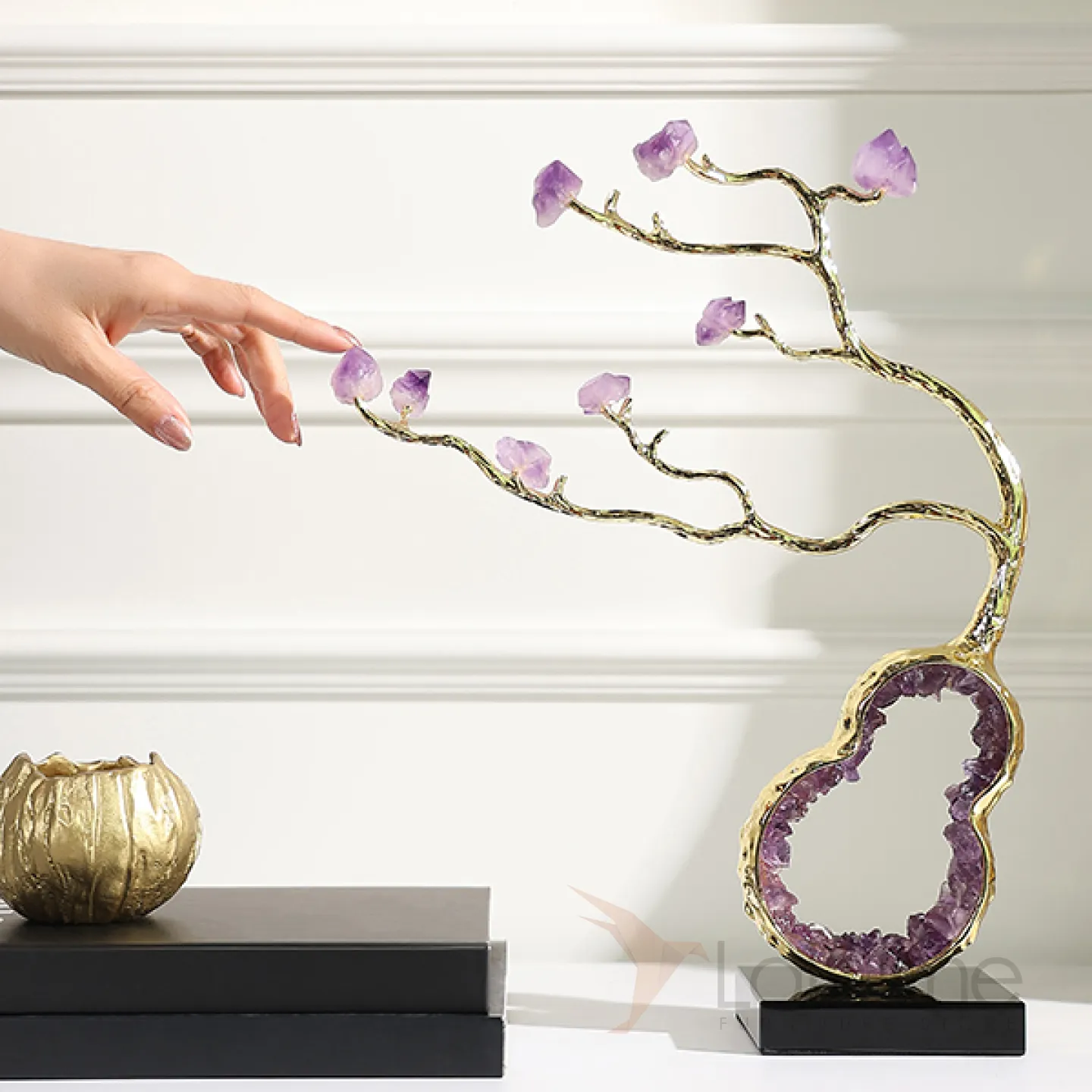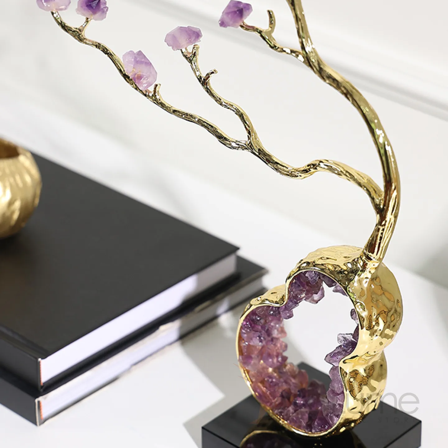 Превратите ваш интерьер в произведение искусства с элегантным настольным украшением, сочетающим благородство мрамора, блеск металла и природную красоту аметиста. Это стильное и символичное изделие добавит уюта и роскоши в любом пространстве — будь то рабочий стол, каминная полка или сервант.