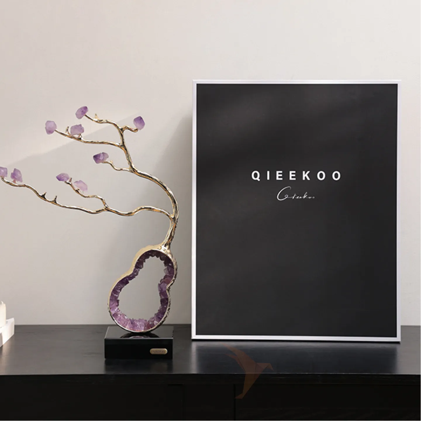 Роскошное настольное украшение от Qiekoo из аметиста с мраморной подставкой SK39691-32