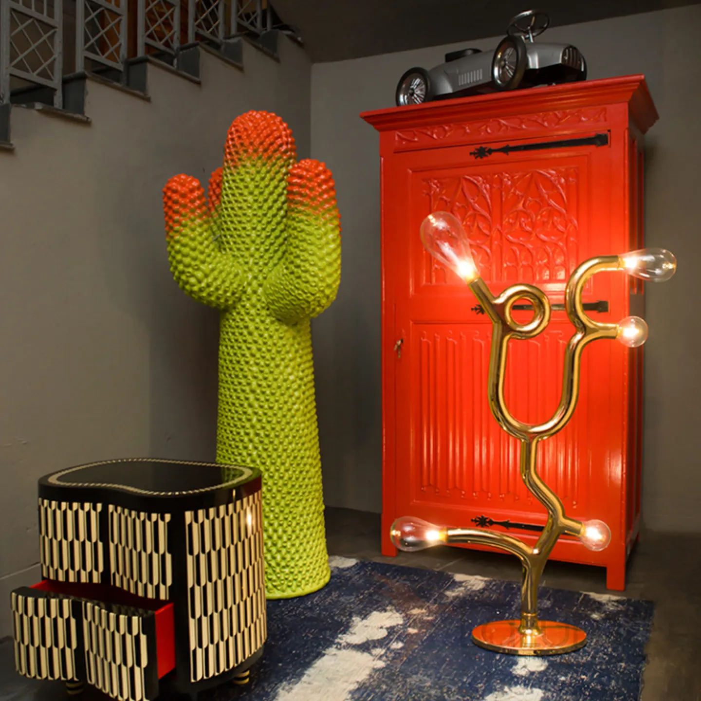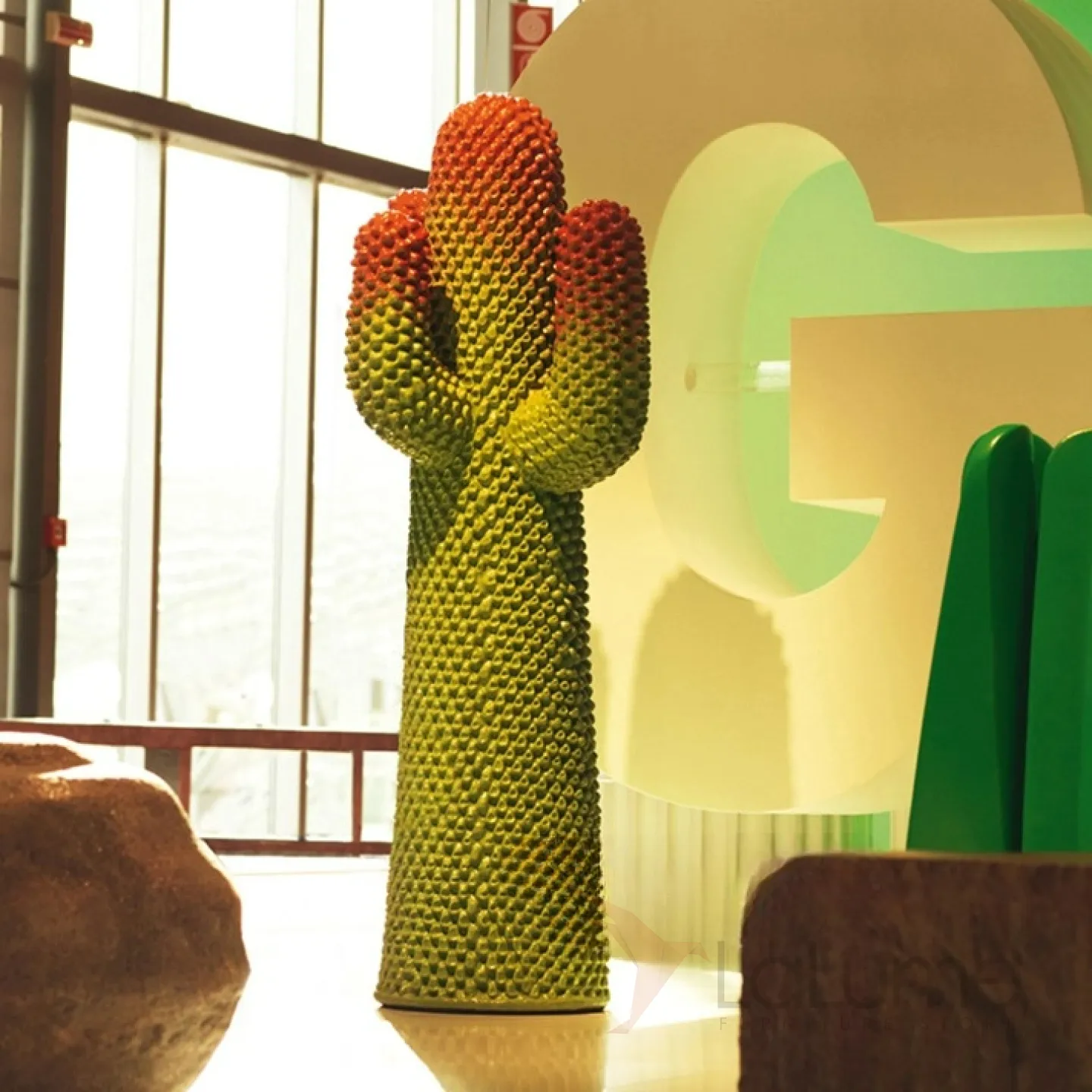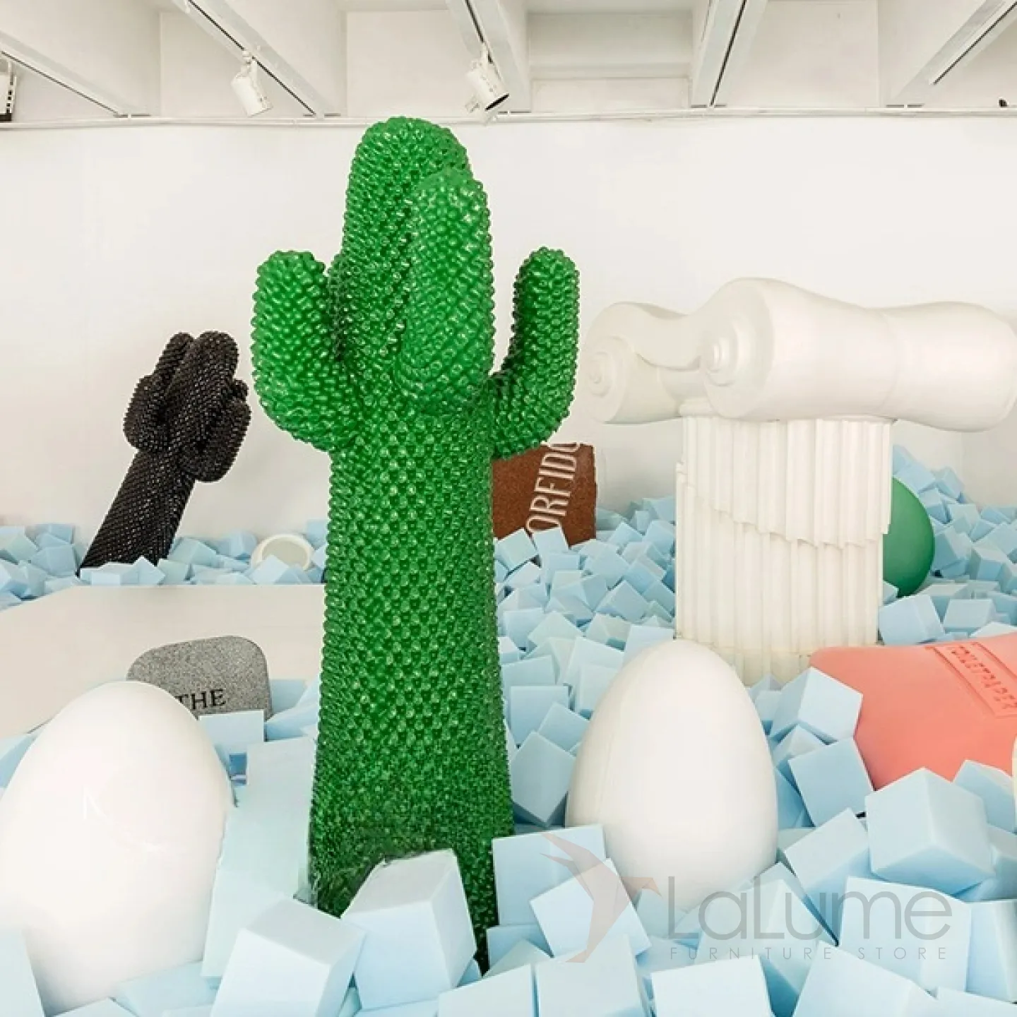 Скульптура кактуса, выполненная из стеклопластика, доступна в нескольких вариантах размера.