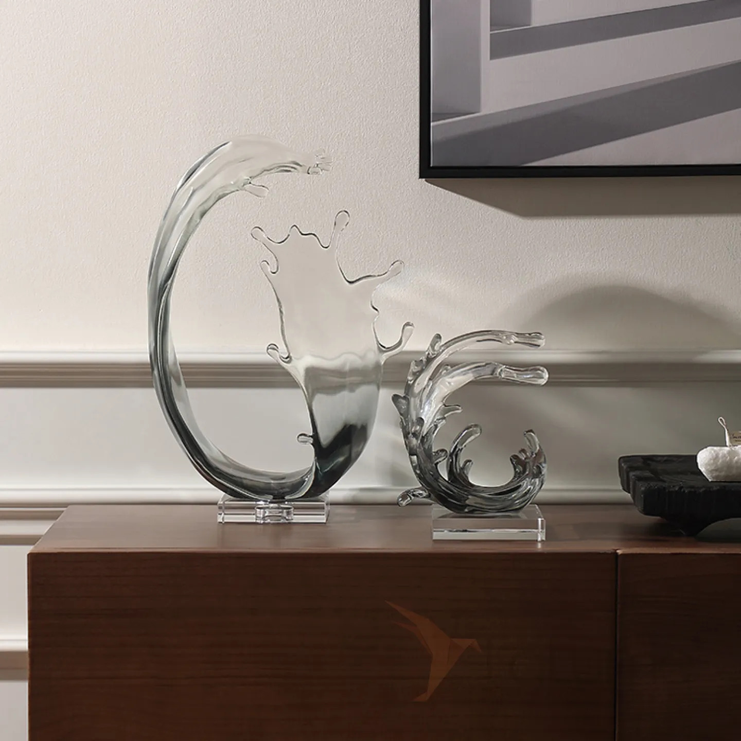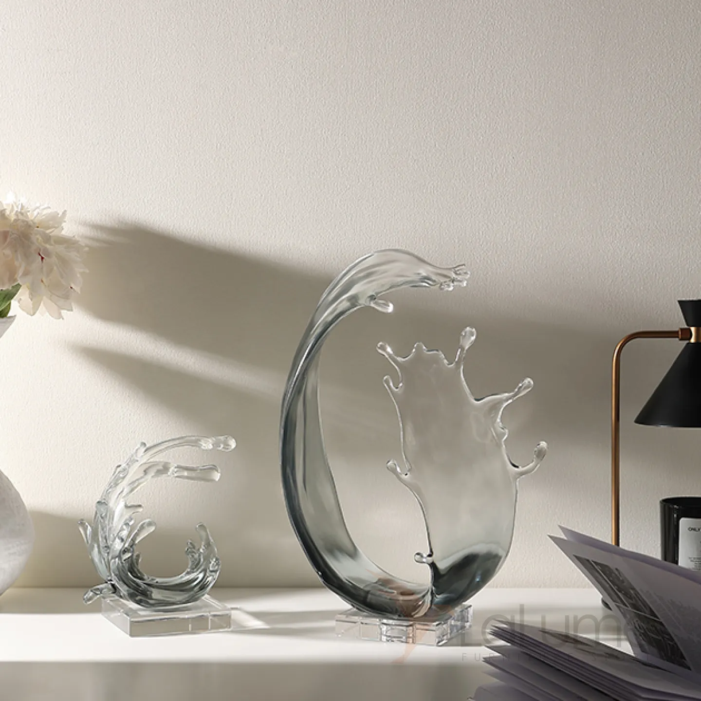 Прозрачная фигурка волны в двух уникальных вариантах. Статуэтка изготовлена из смолы.