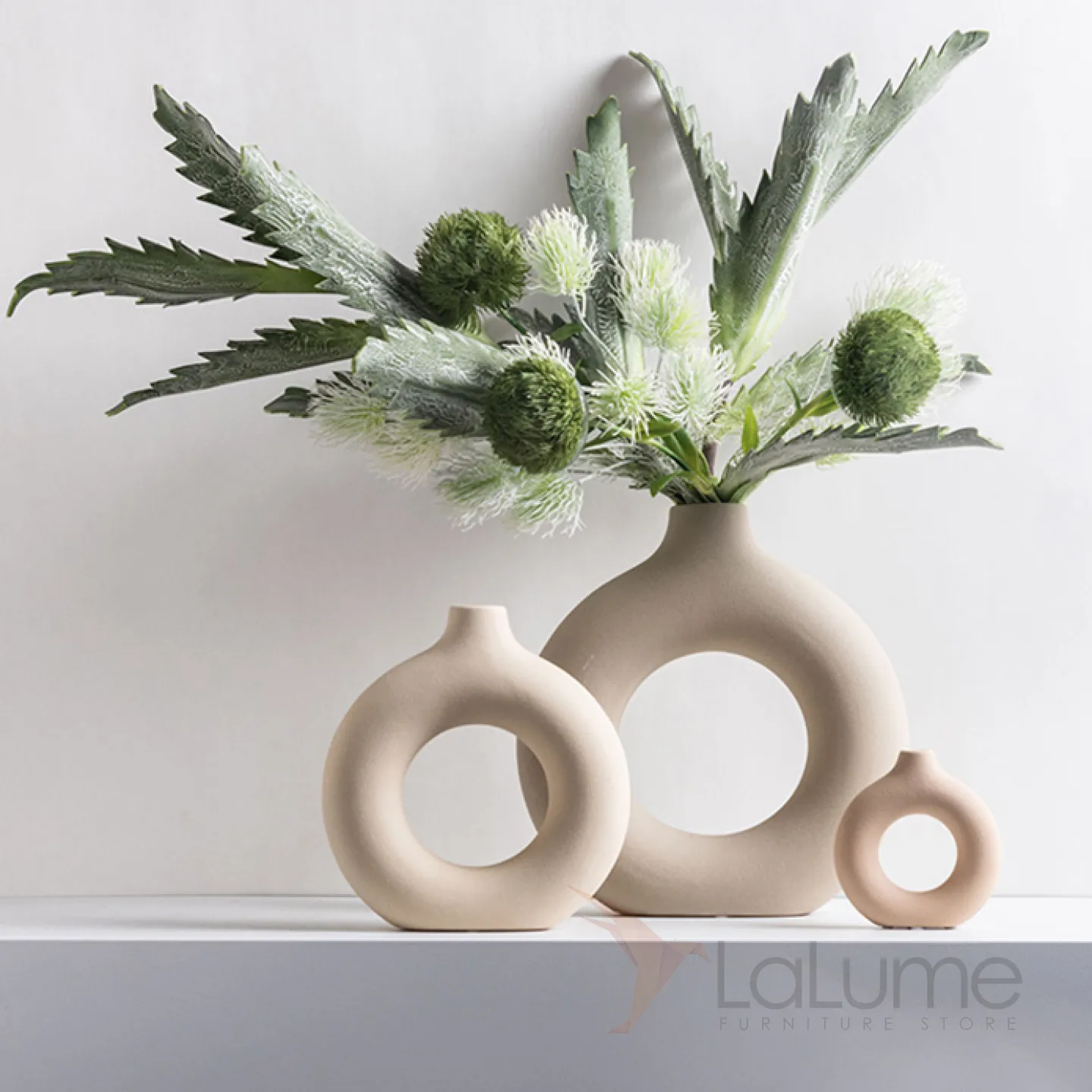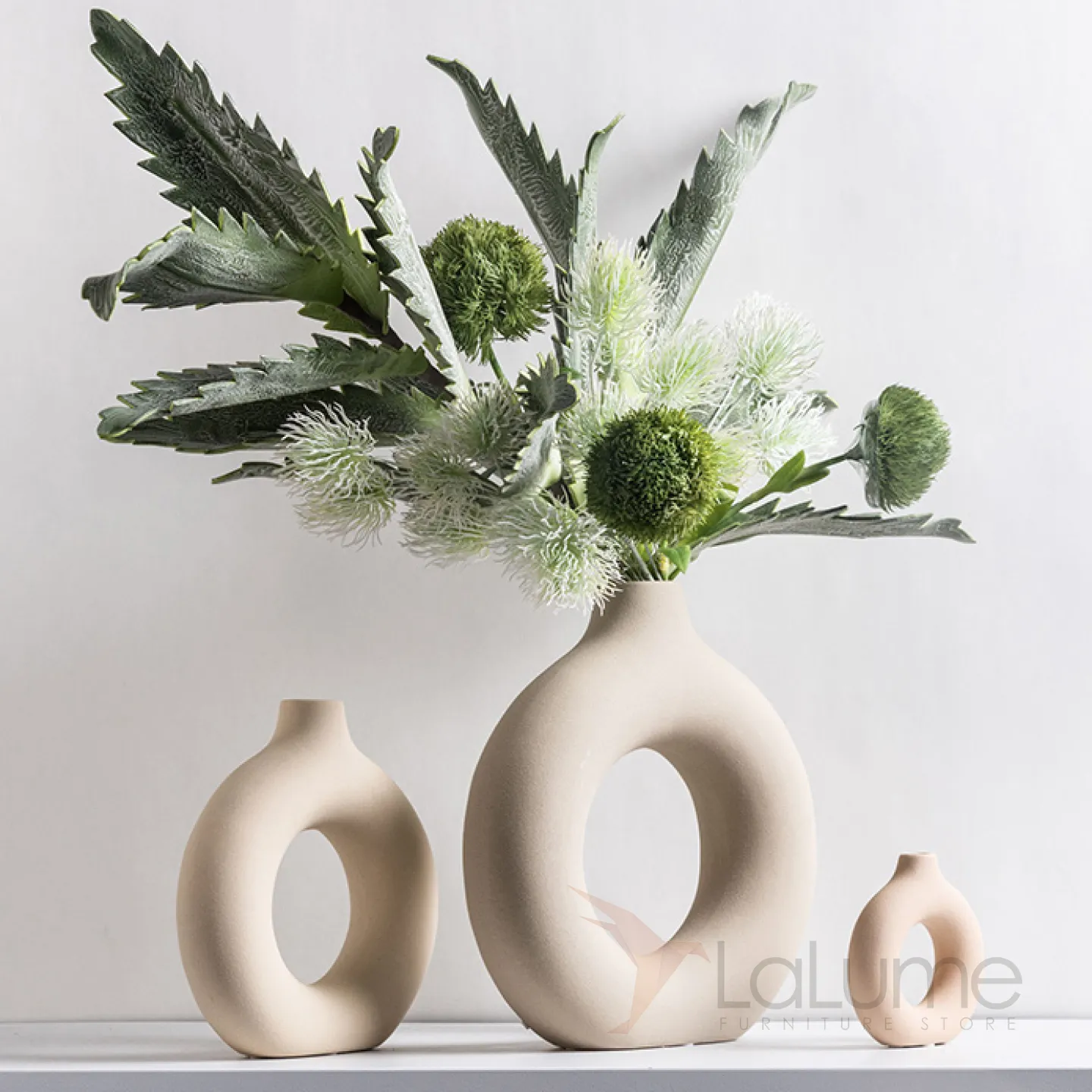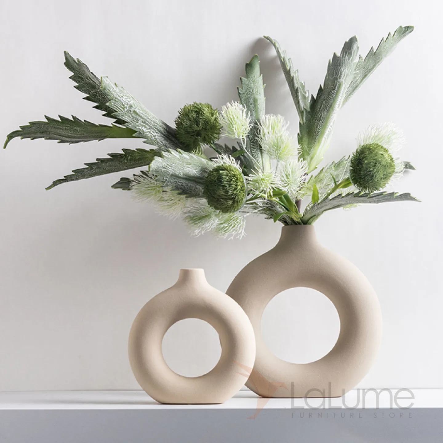 Декоративная ваза лаконичной формы и дизайна из керамики, дополнительно можно приобрести качественную имитацию растений.