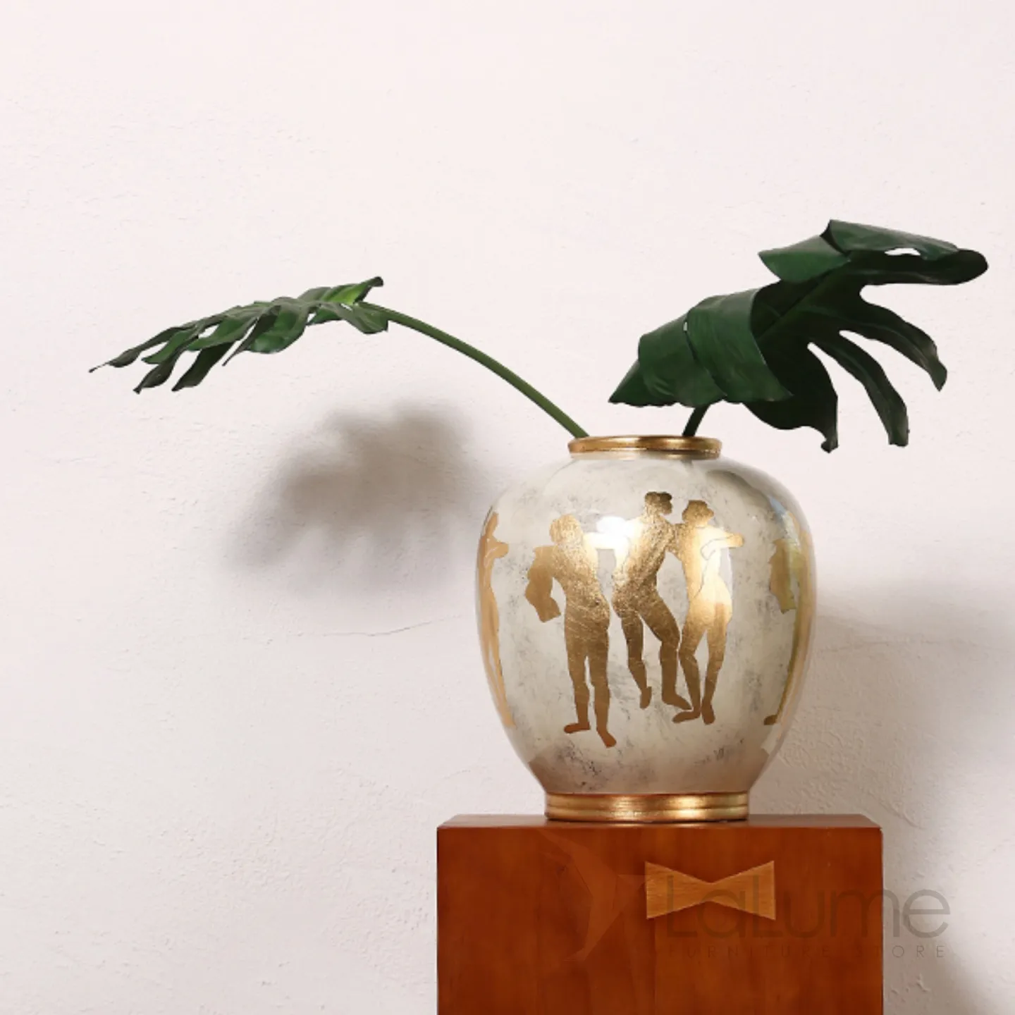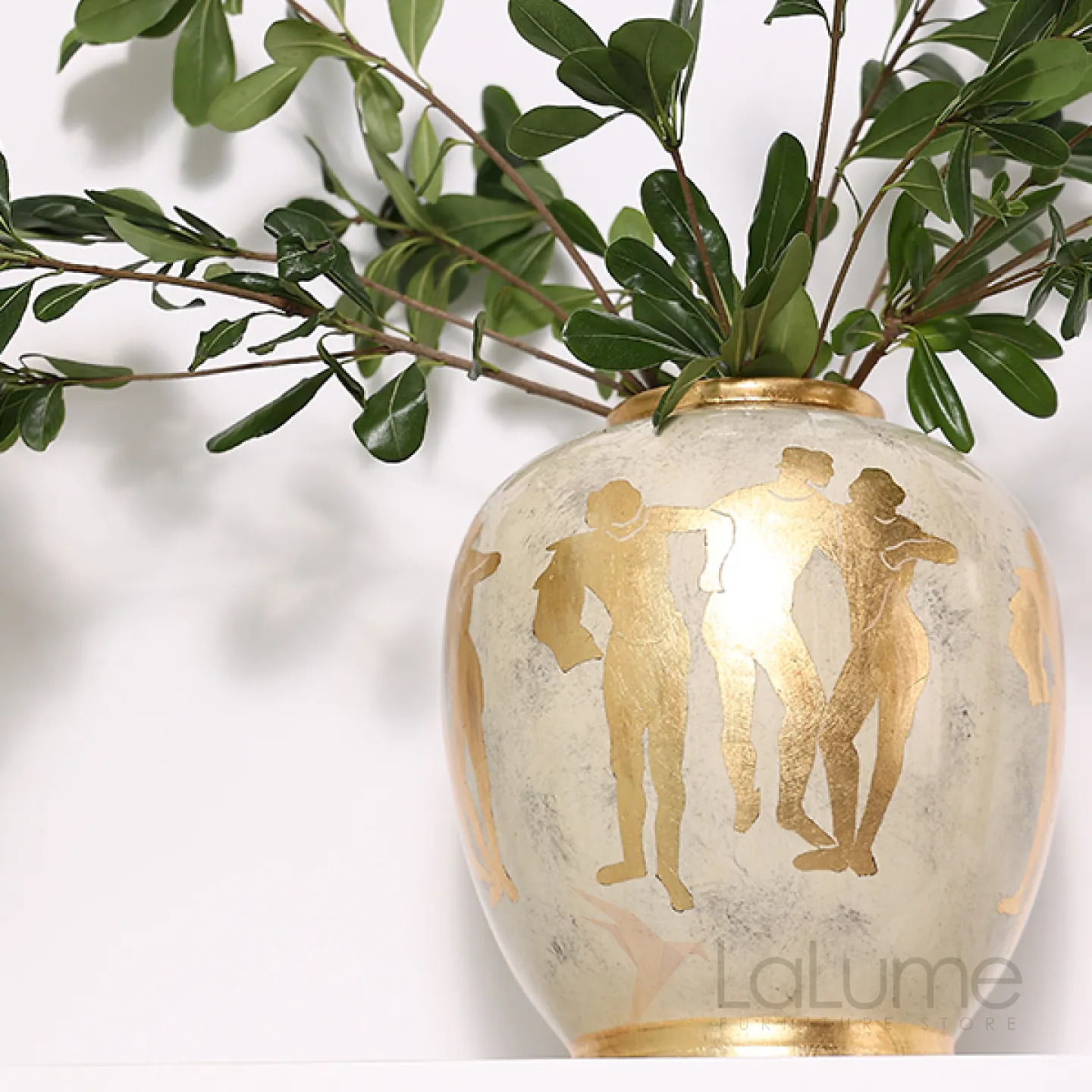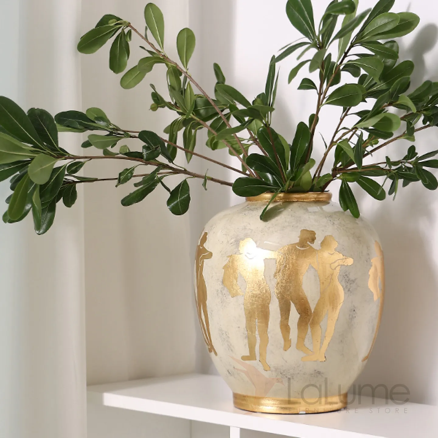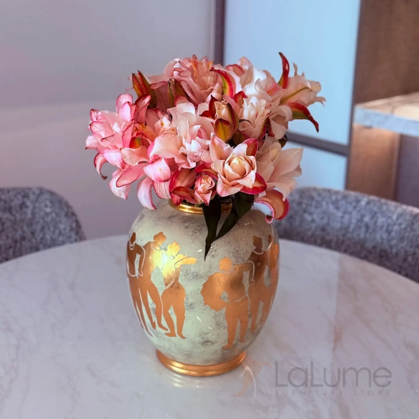 Керамическая ваза в стиле ретро с греческими мотивами. Позолота придает изделию элегантность и изысканность, гармонично вписывая его в любой интерьер.