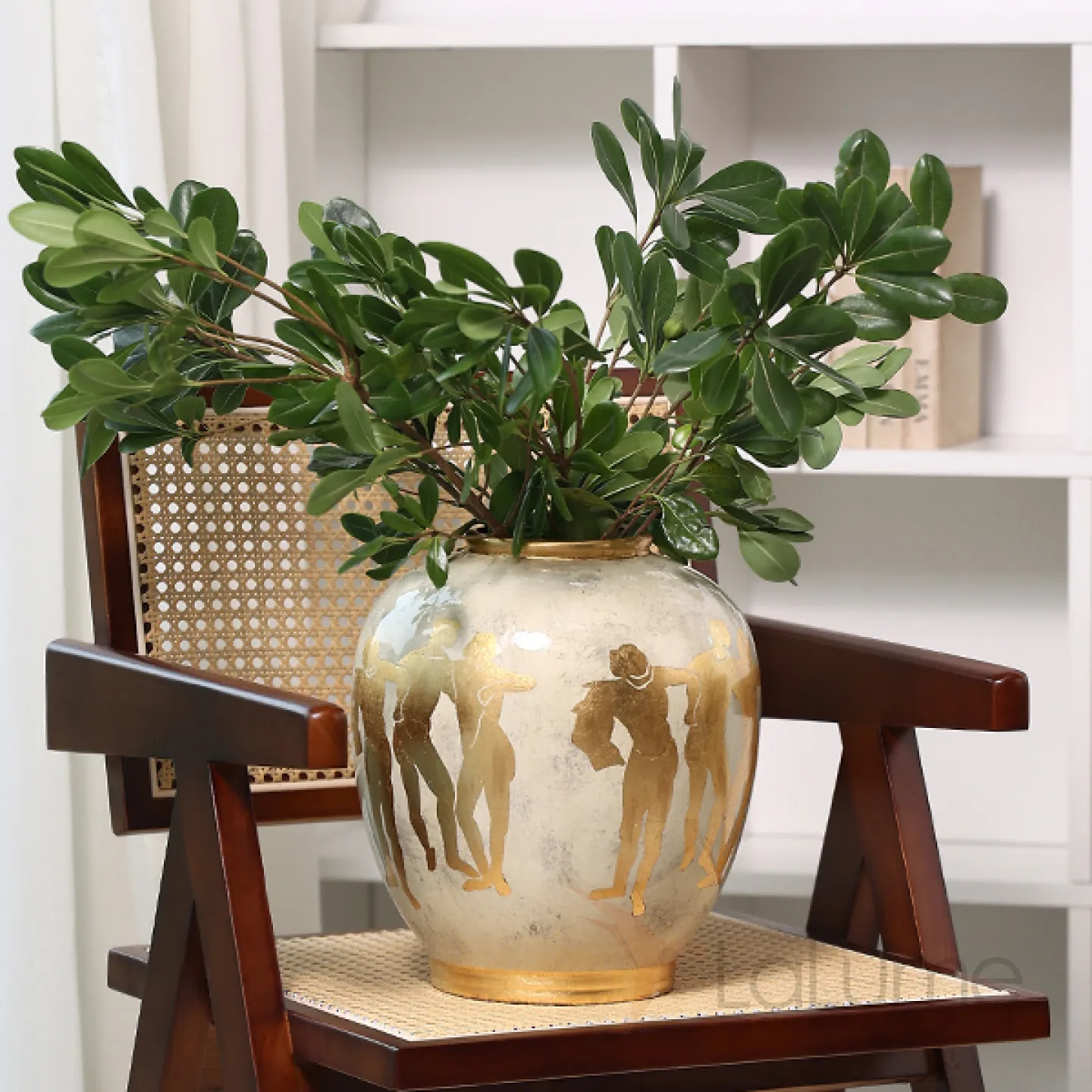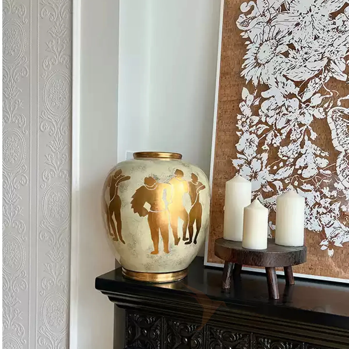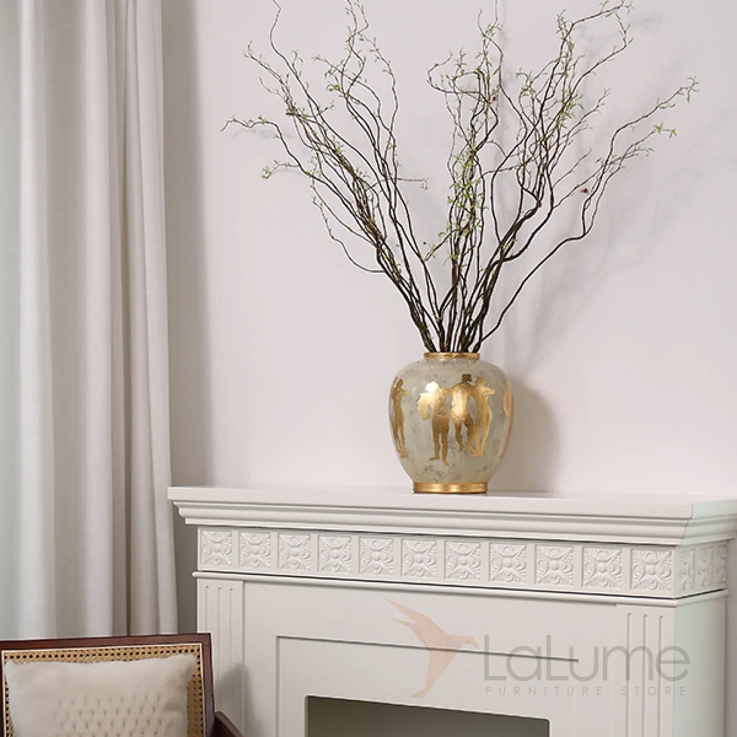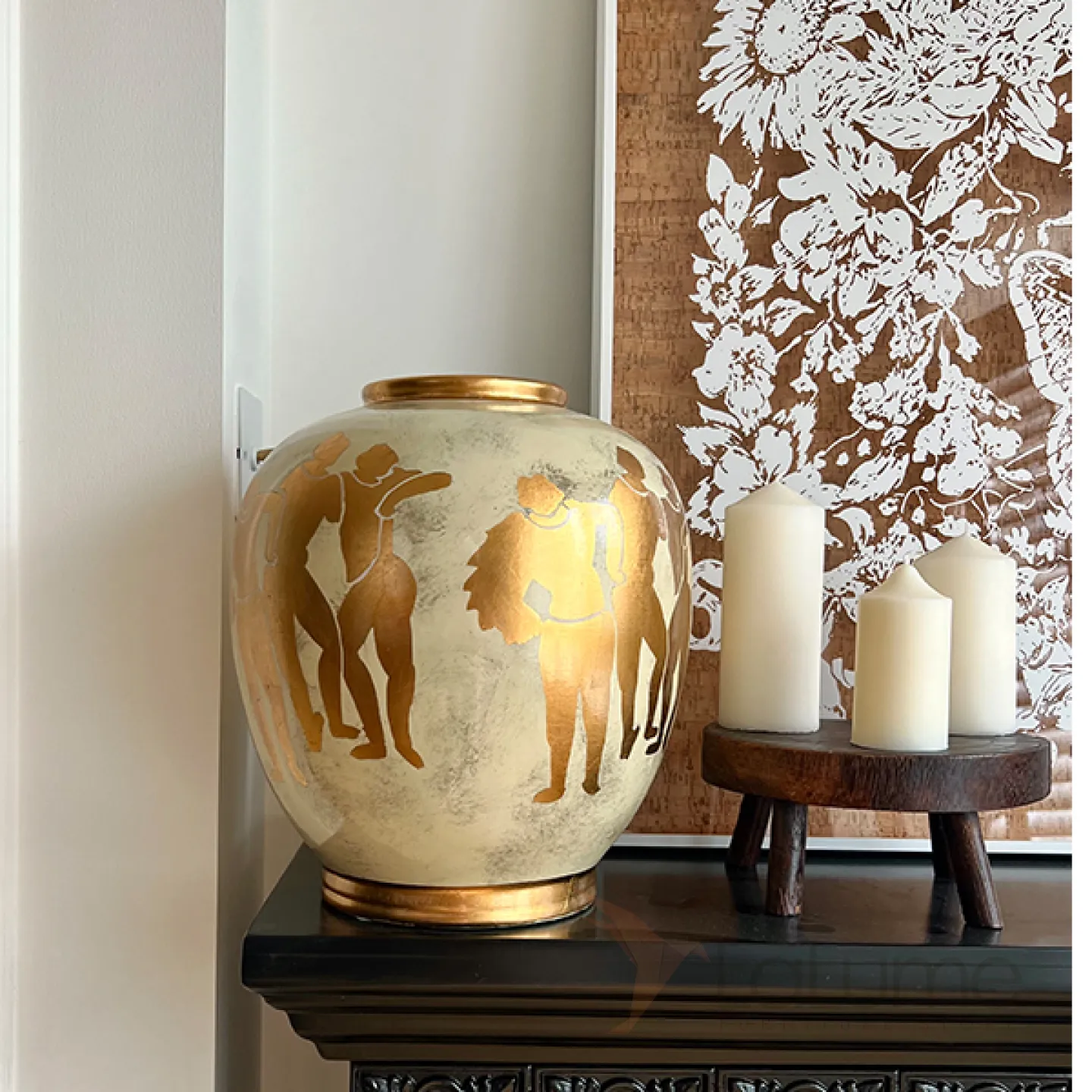 Керамическая ваза в стиле ретро с греческими мотивами. Позолота придает изделию элегантность и изысканность, гармонично вписывая его в любой интерьер.