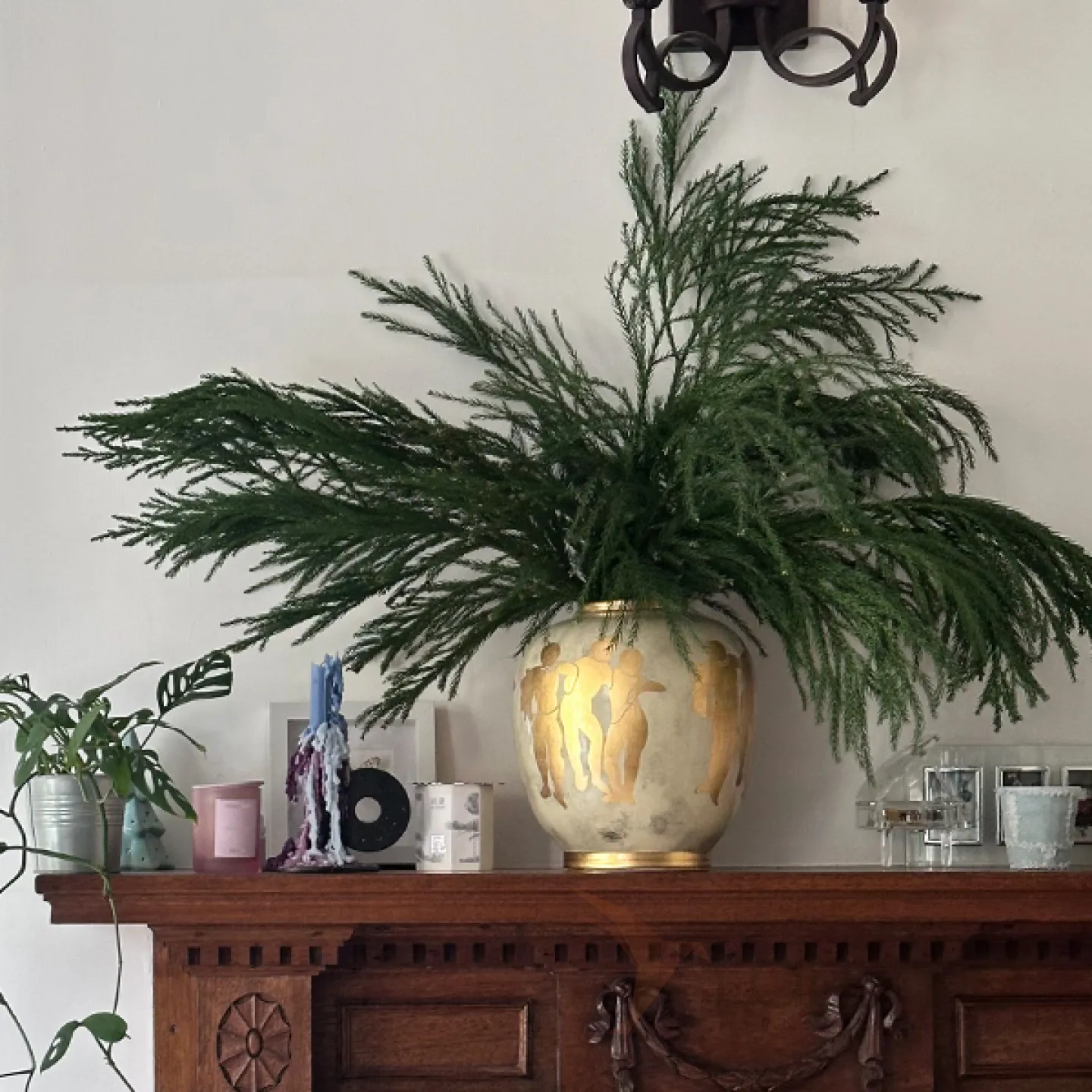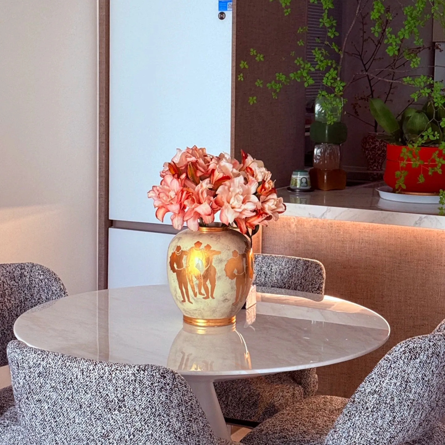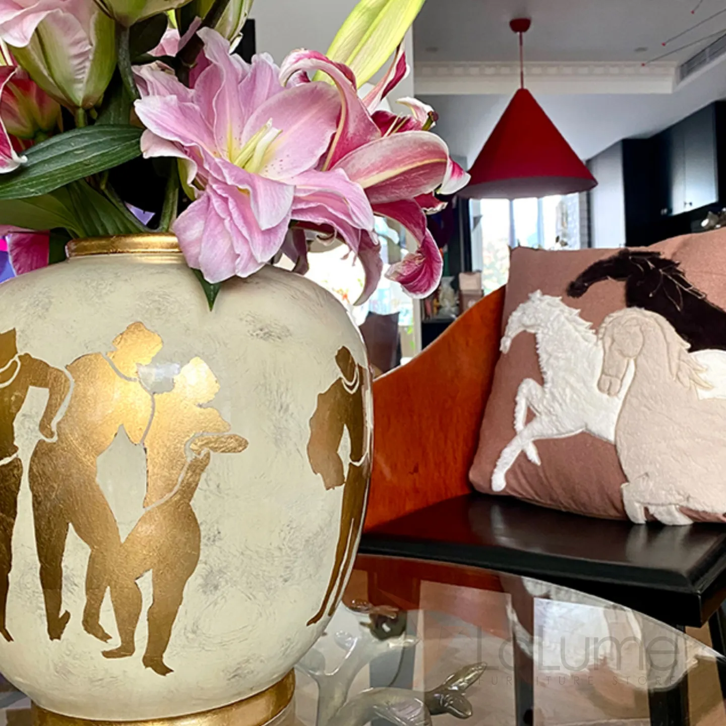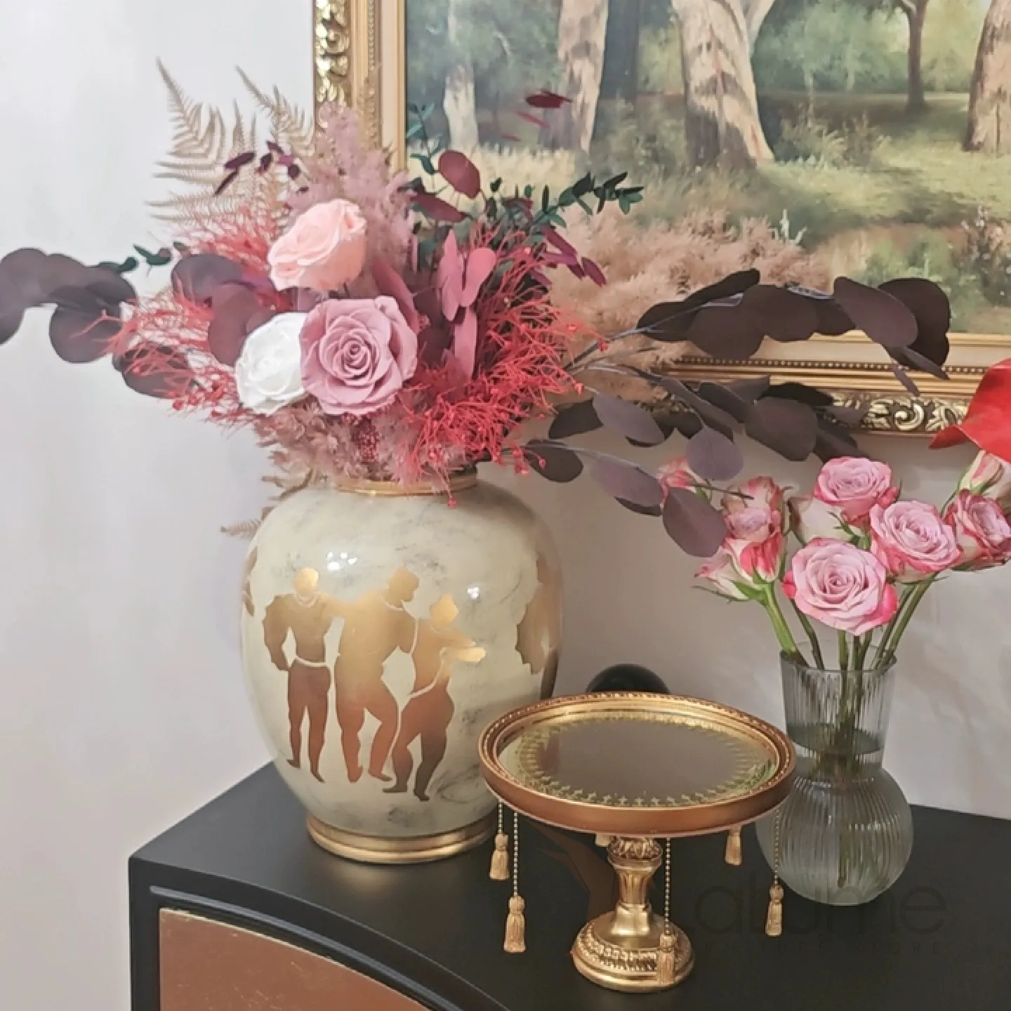 Керамическая ваза в стиле ретро с греческими мотивами. Позолота придает изделию элегантность и изысканность, гармонично вписывая его в любой интерьер.