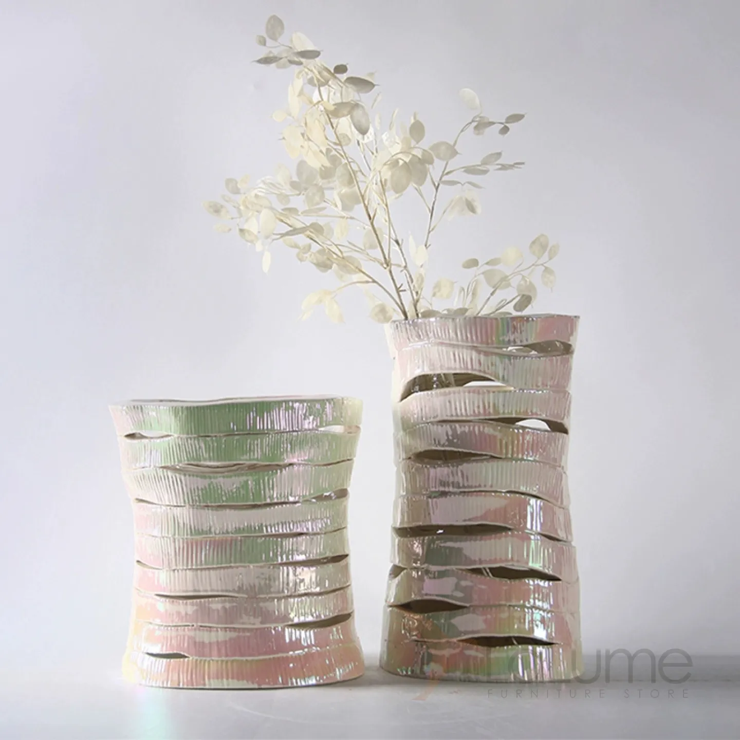 Декоративная керамическая ваза с покрытием оригинальной формы для сухоцветов. На выбор несколько размеров и цветов.