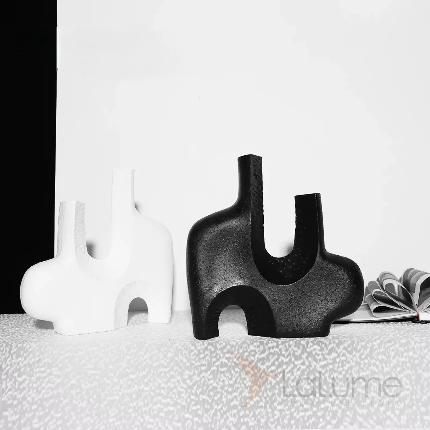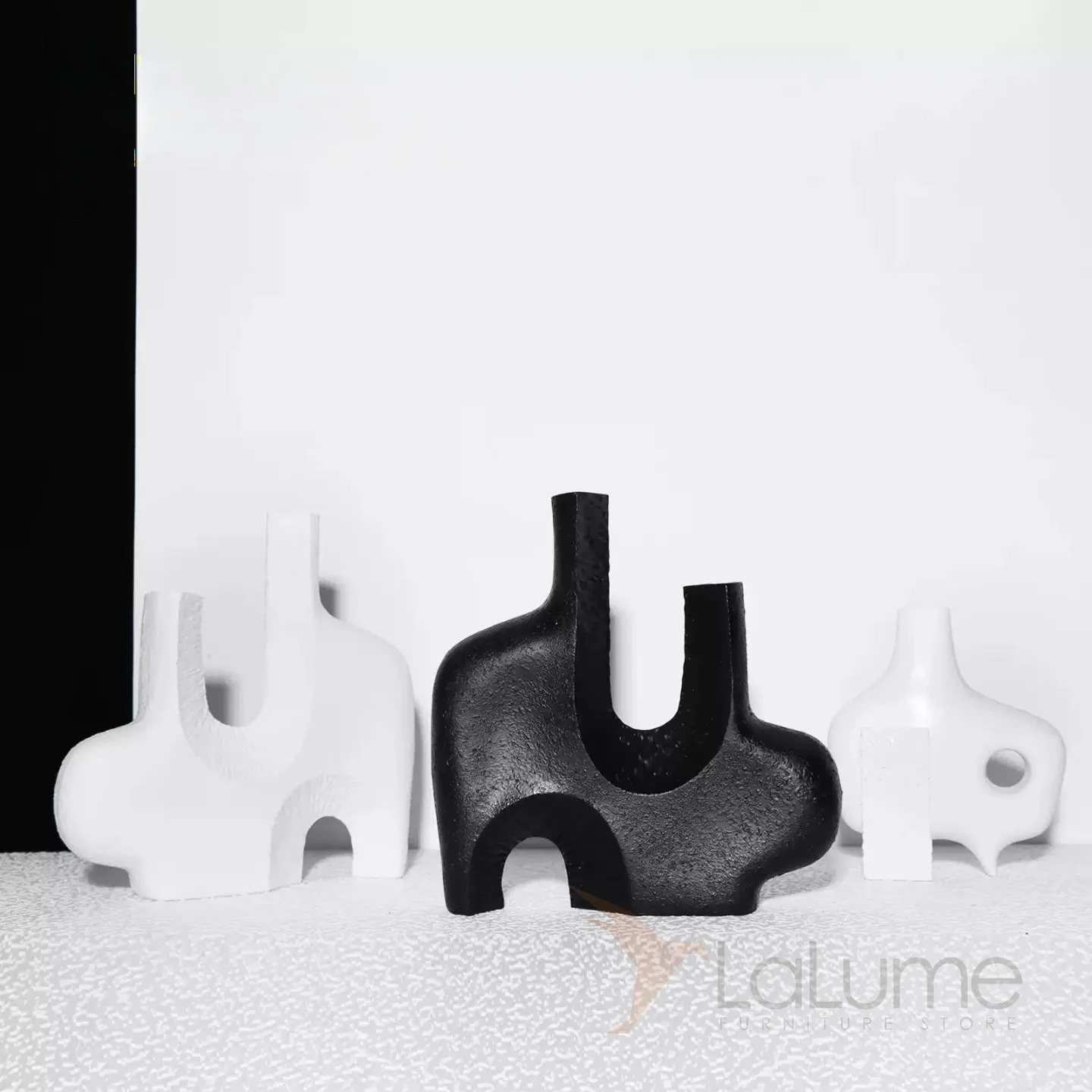 Декоративная вазочка из смолы, созданная в уникальной форме. Модели разнообразны, доступны в черном и белом цветах.