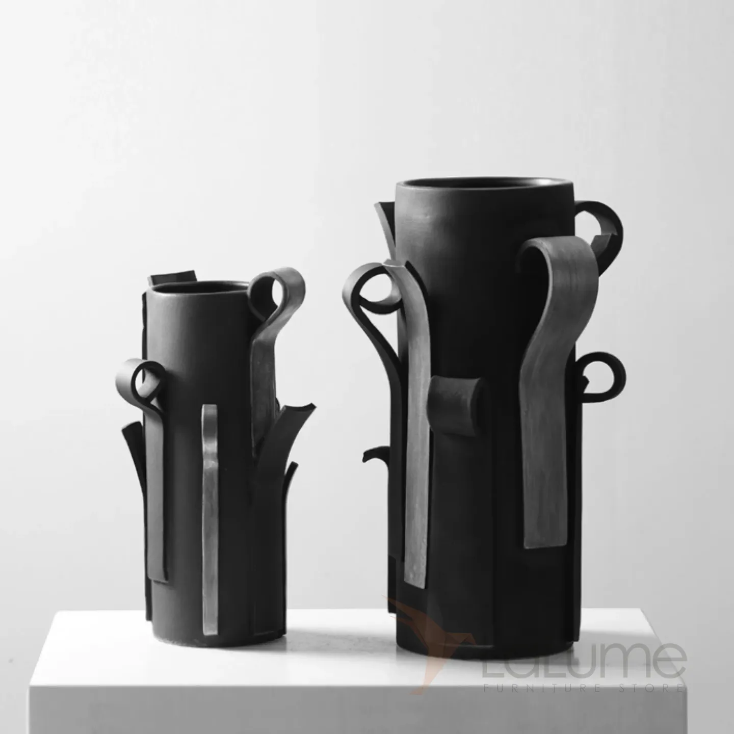 Эта интерьерная ваза — воплощение современного стиля с элементами арт-объекта. Выполнена из высококачественной керамики в лаконичном чёрном цвете, который придаёт ей элегантность и универсальность.