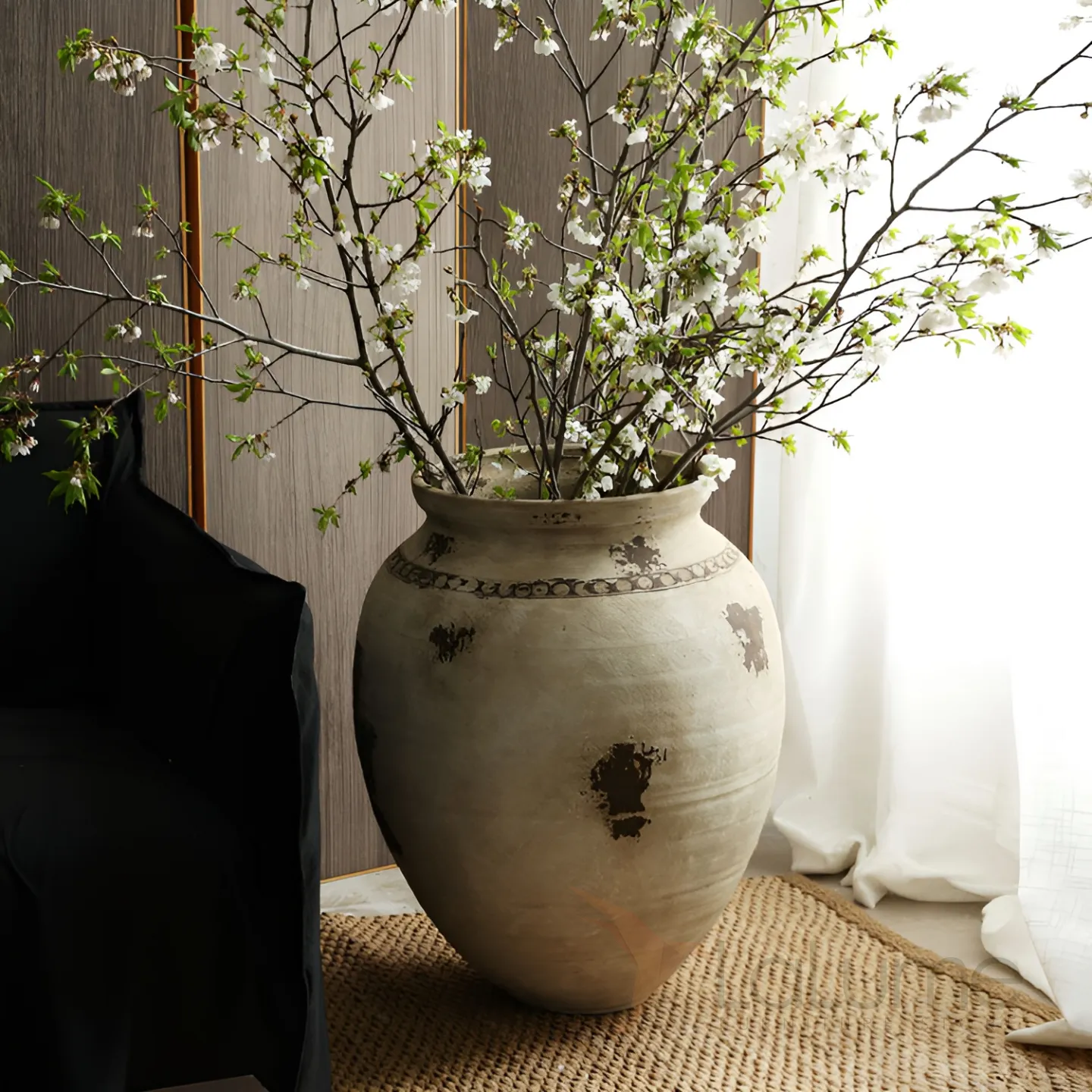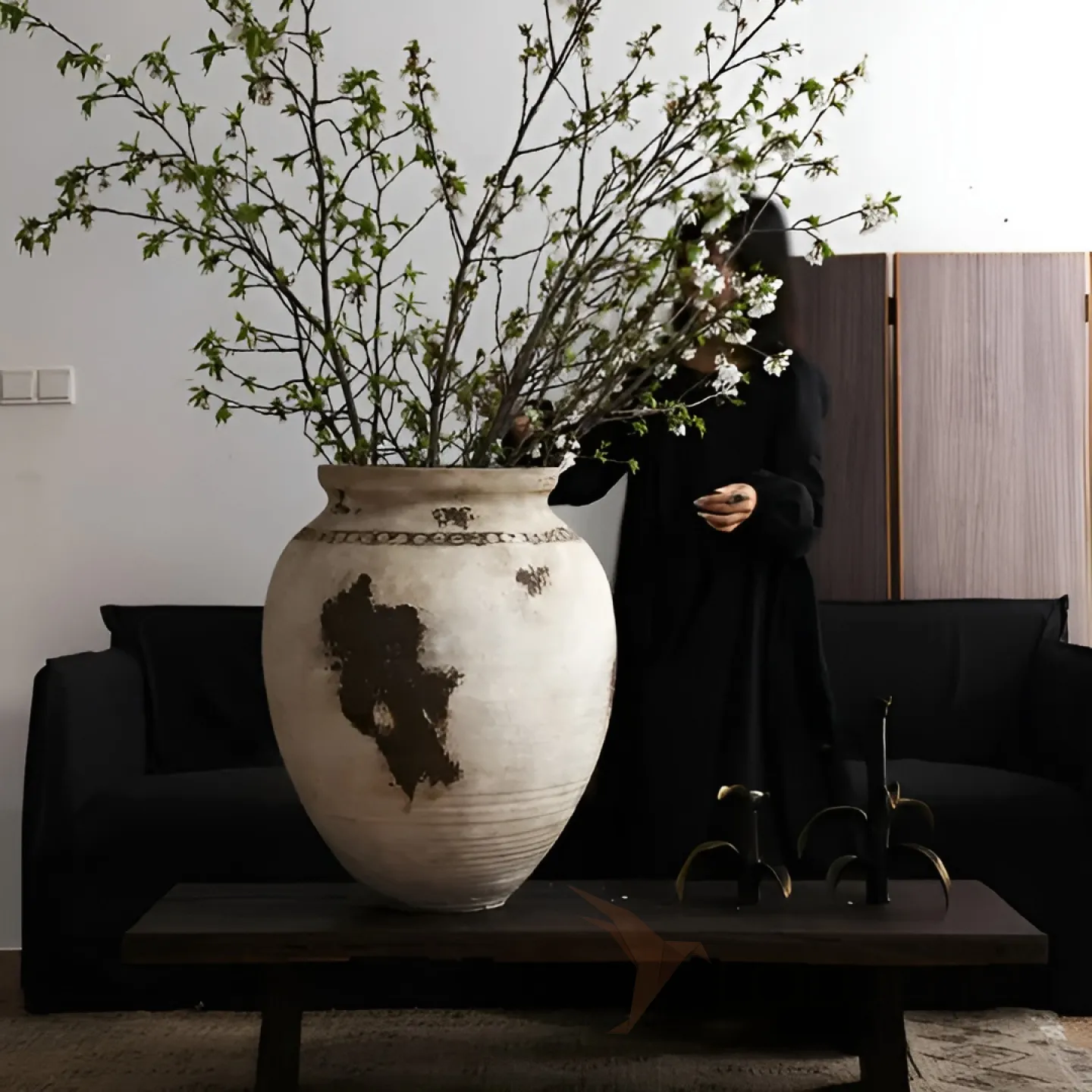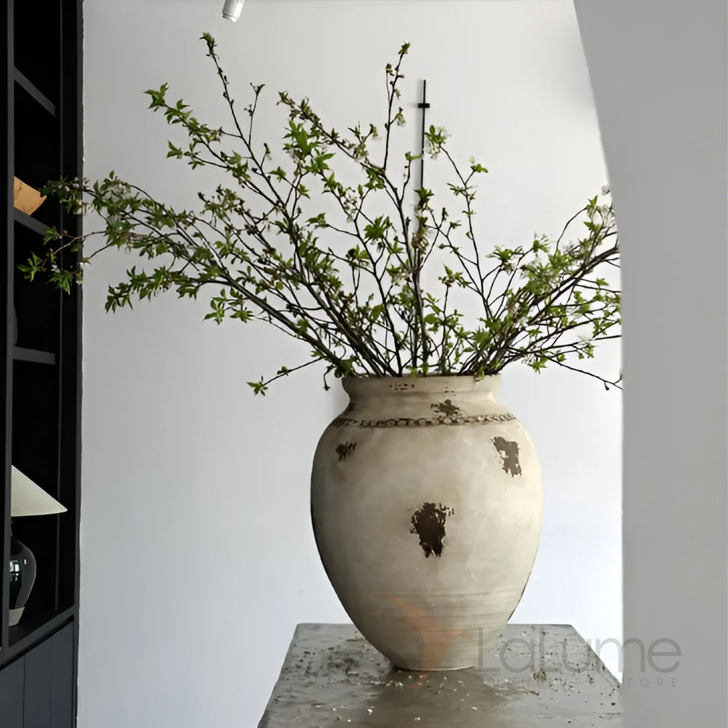 Напольная керамическая ваза округлой формы в винтажном стиле. Выполнена в спокойном бежевом оттенке с декоративными тёмными акцентами. Матовая поверхность и лёгкие неровности подчёркивают ручную работу. Отлично подходит для крупных композиций — например, с ветками цветущих деревьев. Добавит уюта и природной эстетики в любой интерьер.