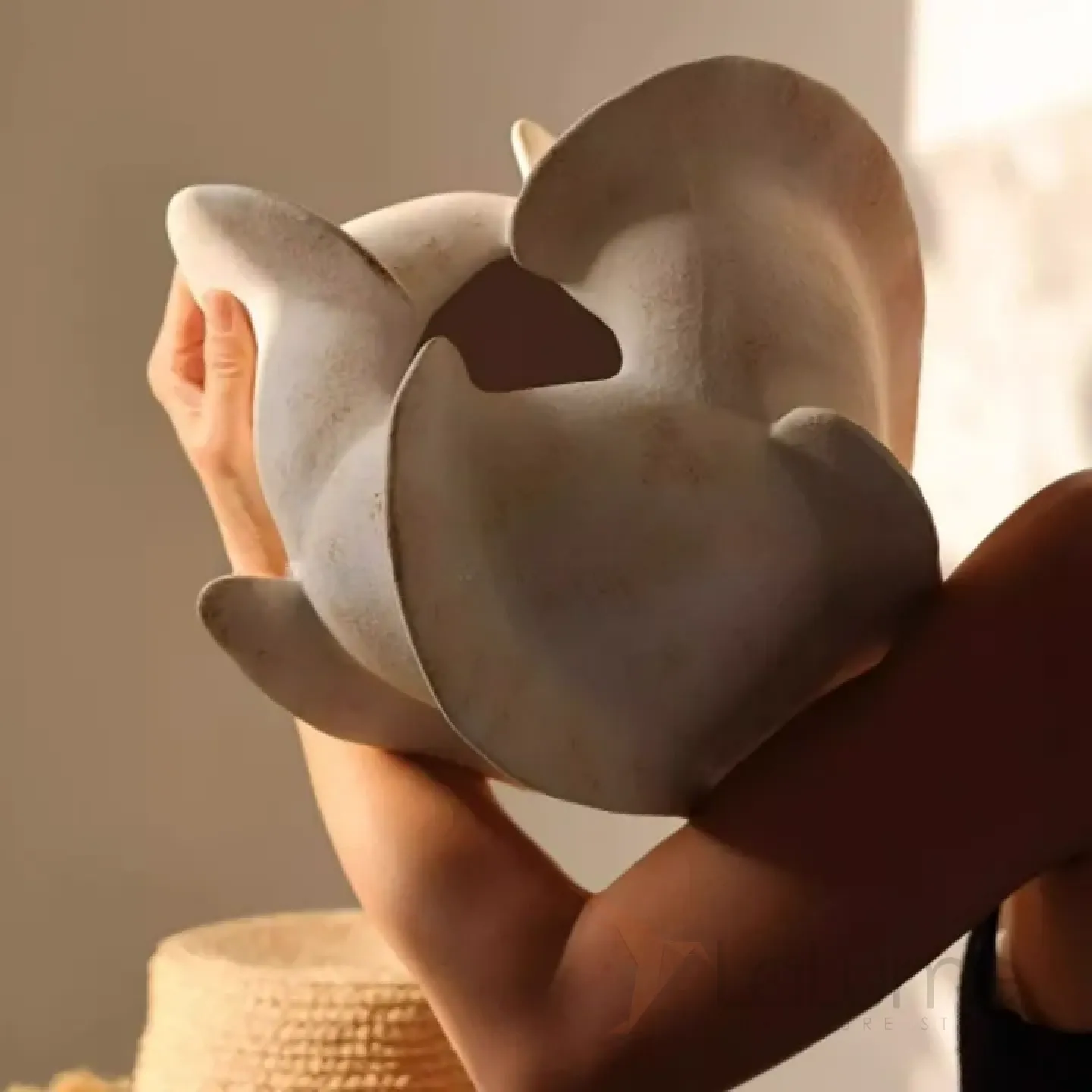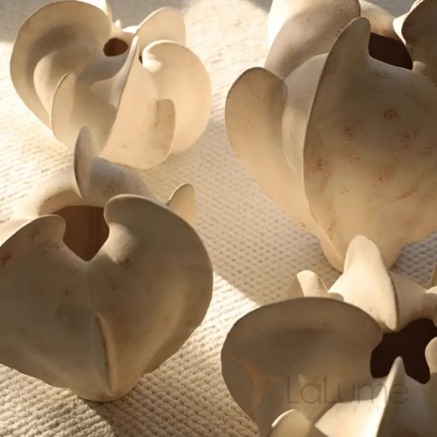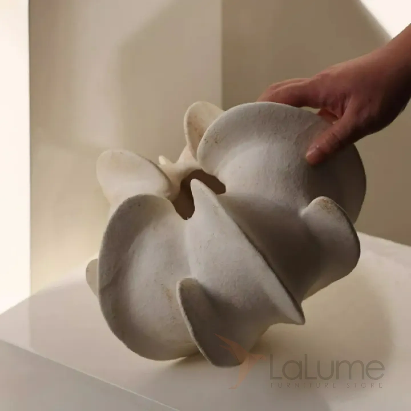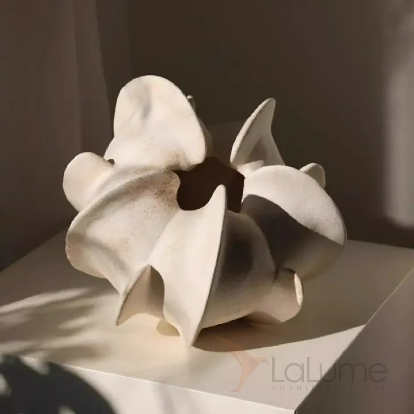 Керамическая ваза необычной формы, напоминающей распускающийся цветок или абстрактную скульптуру. Выполнена в нейтральном бежевом оттенке, с плавными, текучими линиями. Компактный размер и органичный дизайн делают её стильным элементом декора — подойдёт для гостиной, рабочего стола или полки. Матовая поверхность подчёркивает ручную работу и добавляет уюта в интерьер.