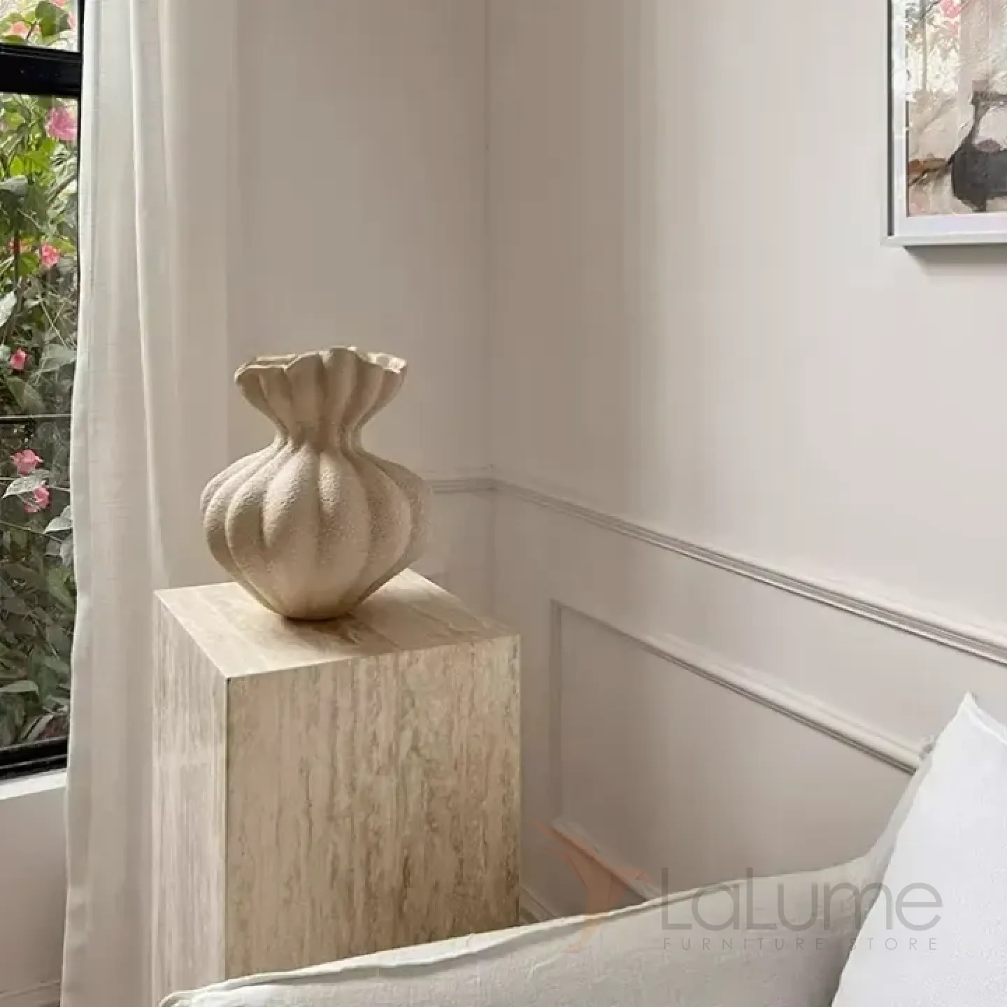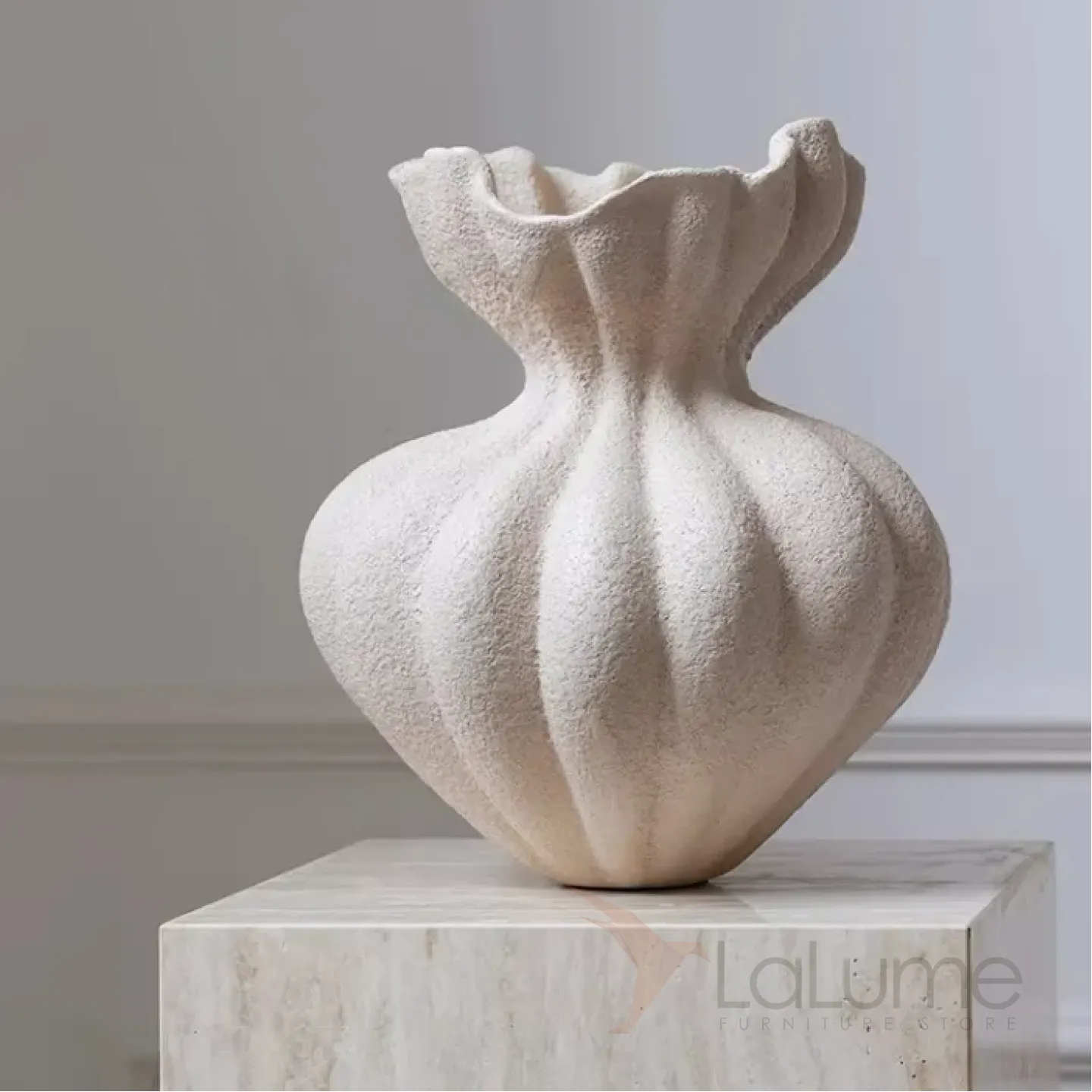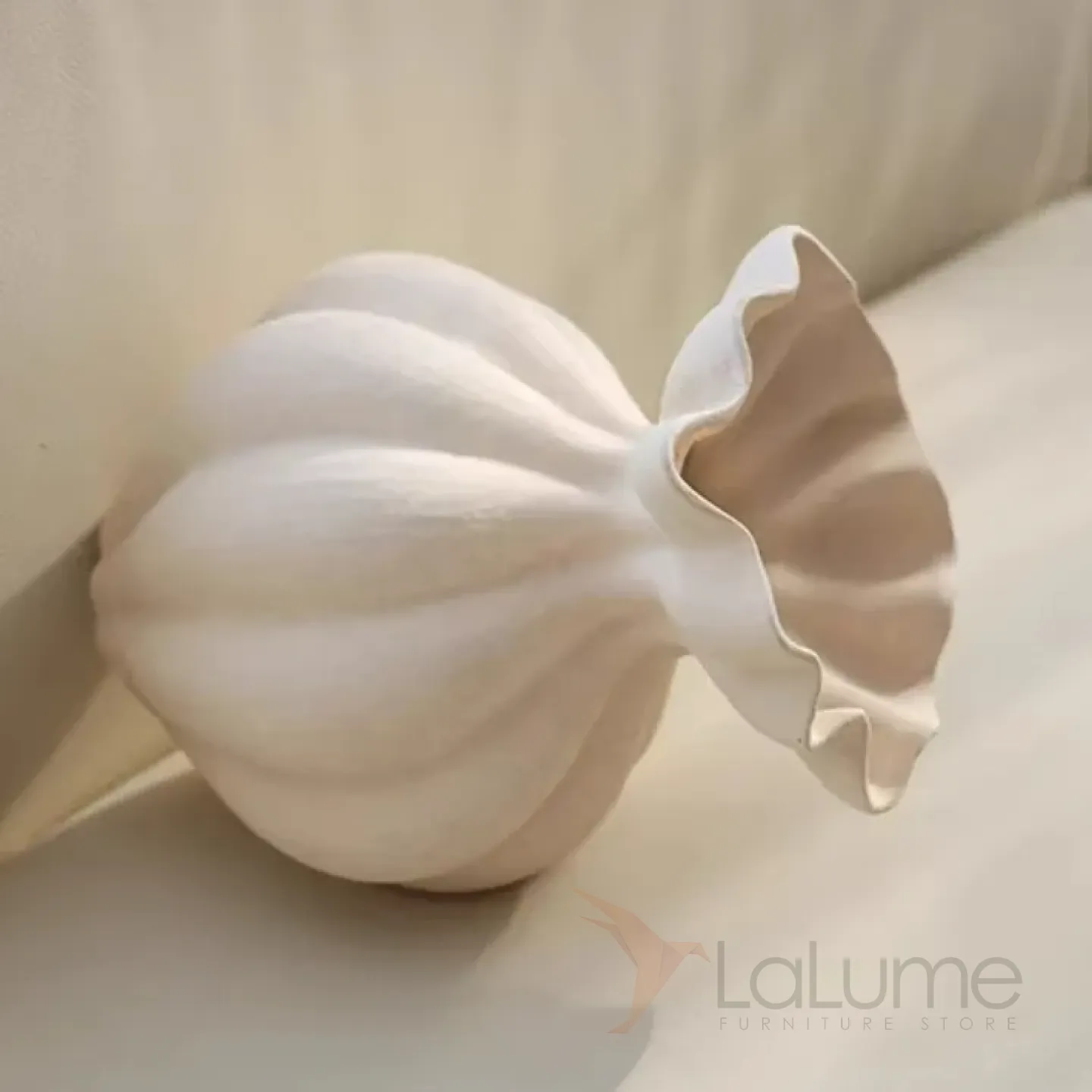 Элегантная ваза из смолы с плавными, волнообразными линиями, напоминающая распустившийся цветок. Выполнена в нежном молочном оттенке, отличается лёгкостью и прочностью. Компактный размер и изысканный дизайн делают её идеальным украшением для гостиной, спальни или рабочего стола. Глянцевая поверхность придаёт изделию современный вид, а необычная форма добавляет нотку художественной выразительности в любой интерьер.