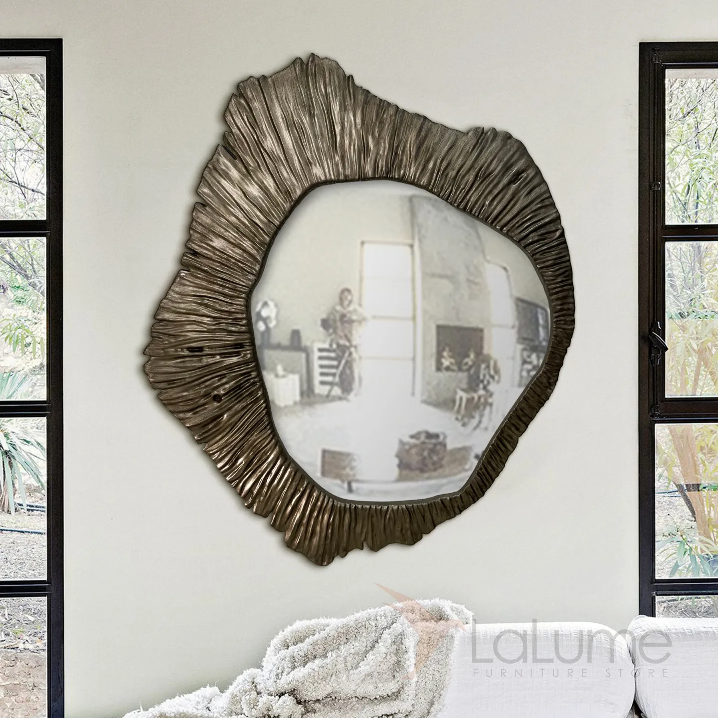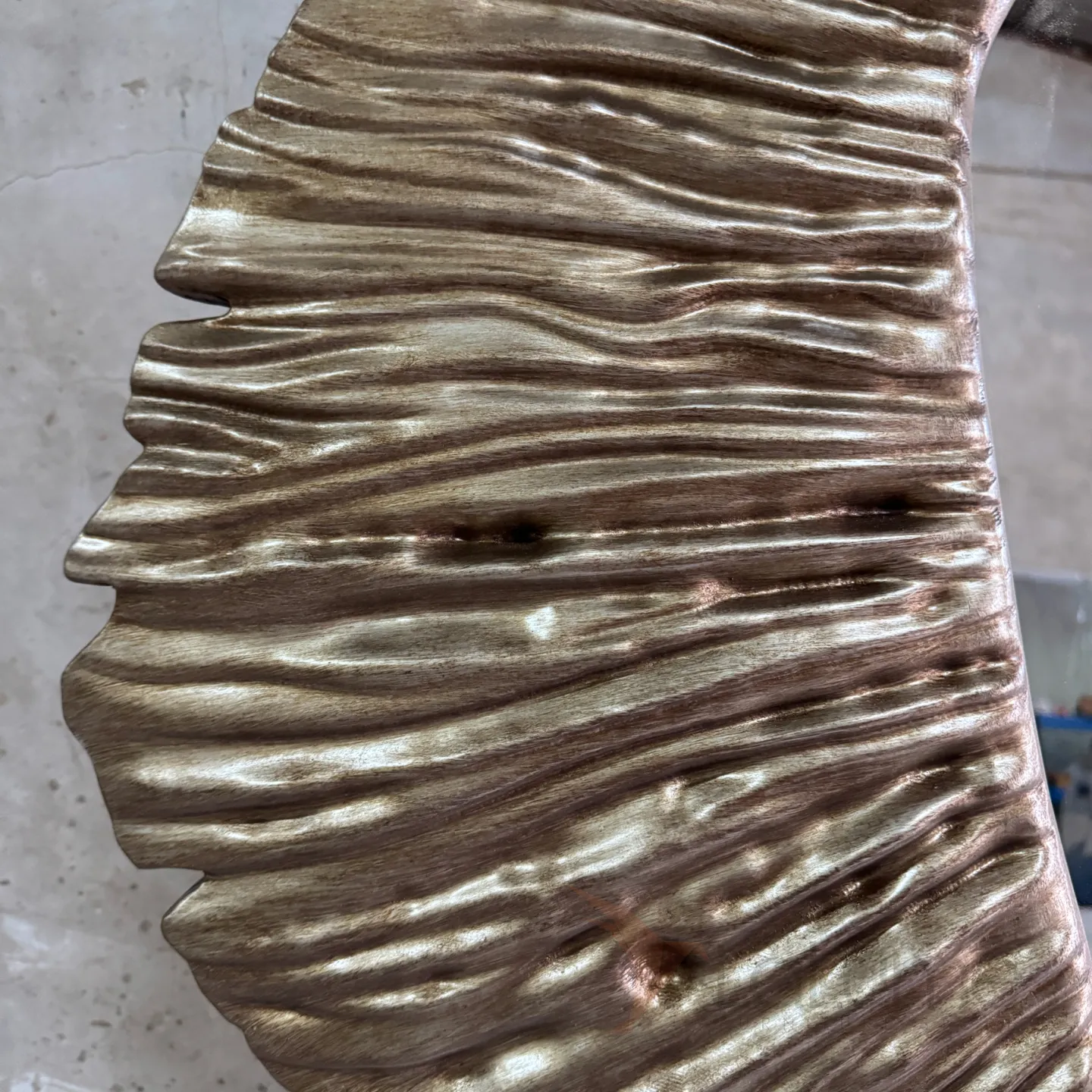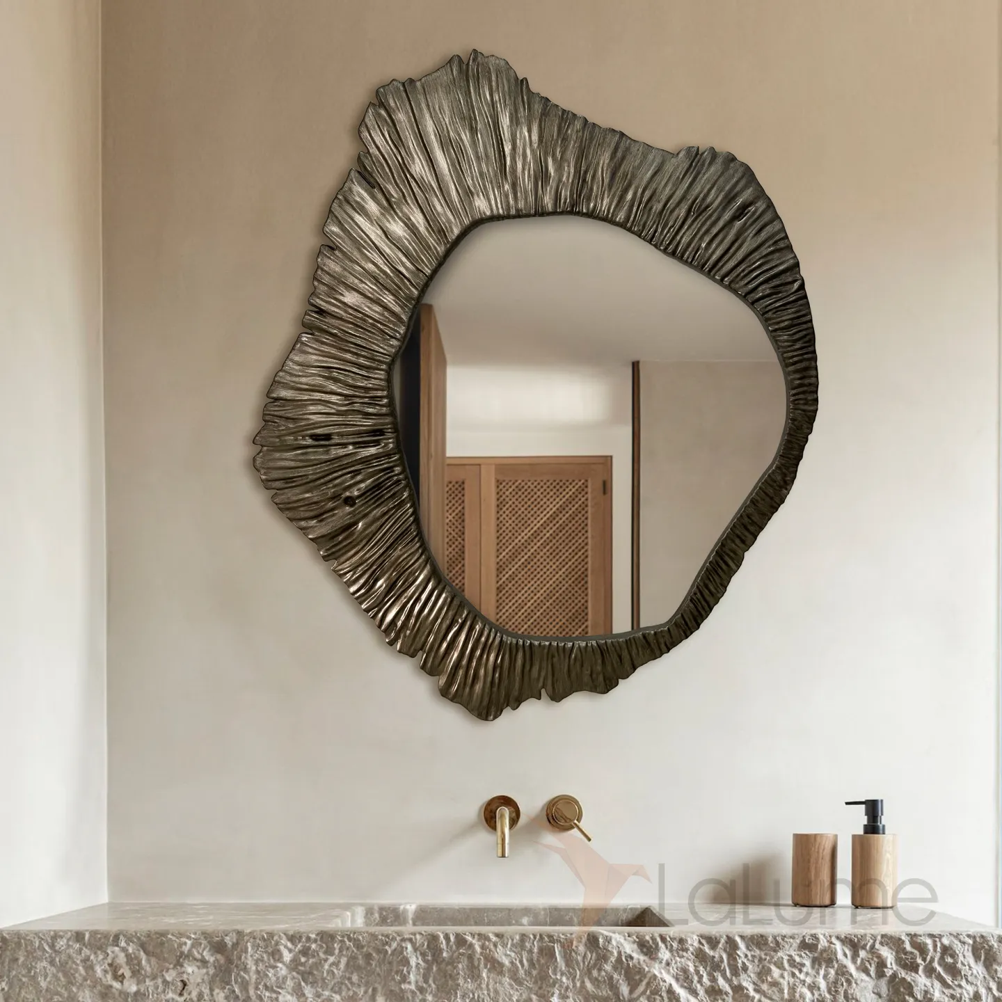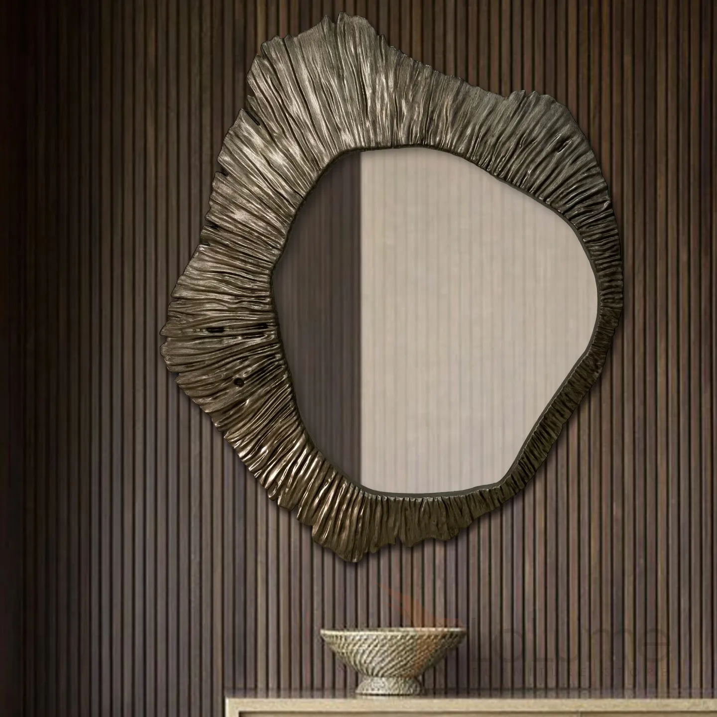Изысканное трёхмерное зеркало из дерева, с богатым бронзовым оттенком, станет настоящим украшением любого жилого или рабочего пространства. Его необычная форма и фактура придадут интерьеру особую изюминку.