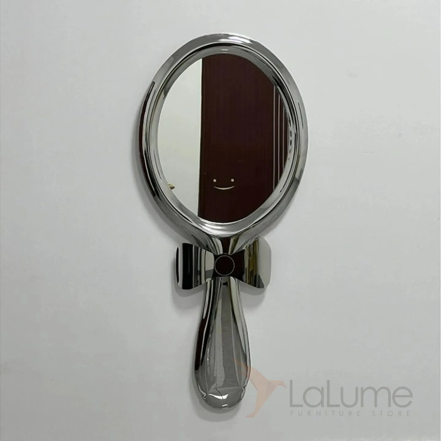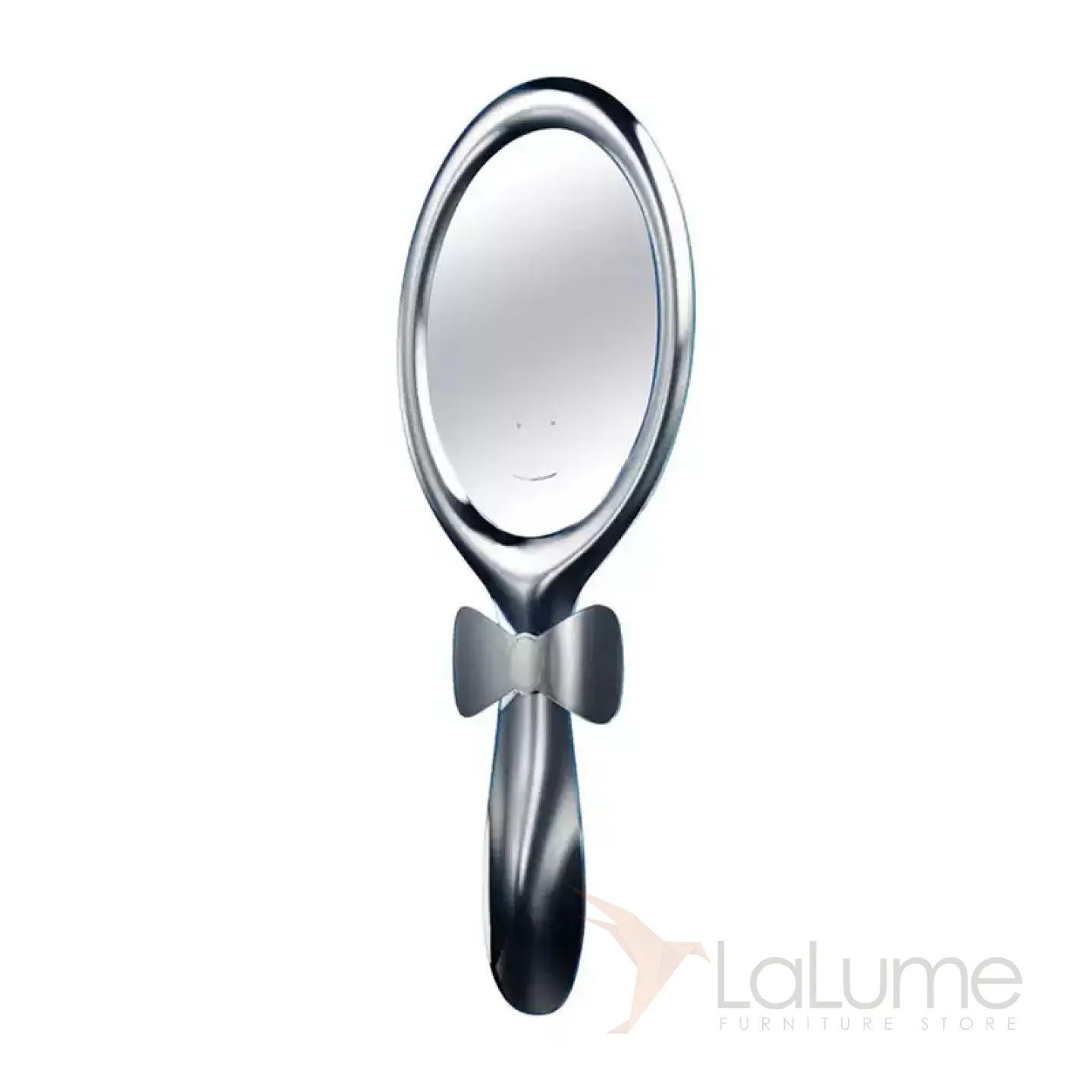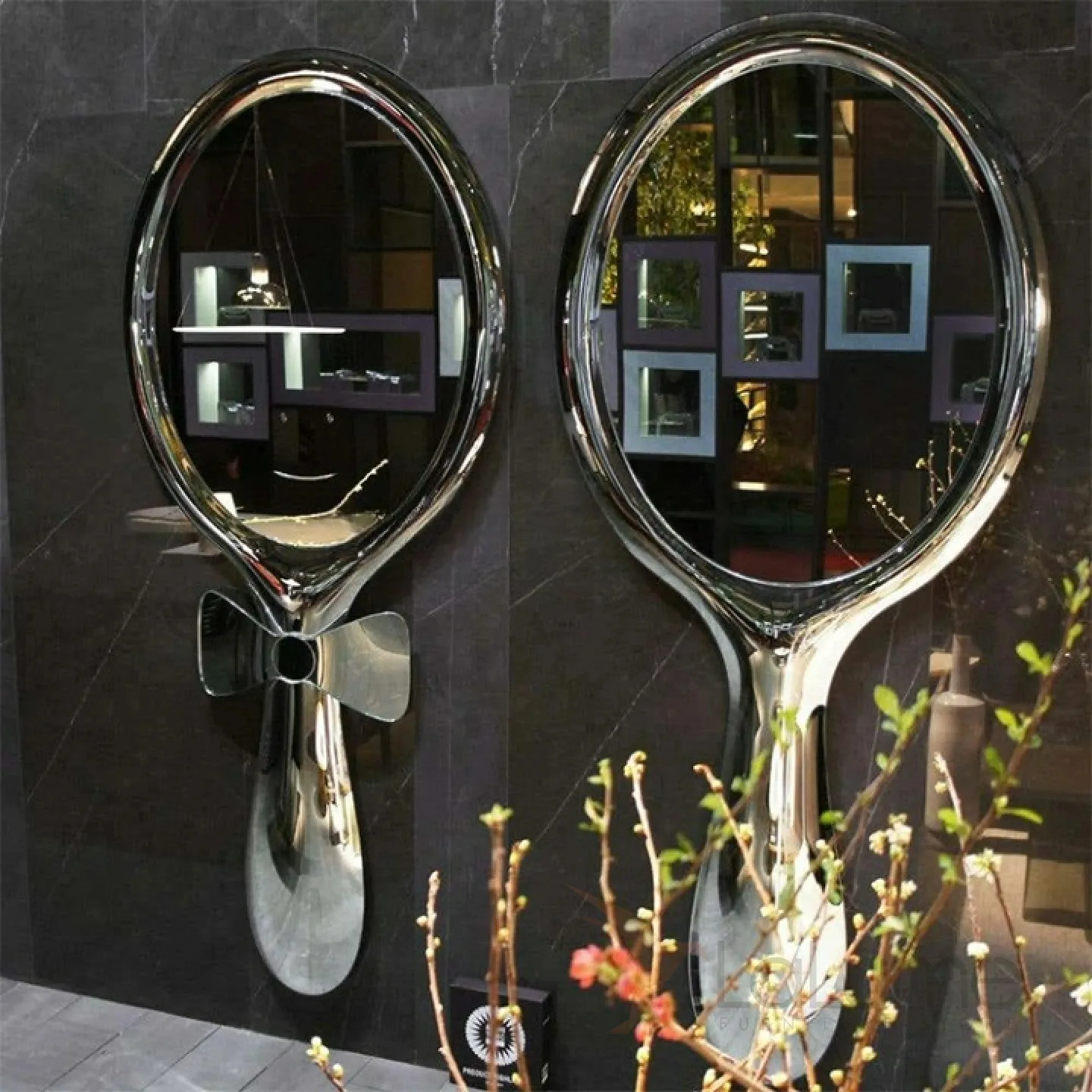 Зеркало в раме из нержавеющей стали, стилизованное под расчёску. Доступно в нескольких размерах. Модель может быть как с бантом, так и без него.