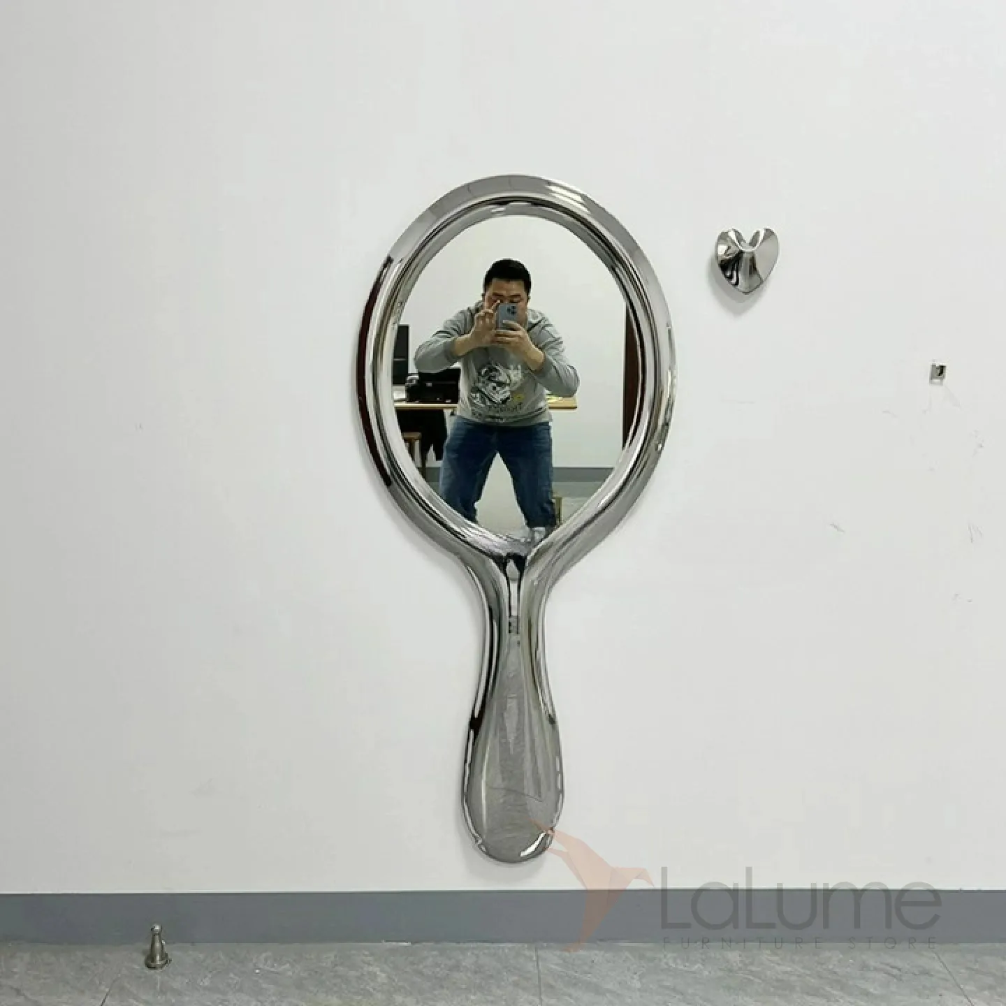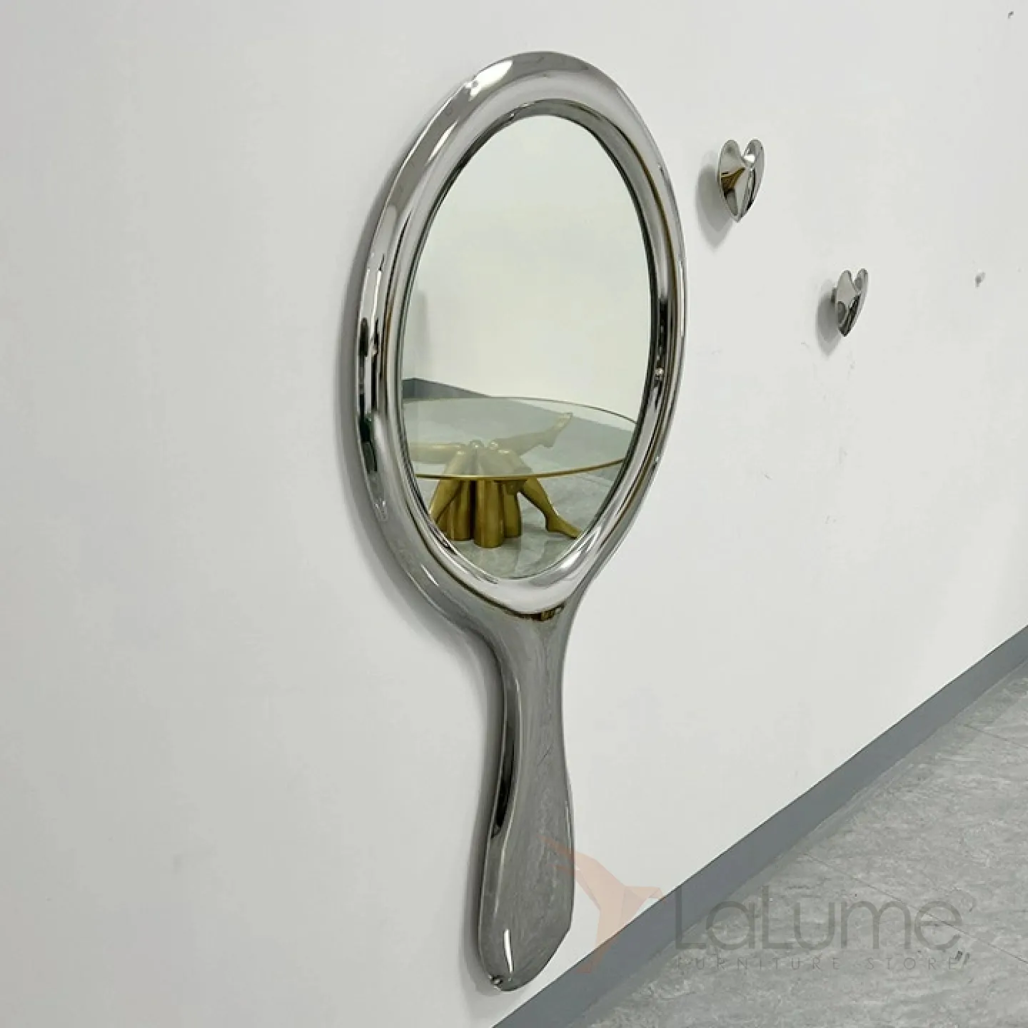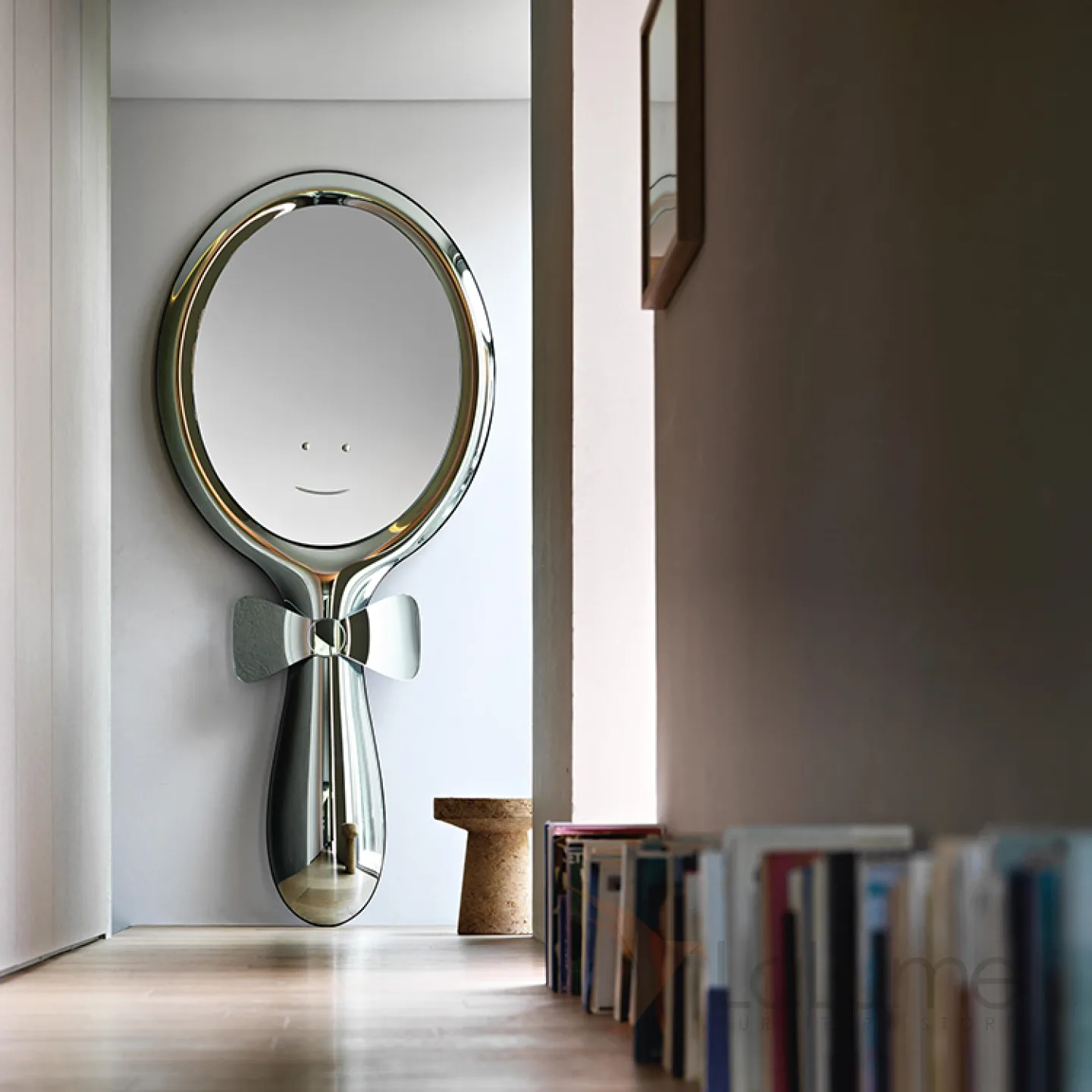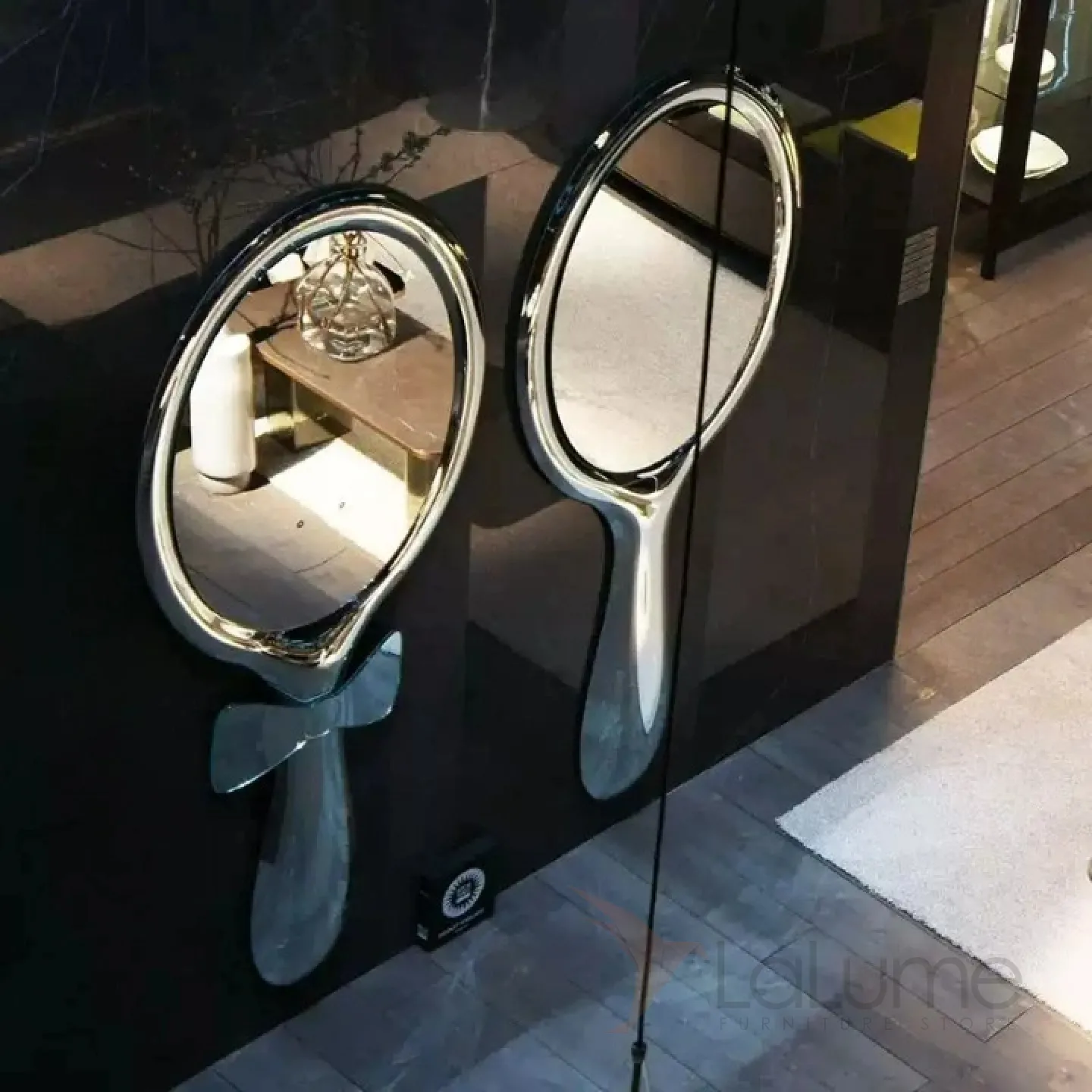 Зеркало в раме из нержавеющей стали, стилизованное под расчёску. Доступно в нескольких размерах. Модель может быть как с бантом, так и без него.