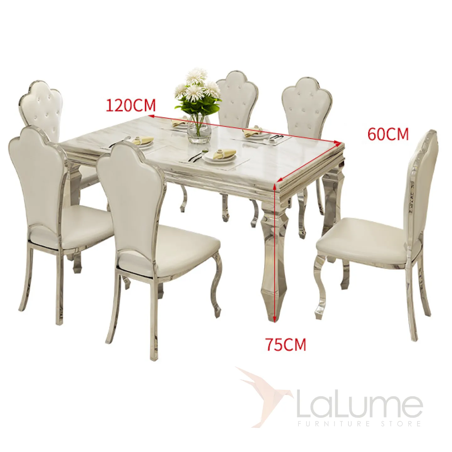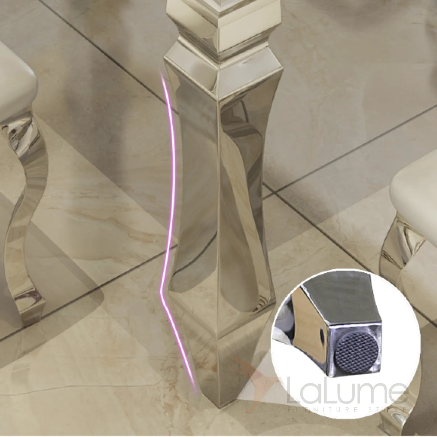 Мраморный Обеденный Стол. Обеденный стол в стиле гламур итальянская неоклассика. Полированная нержавеющая сталь.