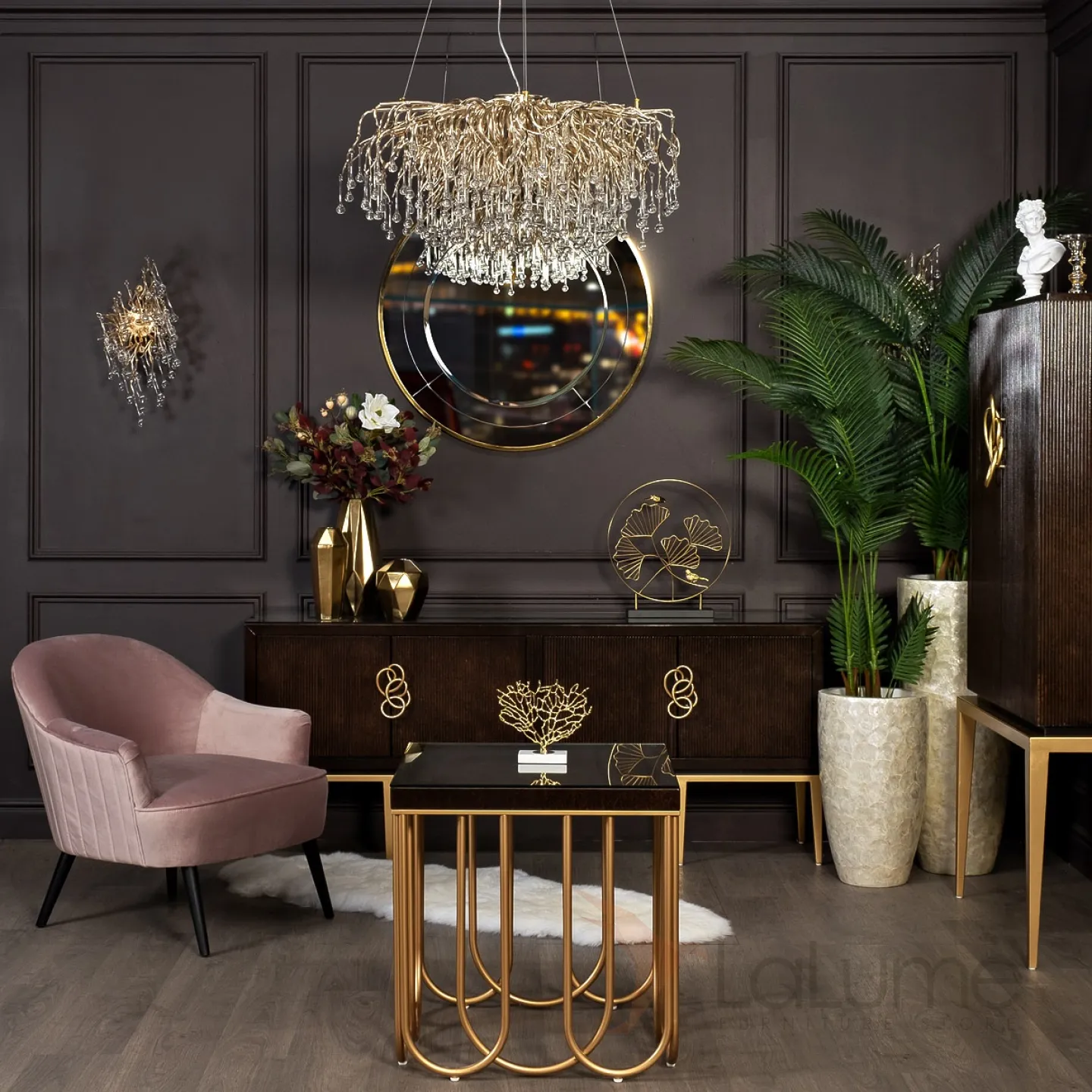 Столик журнальный квадратный вишнево-золотой ART-2706-ET от LaLume