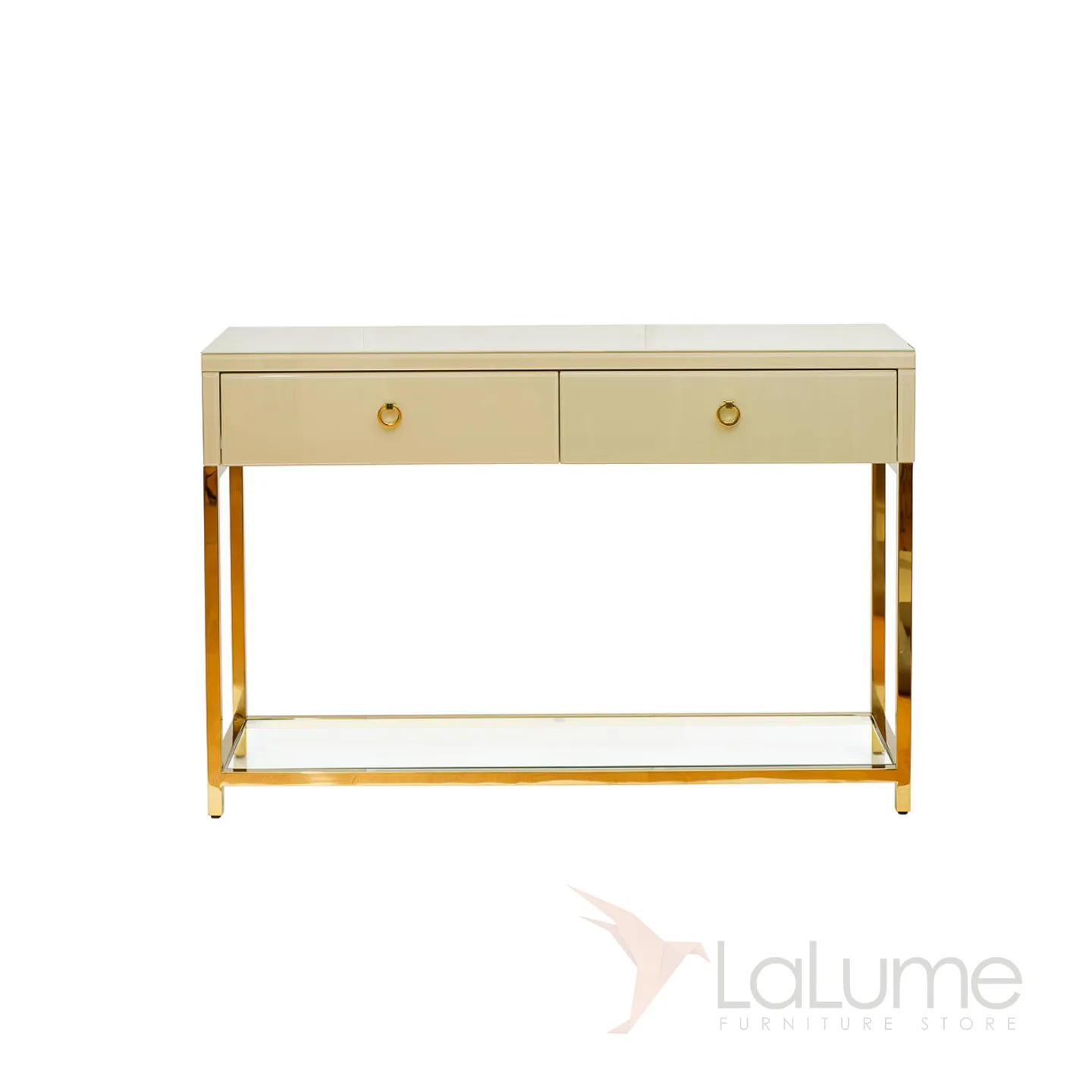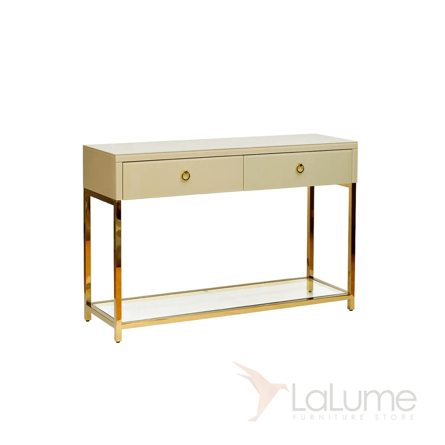 КОНСОЛЬ С ЯЩИКАМИ БЕЖЕВОЕ СТЕКЛО/ЗОЛОТО KFC762E7 от LaLume