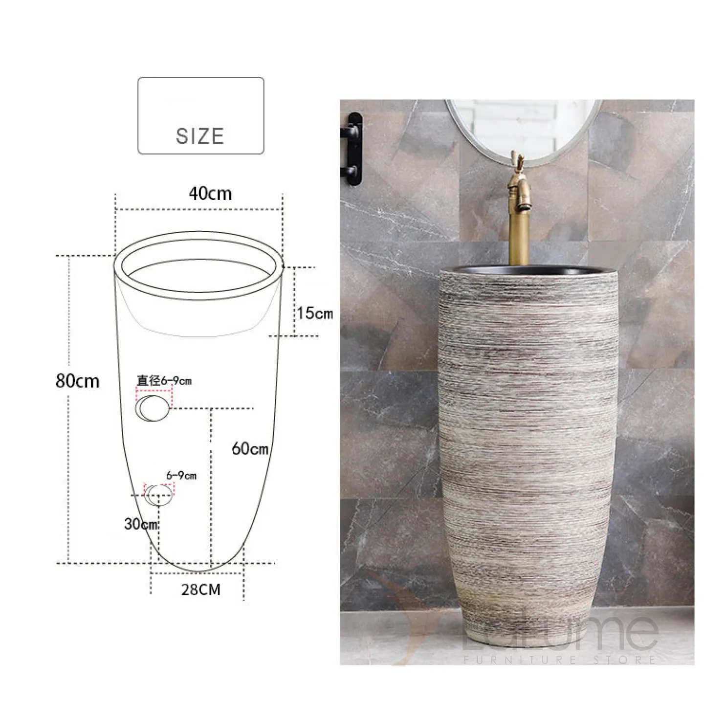 Керамический умывальник в форме колоны для ванной комнаты LaLume MB20498-23