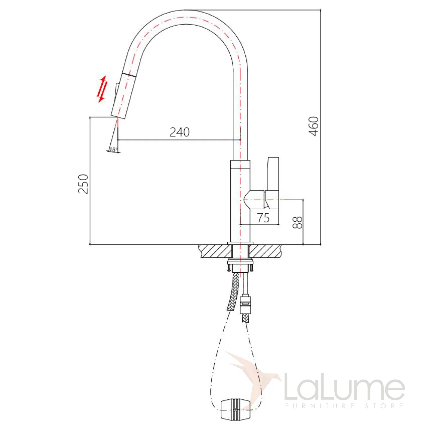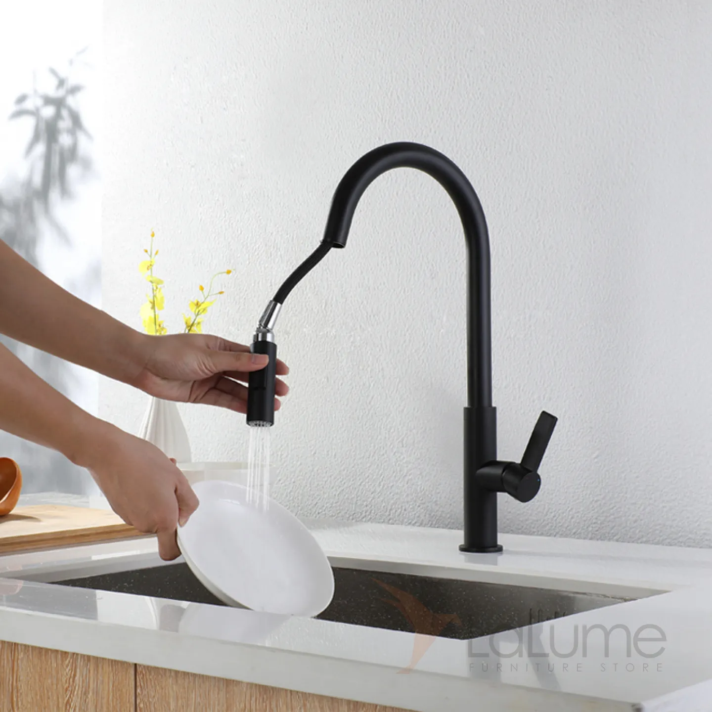 Выдвижной латунный смеситель для кухни LaLume MB20544-23
