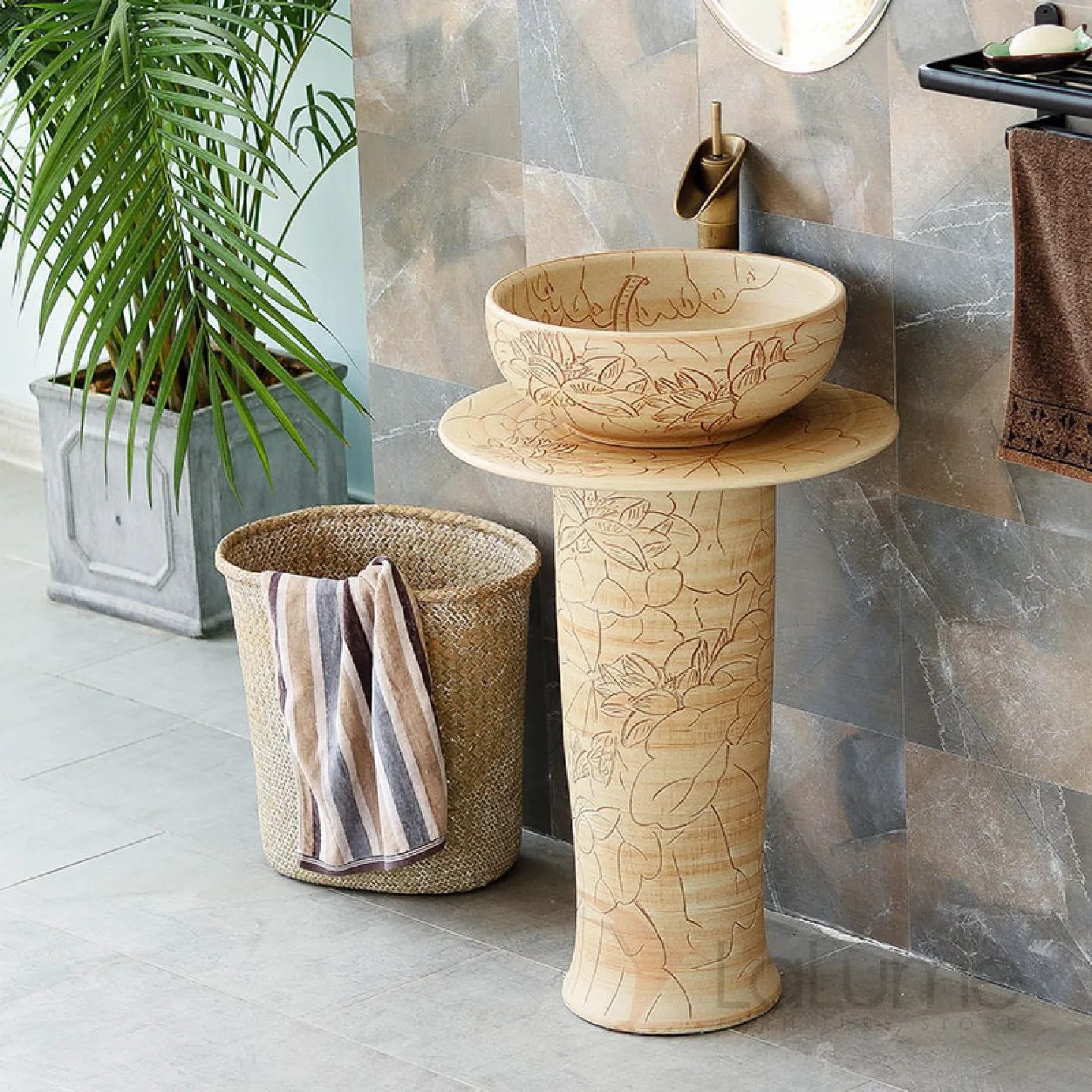 Керамический круглый умывальник для ванной комнаты LaLume MB20550-23