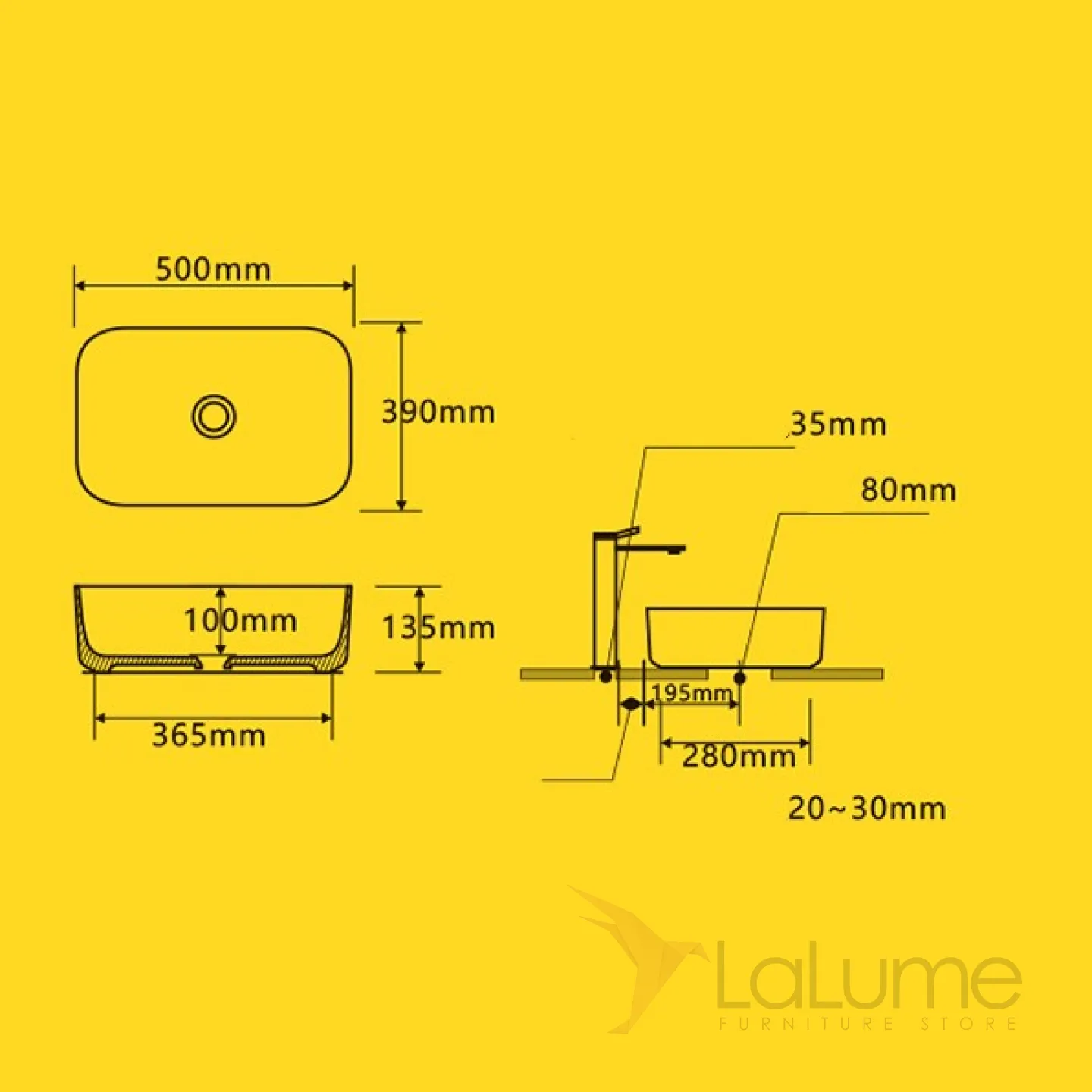Квадратный керамический умывальник для ванной комнаты LaLume MB20659-23