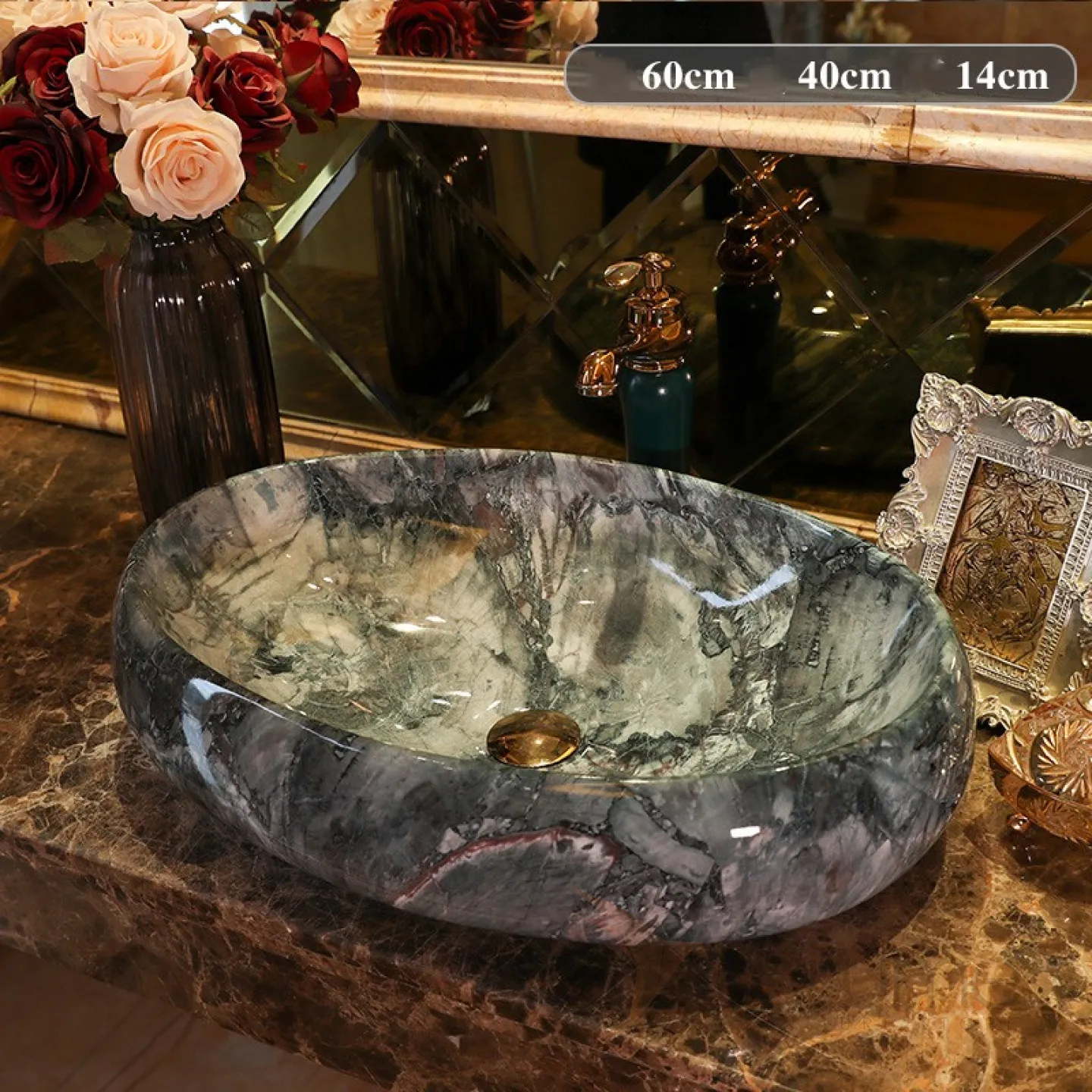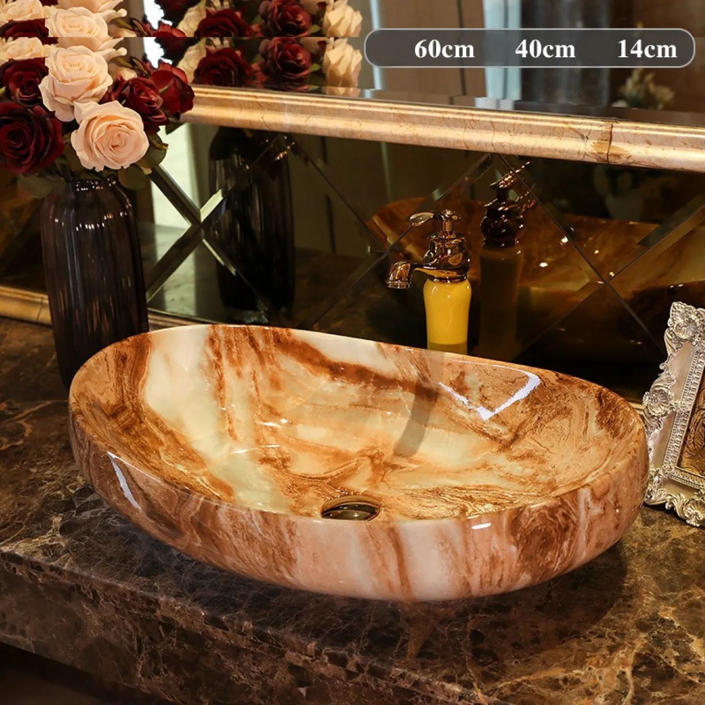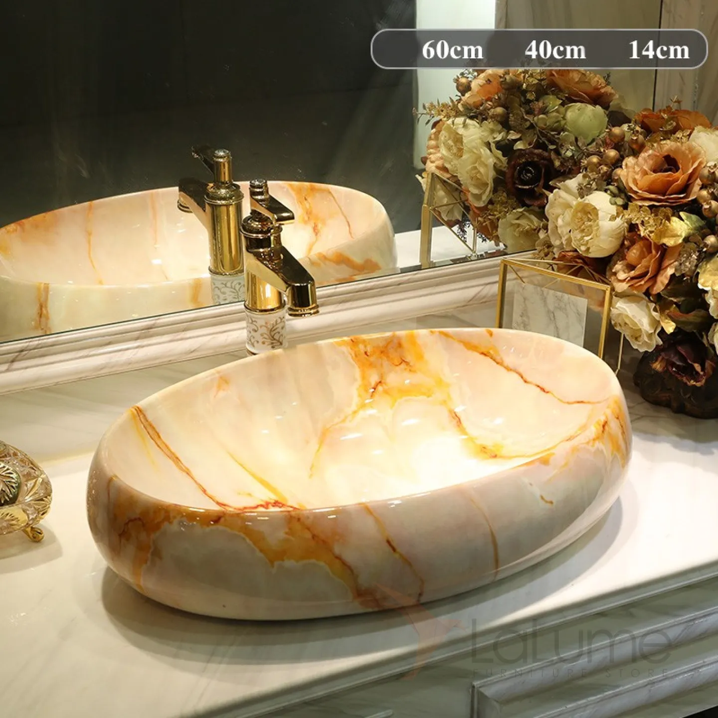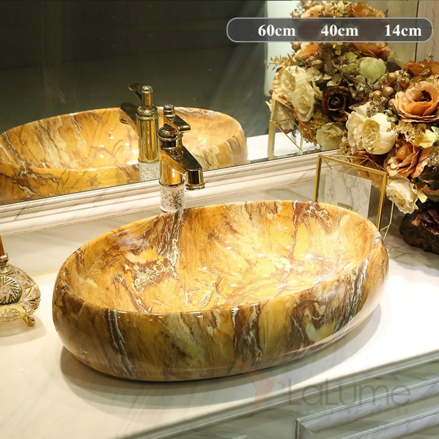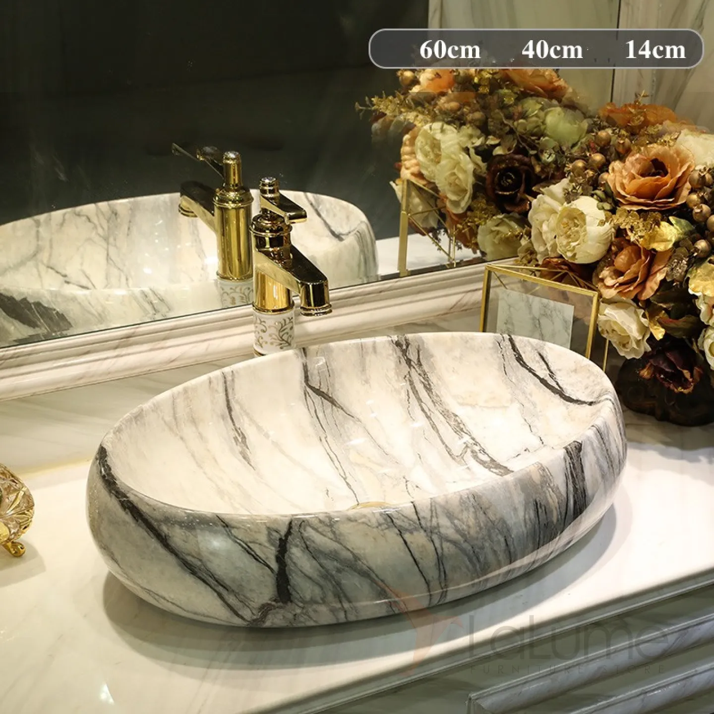 Керамический умывальник с имитацией мрамора для ванной комнаты LaLume MB20680-23