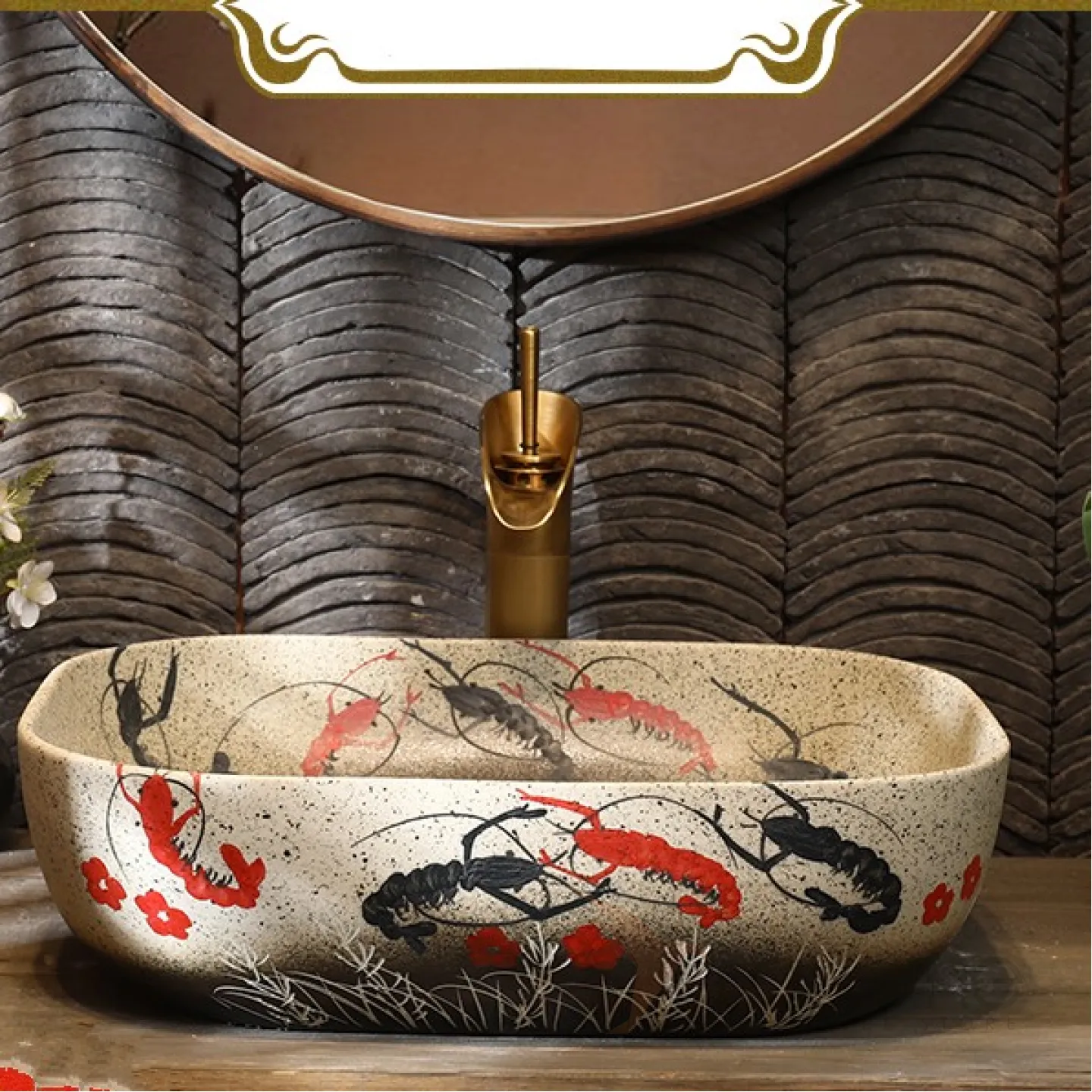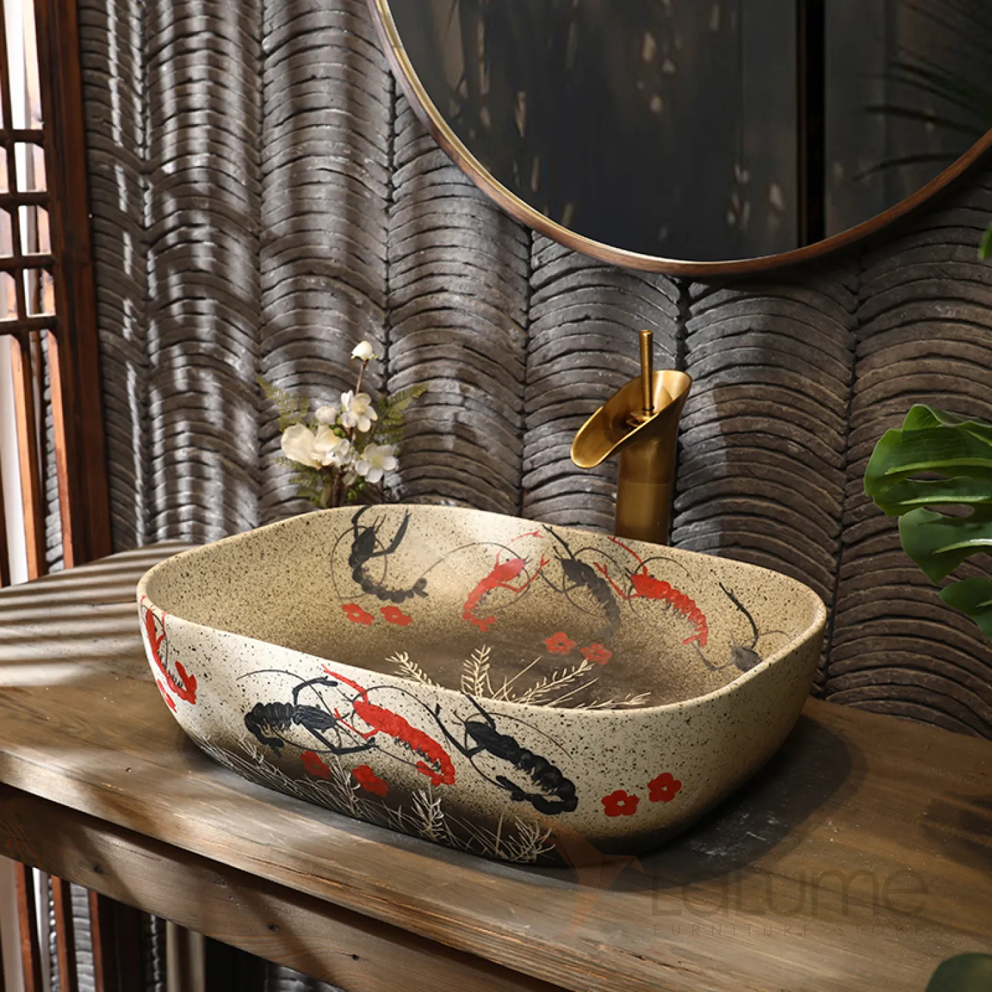 Керамический умывальник с узором для ванной комнаты LaLume MB20744-23